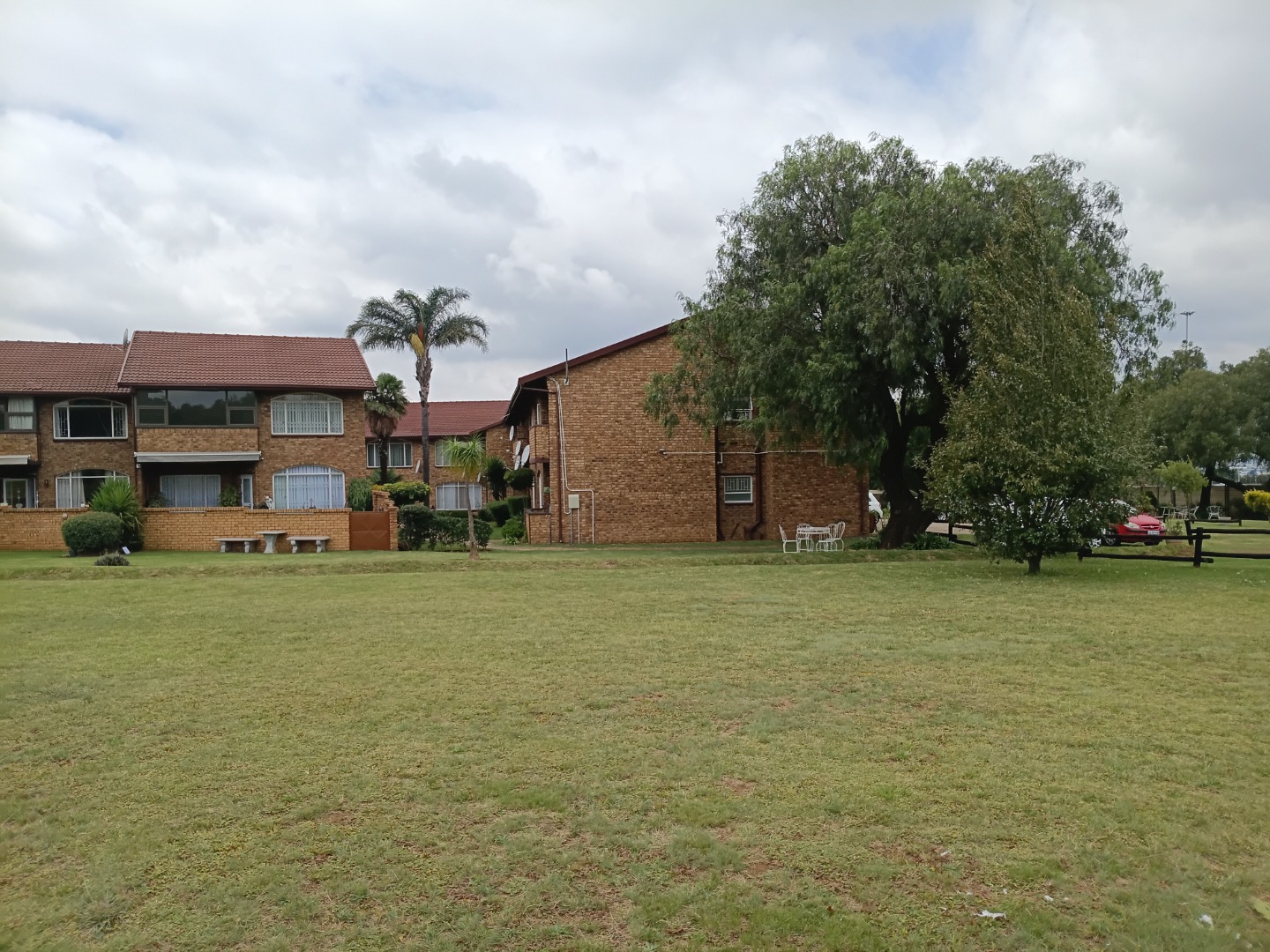 Residents benefit from access to well-maintained communal outdoor areas. These expansive green spaces feature lush lawns, mature trees offering natural shade, and various outdoor seating options perfect for relaxation. A dedicated built-in braai area provides an ideal setting for social gatherings and outdoor dining. The property includes one dedicated parking space.