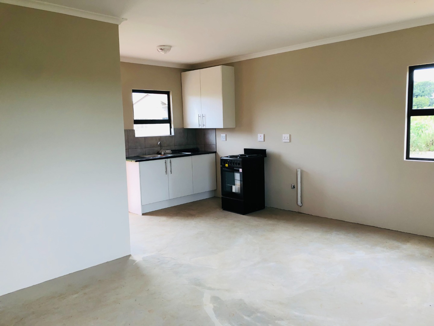 A lovely home of 3 bedrooms, lounge area with open plan kitchen, two bathrooms with main bedroom boasting of a toilet and a shower.
