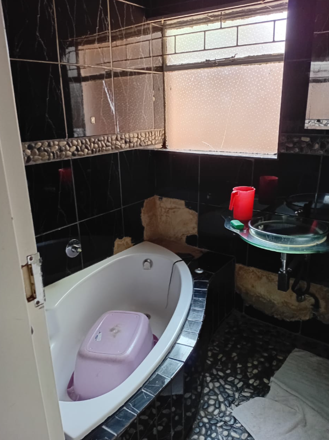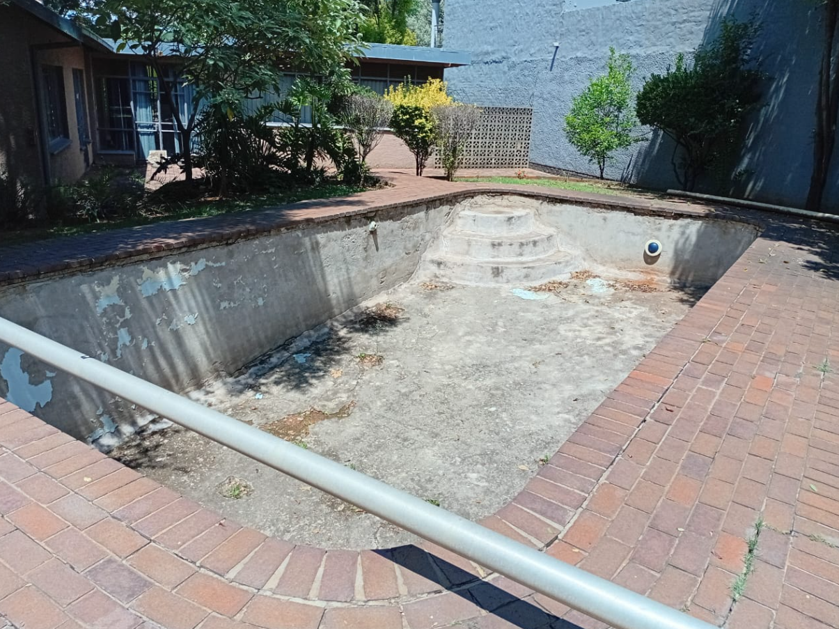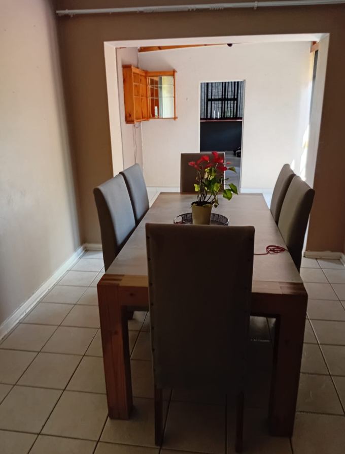 Welcome to this inviting 3-bedroom, 1-bathroom home located in the suburban area of Dinwiddie, Germiston. Situated on a generous 1160 sqm erf, this property offers ample space and significant potential for customisation. The exterior features a spacious paved driveway providing abundant parking and convenient access to a single garage, complemented by a durable tiled roof. The garden area, with its mature trees, awaits your personal touch to create an outdoor oasis. Inside, the residence presents an open-plan layout, seamlessly connecting the lounge and dining areas. The lounge is bright, benefiting from natural light, and features a prominent brick fireplace that adds character. The dining area boasts easy-to-clean tiled flooring and includes a practical built-in wooden display cabinet. The functional U-shaped kitchen is equipped with white cabinets, dark countertops, a double sink, and ample natural light, providing a solid foundation for modern updates. The home comprises three comfortable bedrooms, all featuring tiled flooring. One bedroom offers integrated built-in wardrobes and a dedicated dressing table/vanity area, while another includes a stylish upholstered headboard. The single bathroom, with its unique corner bathtub and black tiled walls, presents an excellent opportunity for renovation, allowing you to design a space that perfectly suits your vision. Outdoor living is enhanced by a private swimming pool, ideal for relaxation and entertainment. An enclosed balcony or patio area, featuring wooden ceiling beams and a ceiling fan, provides versatile additional space. For peace of mind, the property is secured with an access gate and burglar bars. Pets are welcome, making this a suitable home for families. This Dinwiddie property offers a blend of comfortable living and renovation potential, set within a convenient Germiston location. It's an ideal opportunity for those looking to create their dream home.