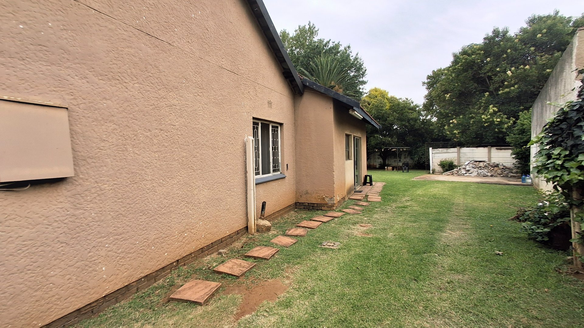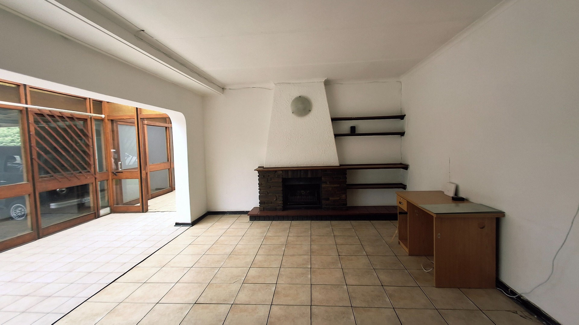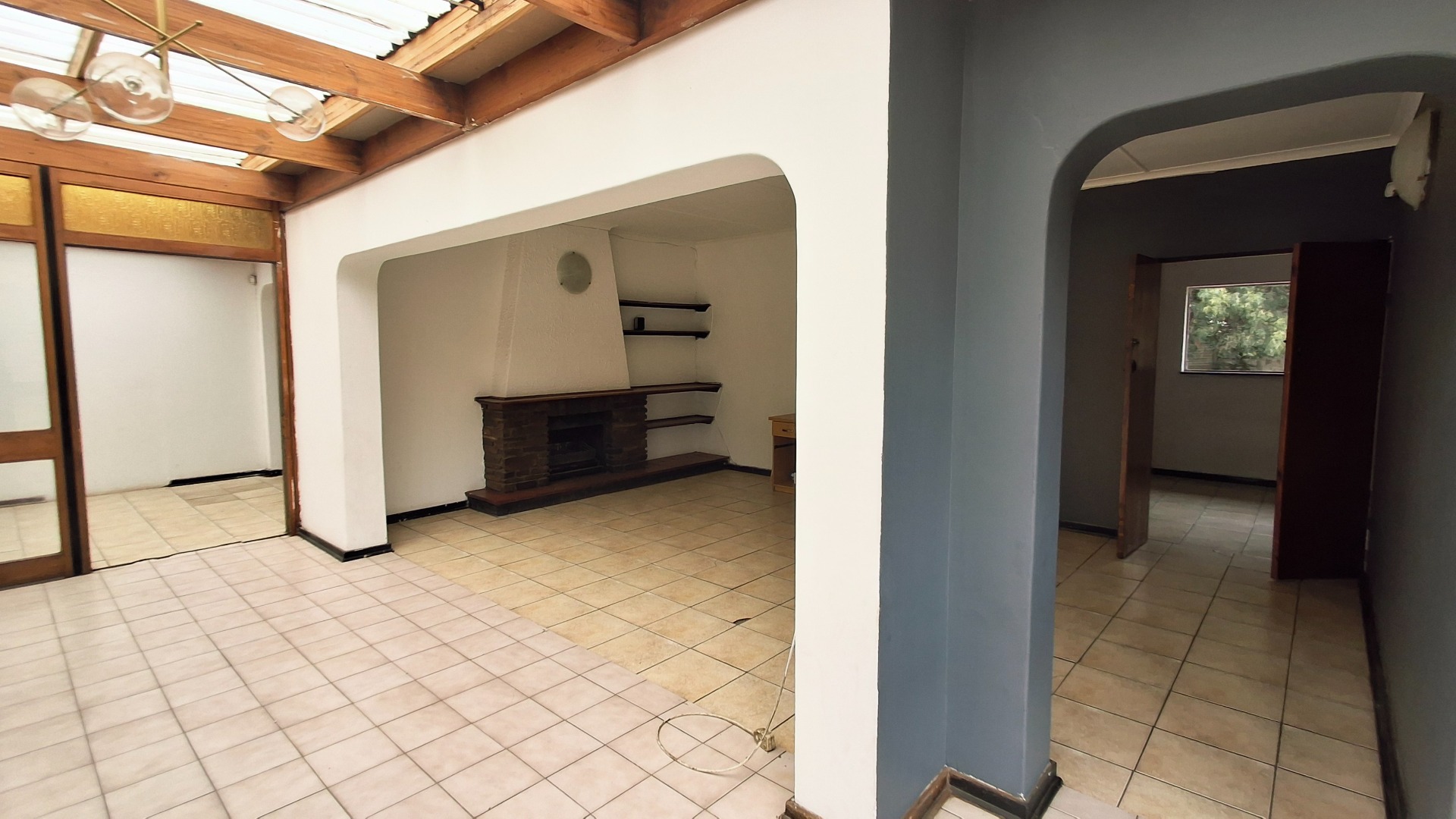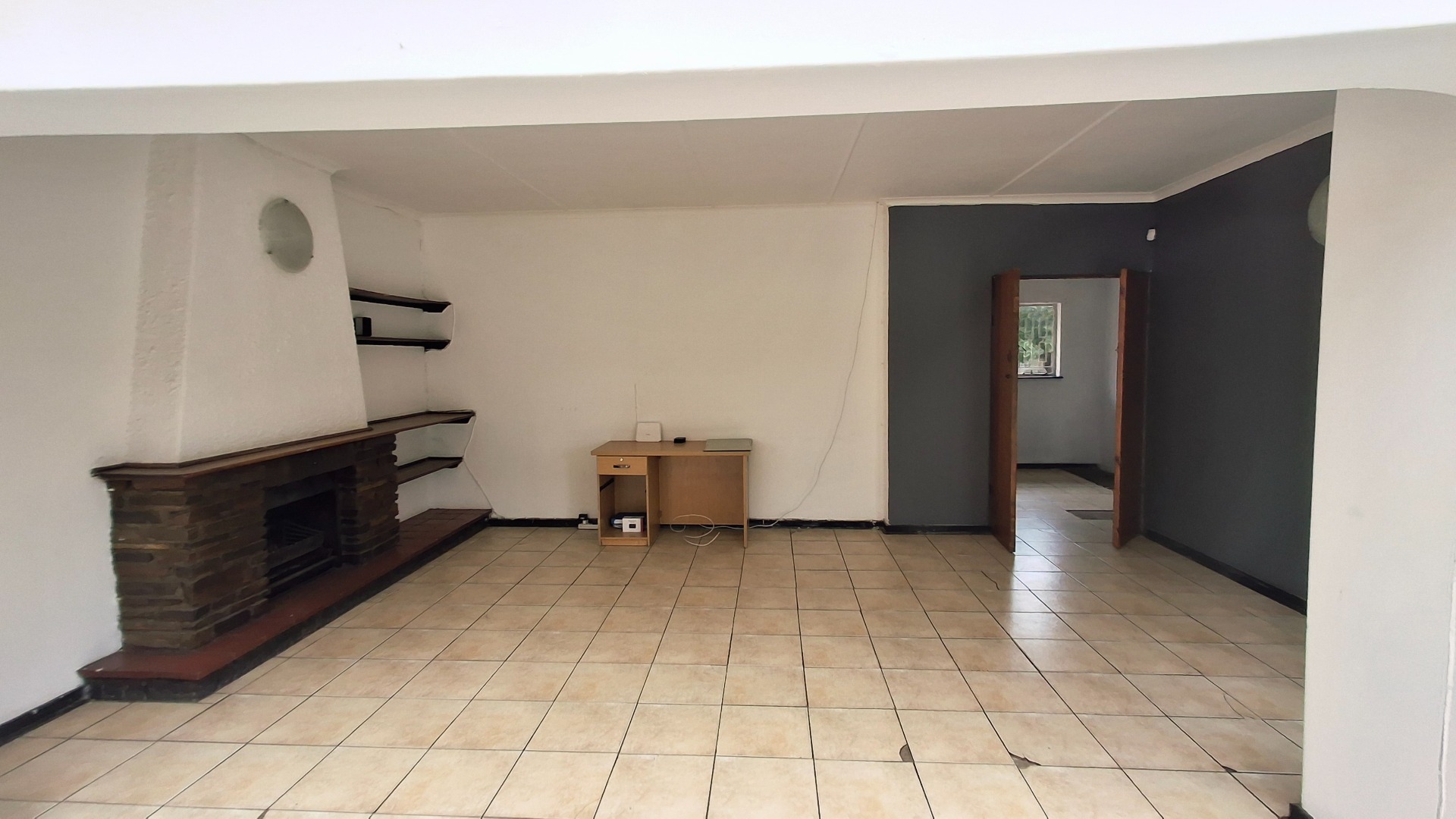 The home comprises three well-proportioned bedrooms, serviced by a single bathroom. A dedicated study offers an ideal space for a home office. The kitchen, currently awaiting renovation, presents a blank canvas for your dream culinary design. A charming built-in fireplace in one of the living areas adds warmth and character, while burglar bars enhance security throughout the property.