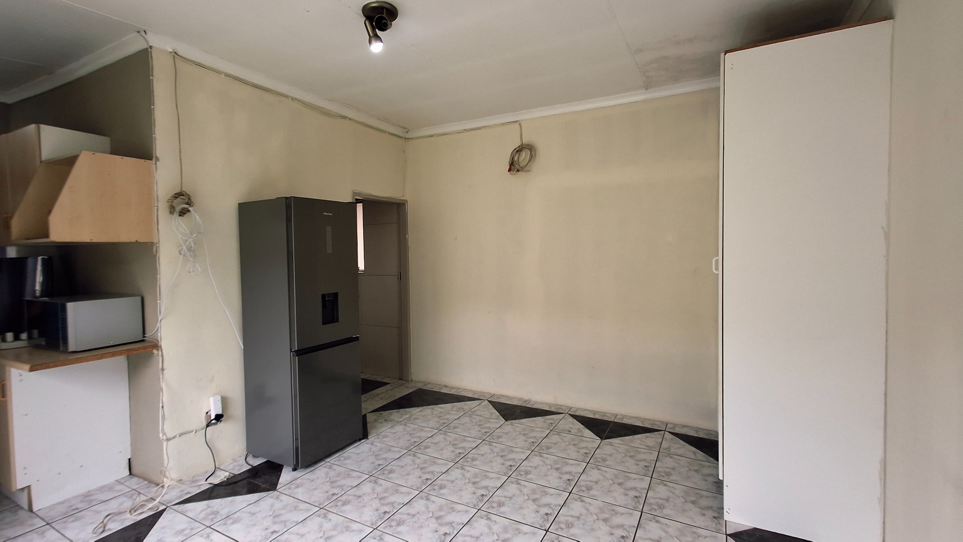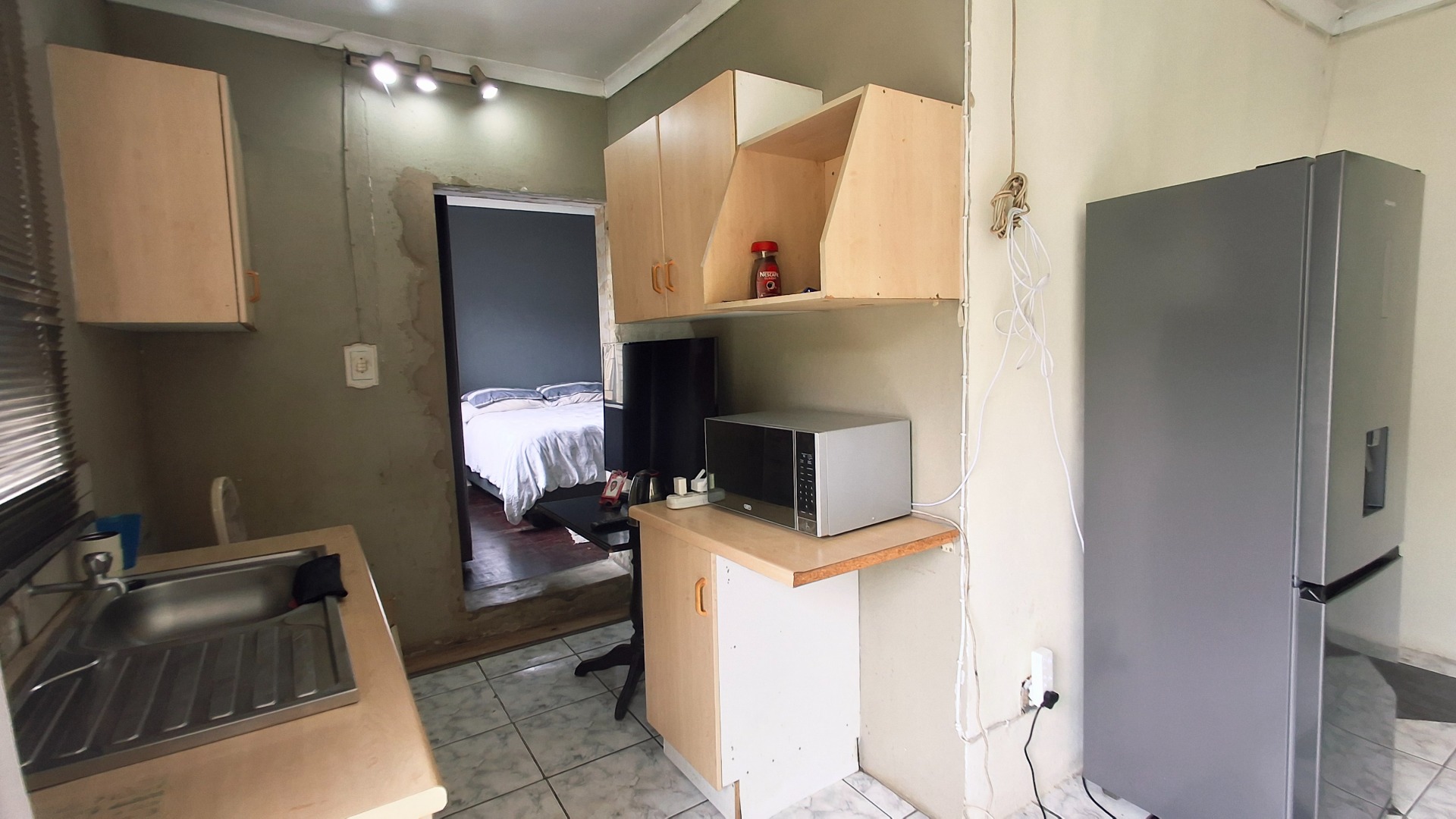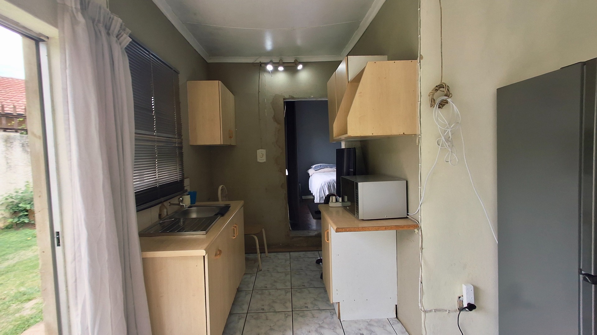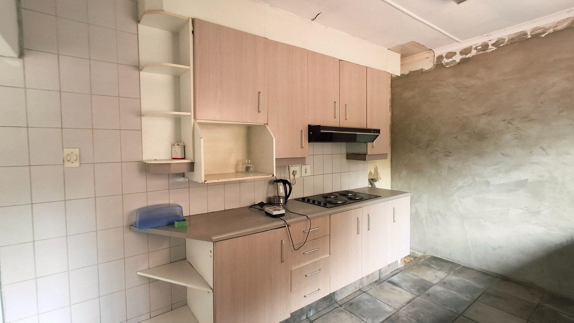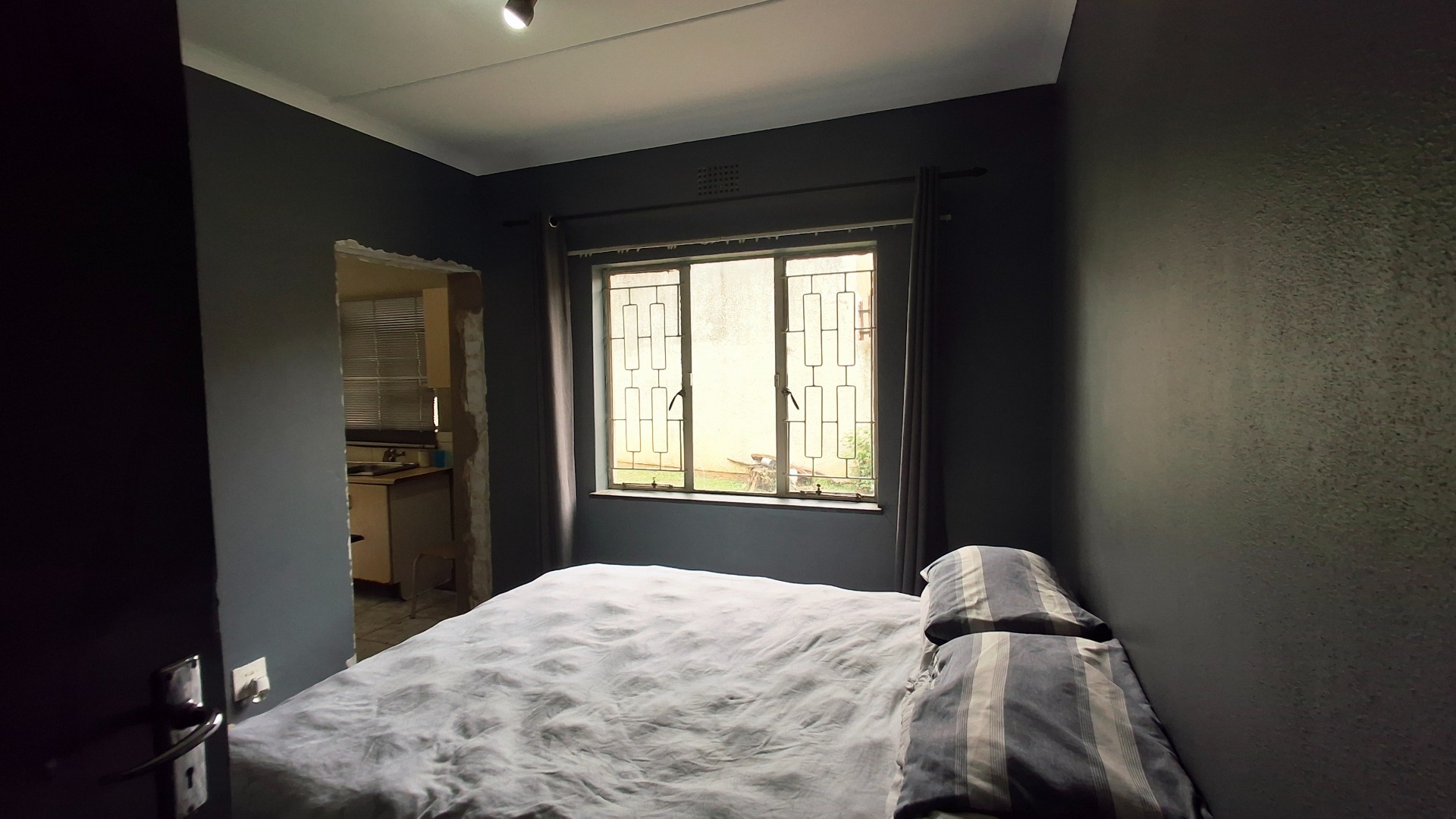 The home comprises three well-proportioned bedrooms, serviced by a single bathroom. A dedicated study offers an ideal space for a home office. The kitchen, currently awaiting renovation, presents a blank canvas for your dream culinary design. A charming built-in fireplace in one of the living areas adds warmth and character, while burglar bars enhance security throughout the property.