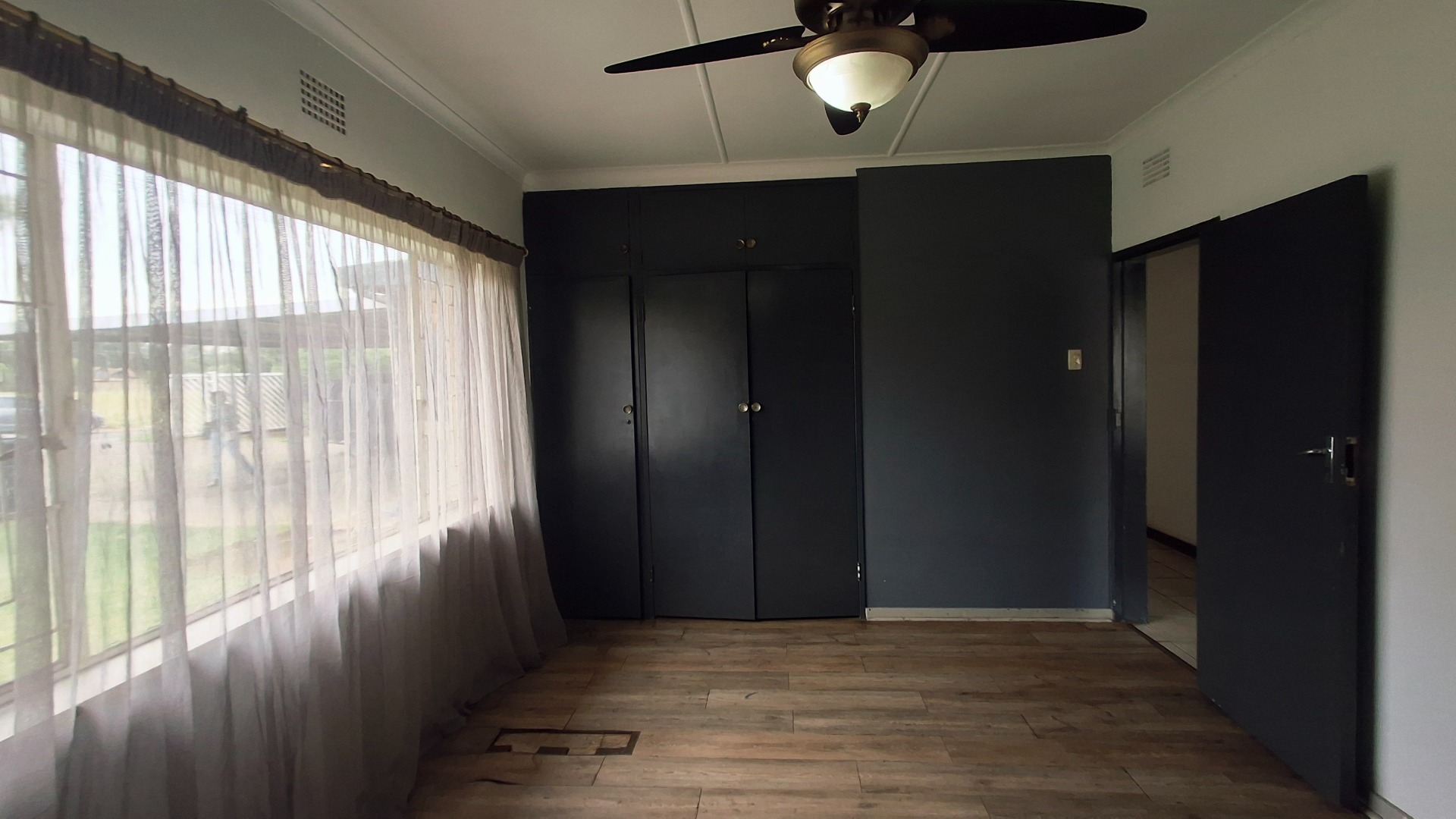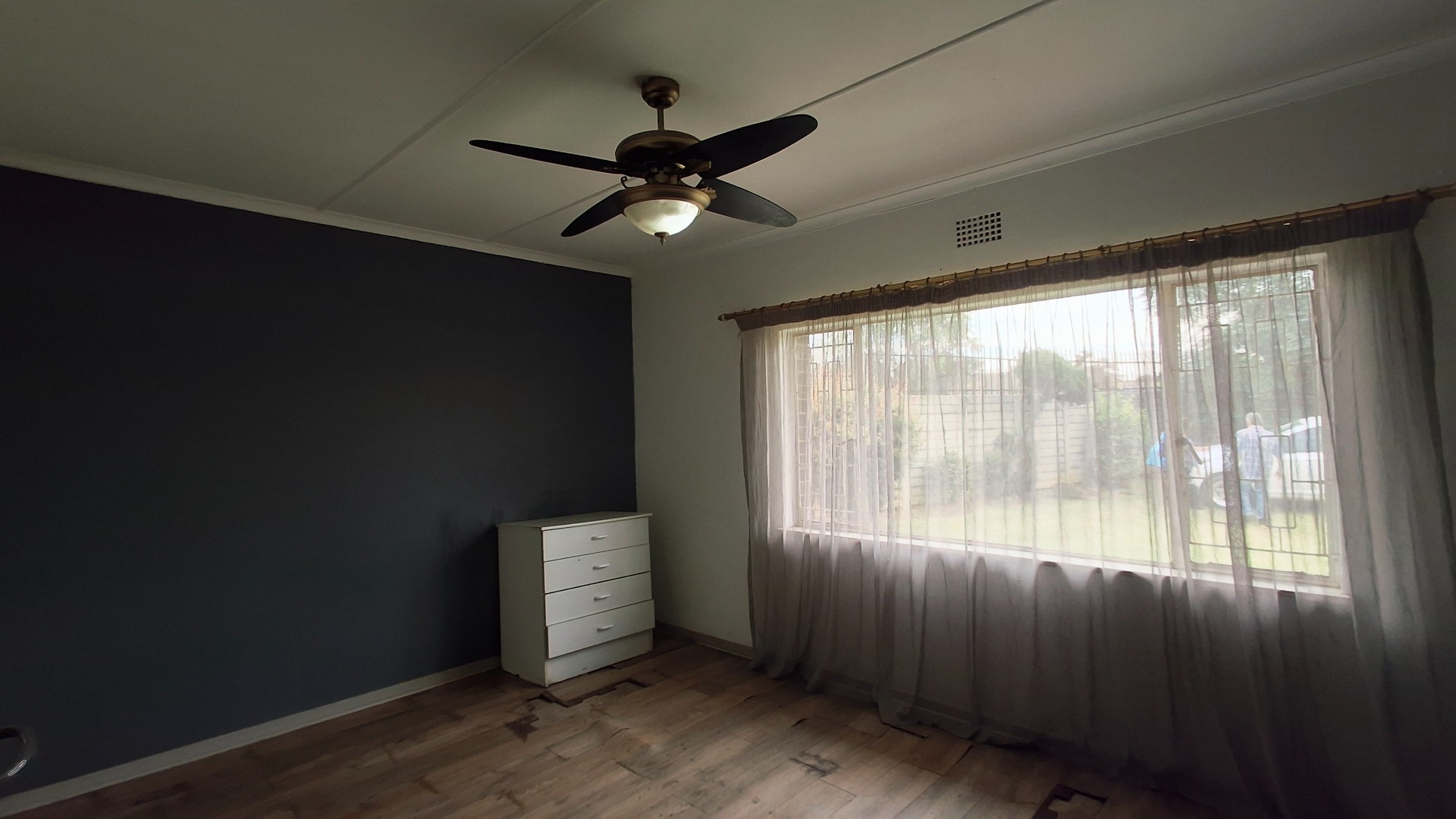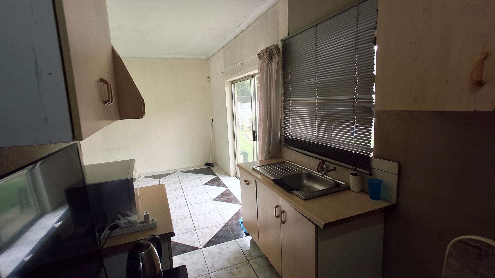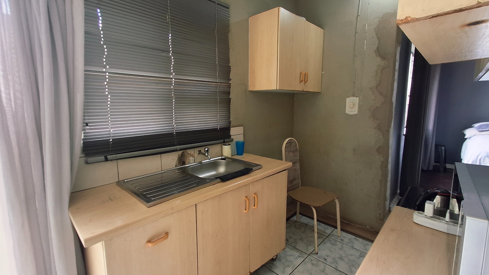 The home comprises three well-proportioned bedrooms, serviced by a single bathroom. A dedicated study offers an ideal space for a home office. The kitchen, currently awaiting renovation, presents a blank canvas for your dream culinary design. A charming built-in fireplace in one of the living areas adds warmth and character, while burglar bars enhance security throughout the property.