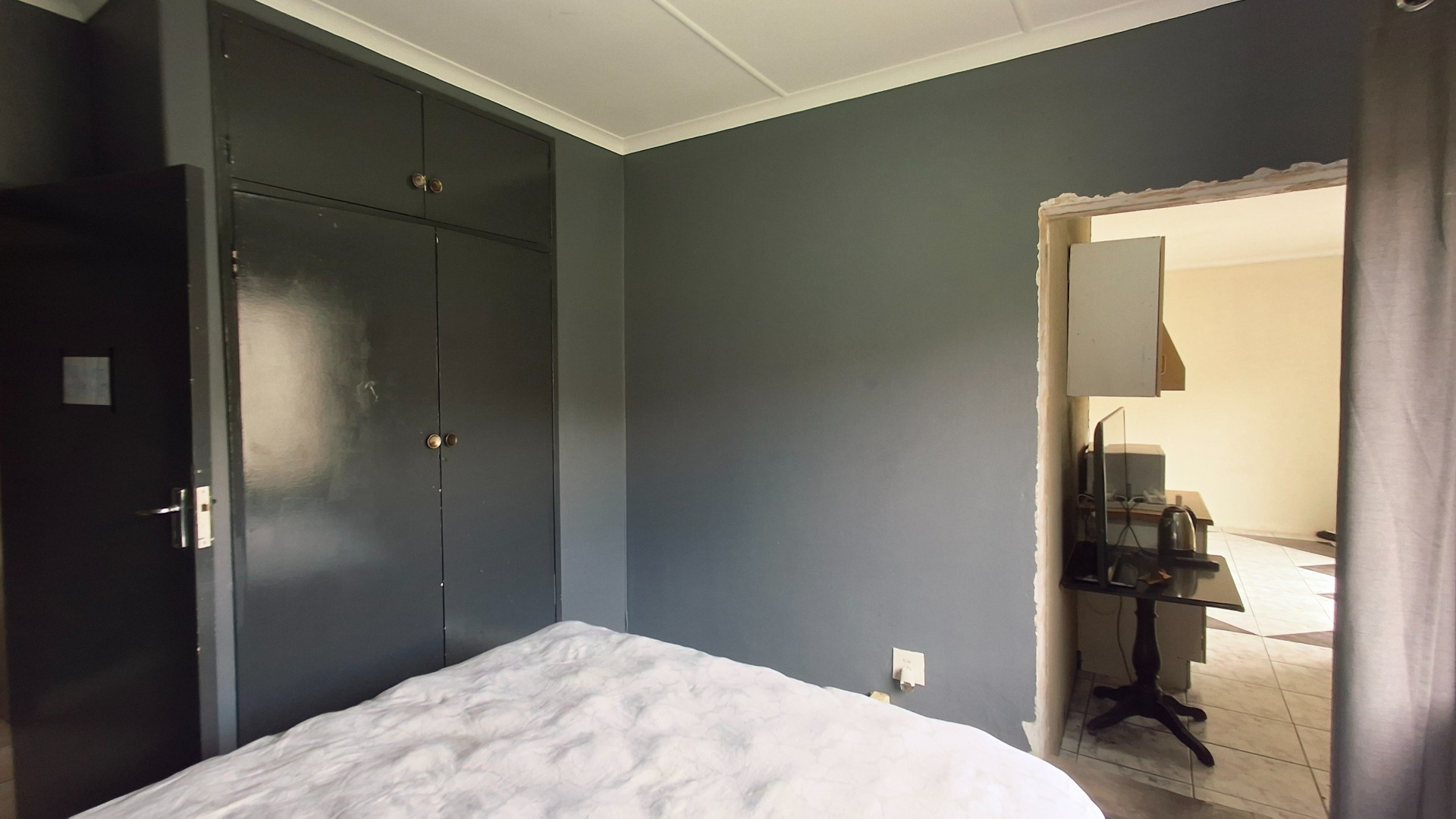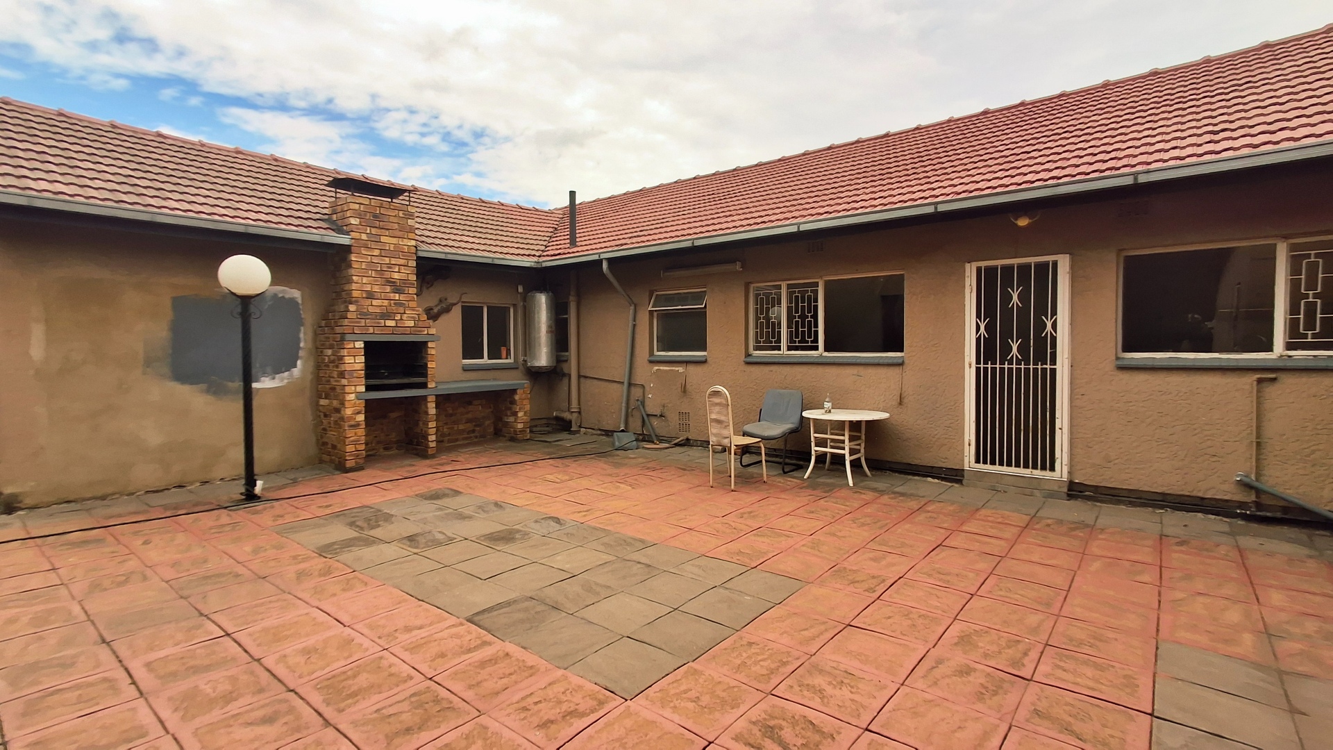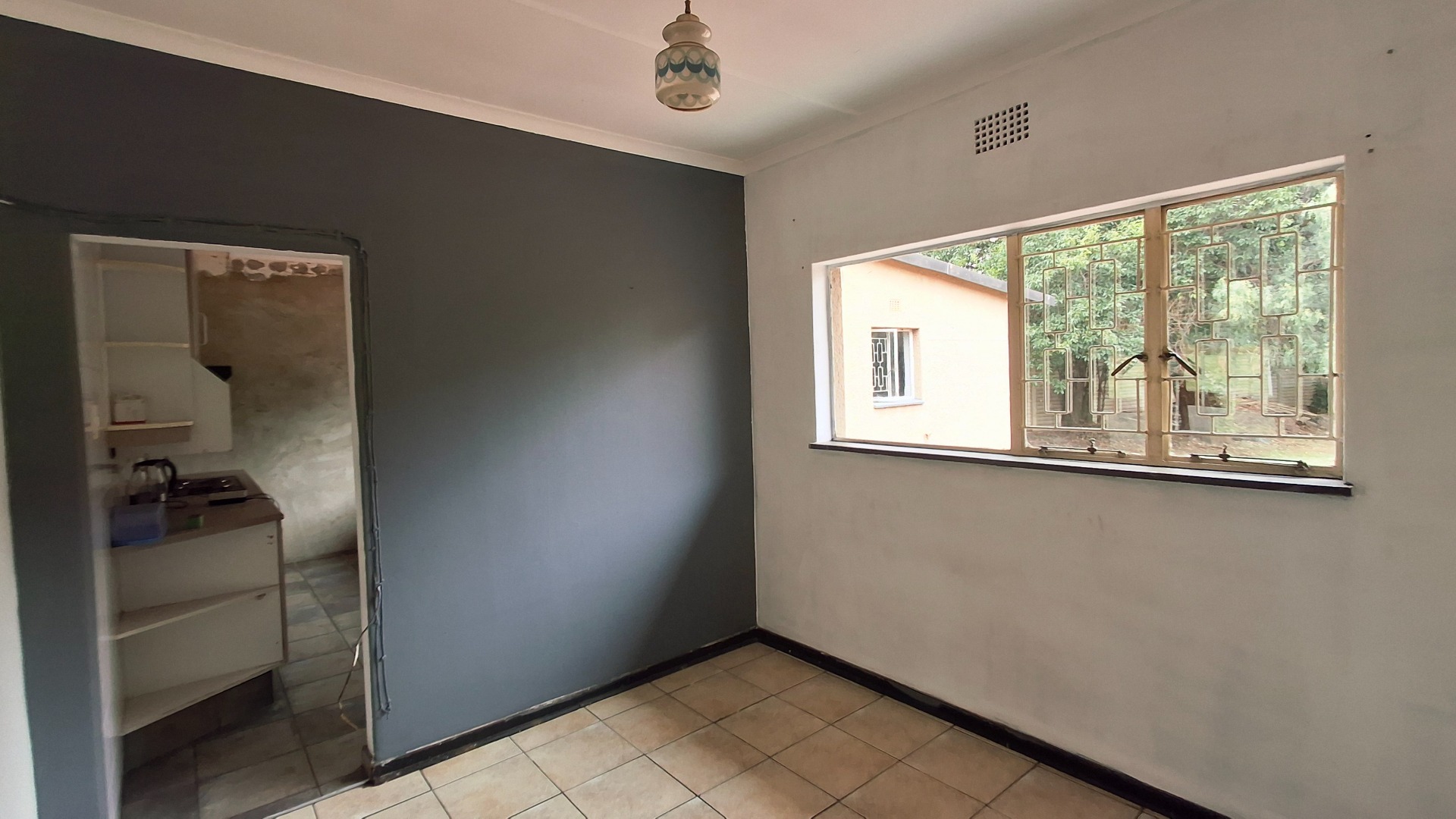 The home comprises three well-proportioned bedrooms, serviced by a single bathroom. A dedicated study offers an ideal space for a home office. The kitchen, currently awaiting renovation, presents a blank canvas for your dream culinary design. A charming built-in fireplace in one of the living areas adds warmth and character, while burglar bars enhance security throughout the property.