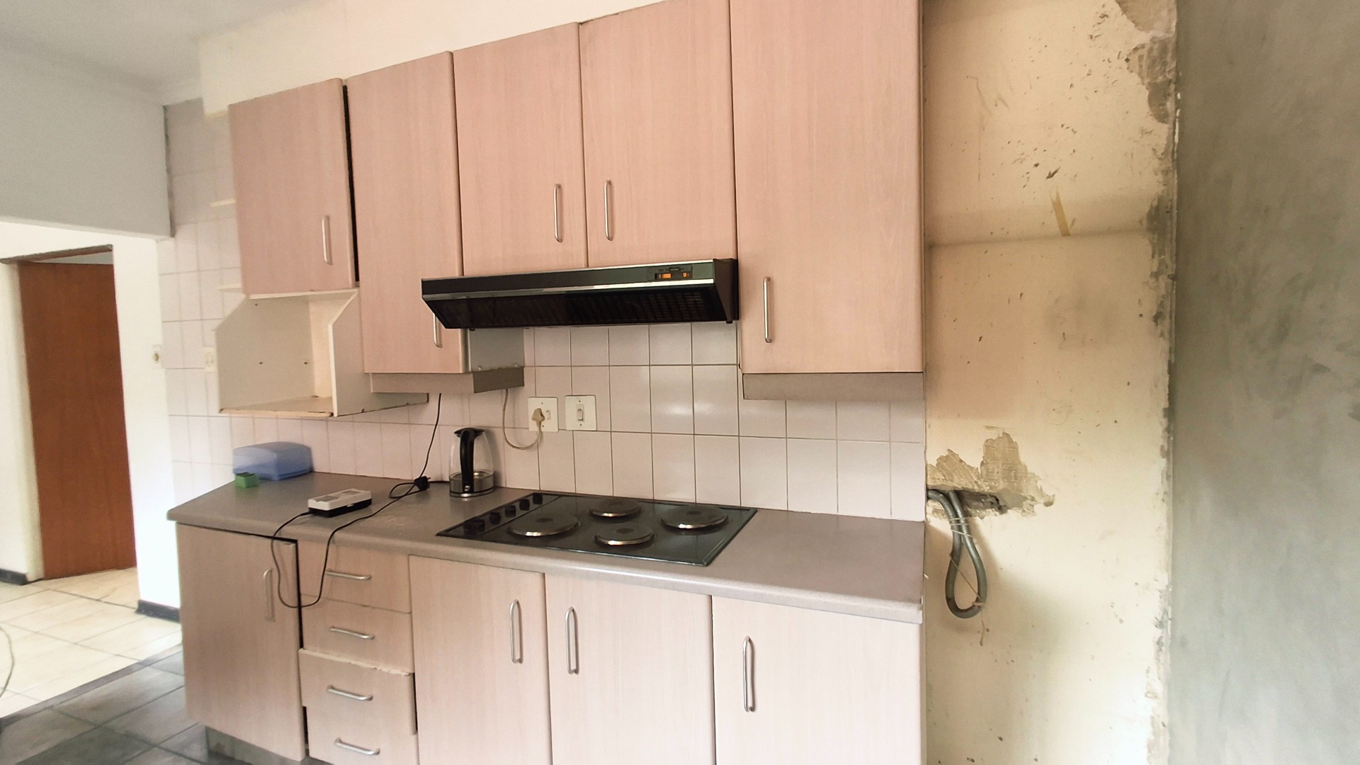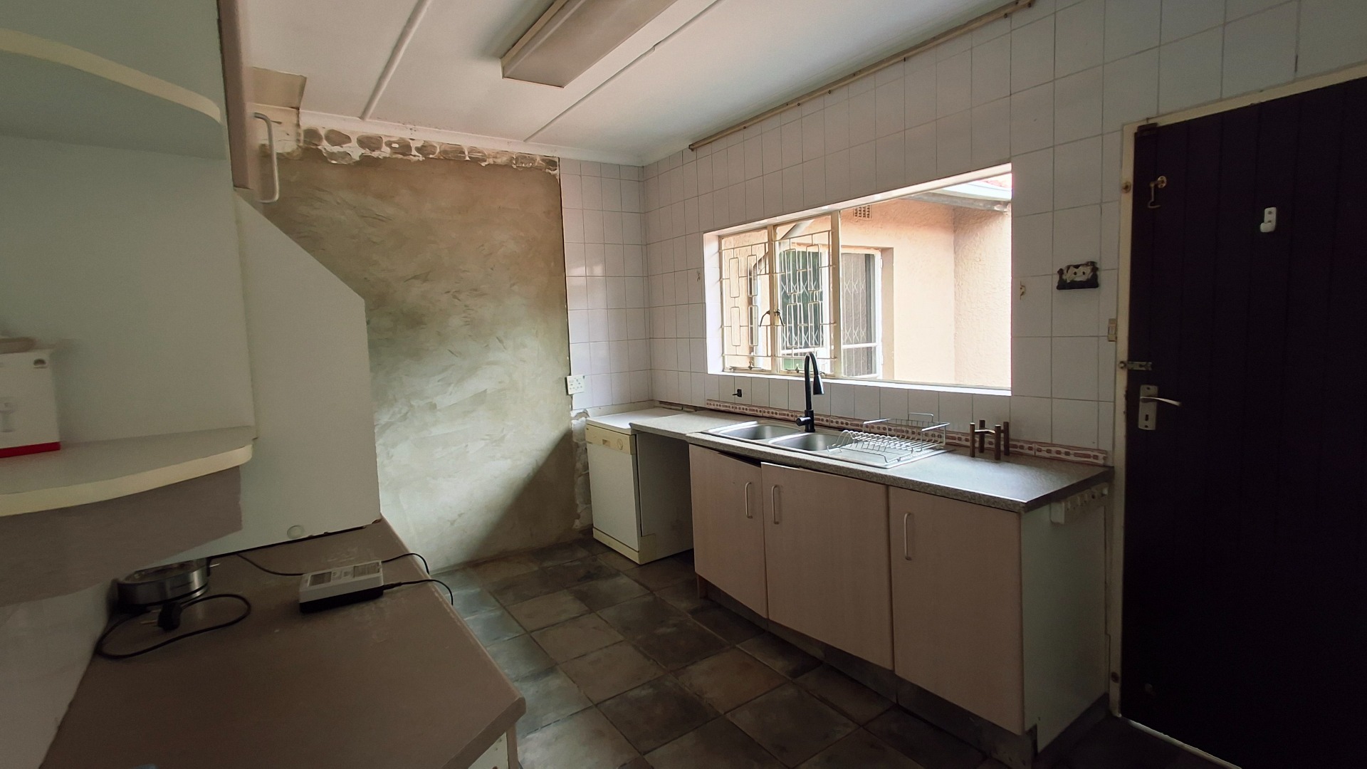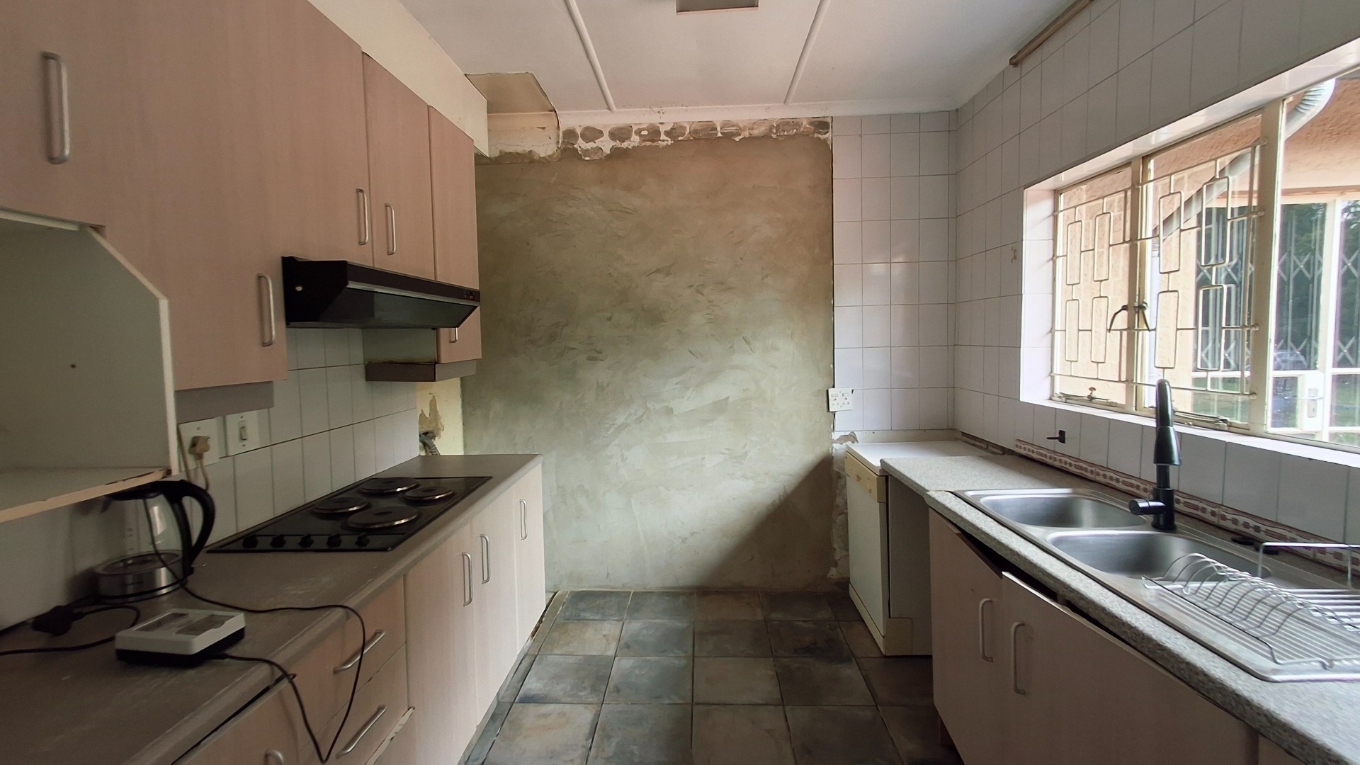 The home comprises three well-proportioned bedrooms, serviced by a single bathroom. A dedicated study offers an ideal space for a home office. The kitchen, currently awaiting renovation, presents a blank canvas for your dream culinary design. A charming built-in fireplace in one of the living areas adds warmth and character, while burglar bars enhance security throughout the property.