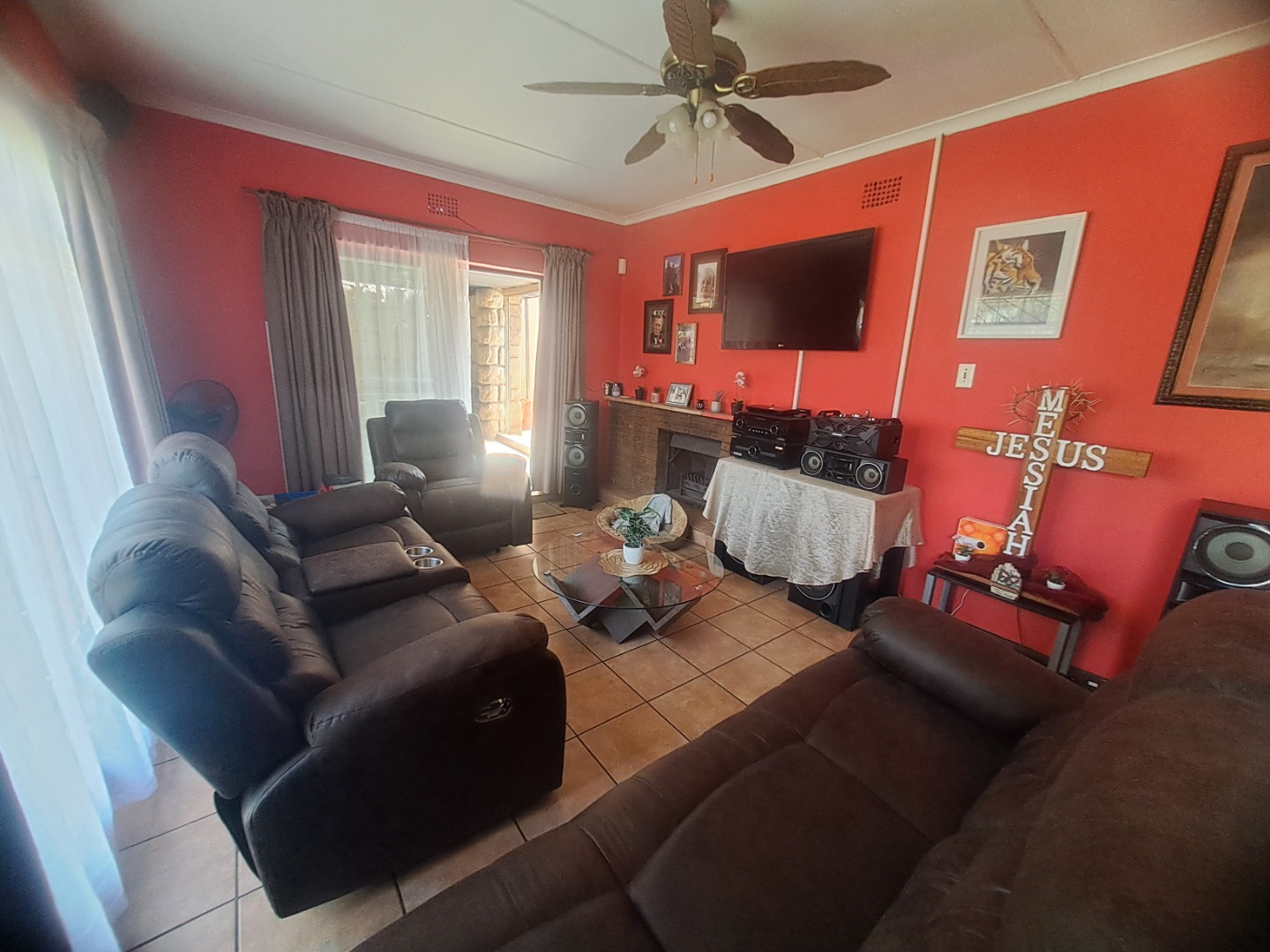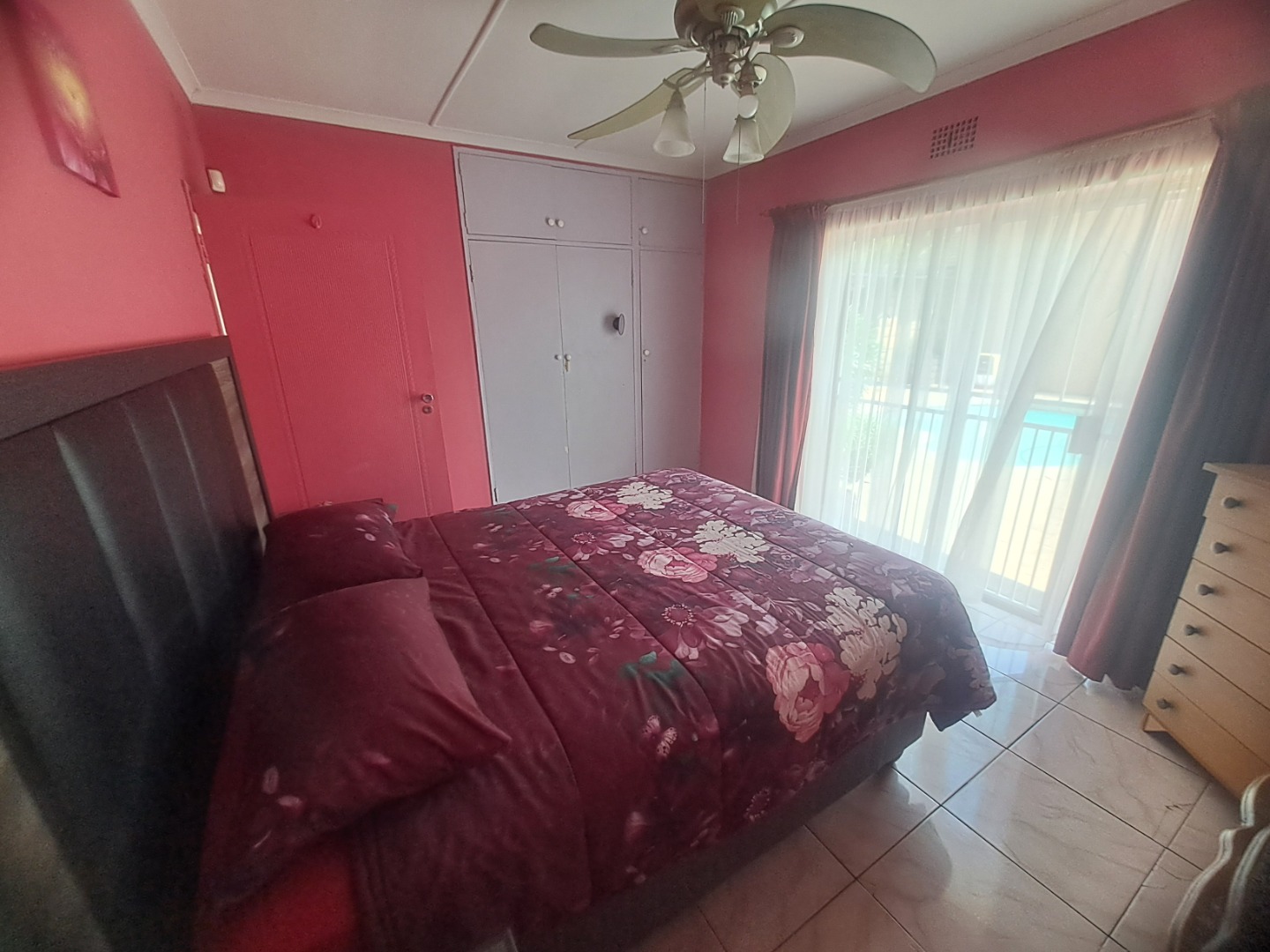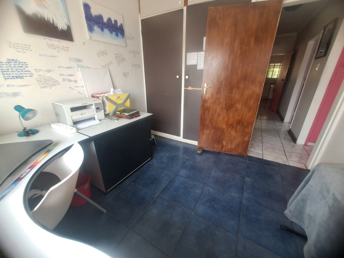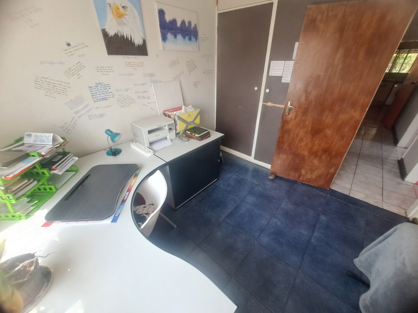 Outdoors, the property continues to impress with a large, well-maintained garden and a secure perimeter fence, perfect for pets and outdoor activities. Enjoy the water in a sky blue swimming pool and a built-in braai for entertaining, complemented by a fireplace for cooler evenings. Parking is well catered for with a double garage and additional open parking spaces.