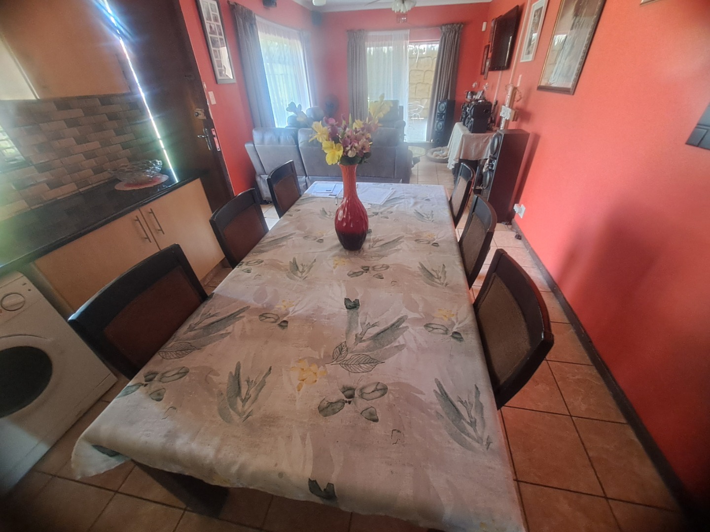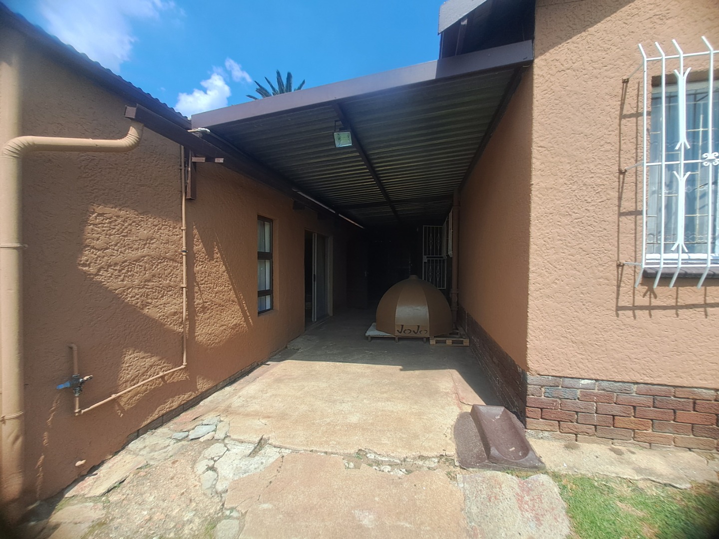 Discover this invitinghome situated on a generous 746 sqm erf in the established suburban area of Dinwiddie, Germiston. The property presents a welcoming kerb appeal with a well-maintained front lawn, a covered carport, and a paved seating area, all secured with security bars on windows and doors for peace of mind.