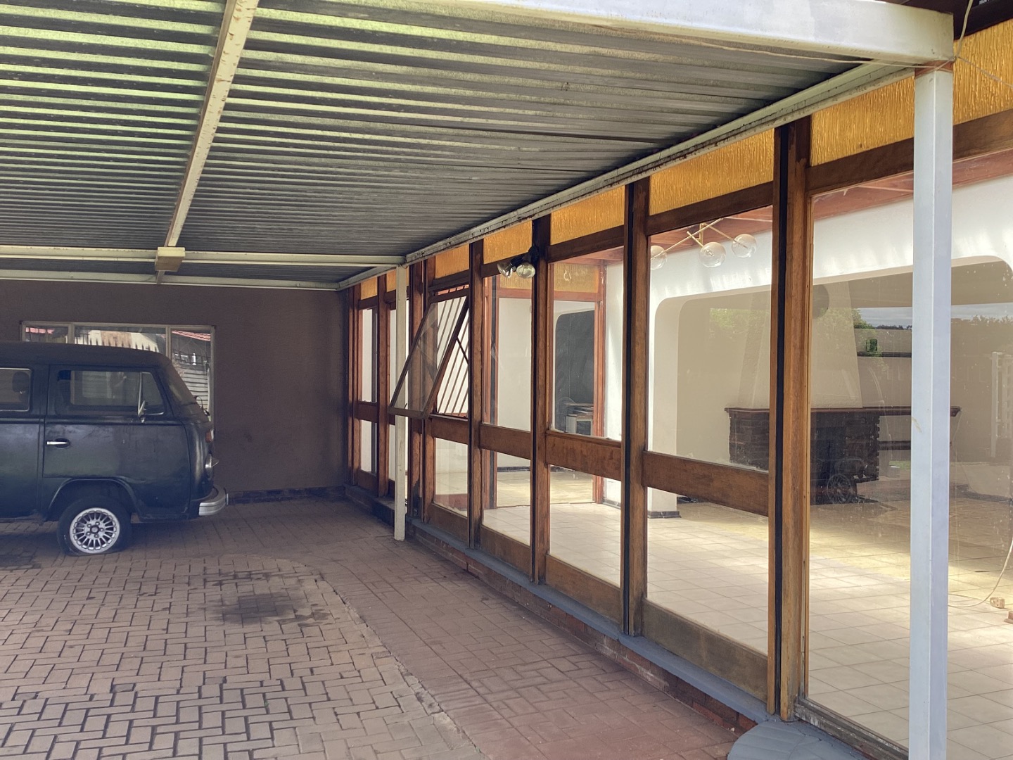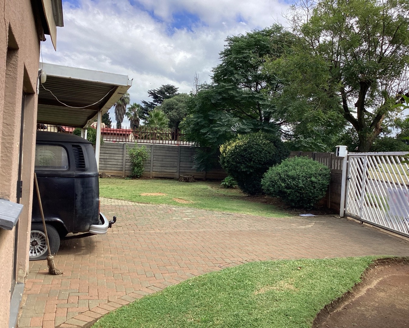 Nestled in the established suburban area of Dinwiddie, Germiston, this charming residence offers a blend of comfortable living and expansive outdoor potential. The property immediately welcomes with a paved driveway leading to a convenient carport, providing covered parking for vehicles. Mature trees dot the landscape, offering natural shade and contributing to the home's serene, green surroundings, while the classic red tiled roof adds a touch of traditional appeal. The exterior, though showing signs of age, presents a solid foundation for a modern refresh, allowing new owners to infuse their personal style.