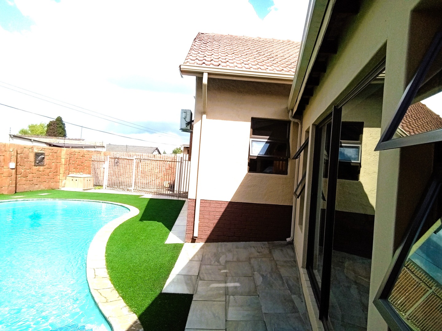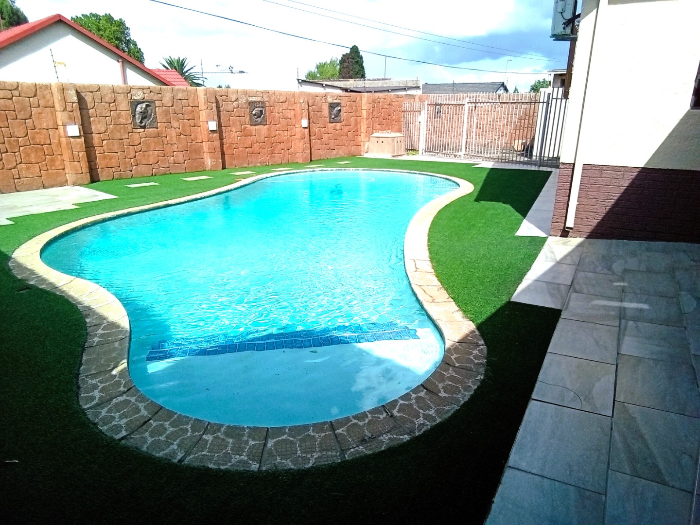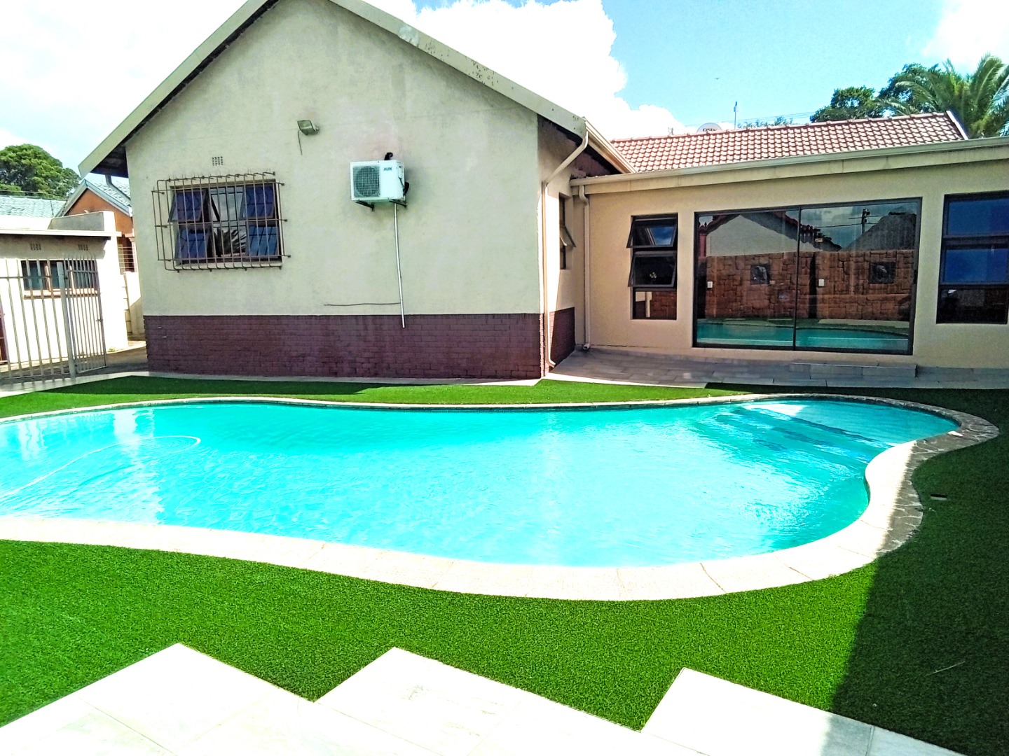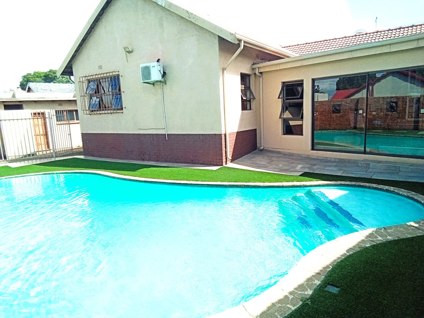 Stepping outside, you will discover an exquisite outdoor braai area that boasts designated chicken, beef, and pork braai stations – every braai enthusiast's dream! This space is not just a yard; it’s an entertainer's paradise, perfect for summer gatherings, parties, or simply enjoying a quiet evening under the stars.