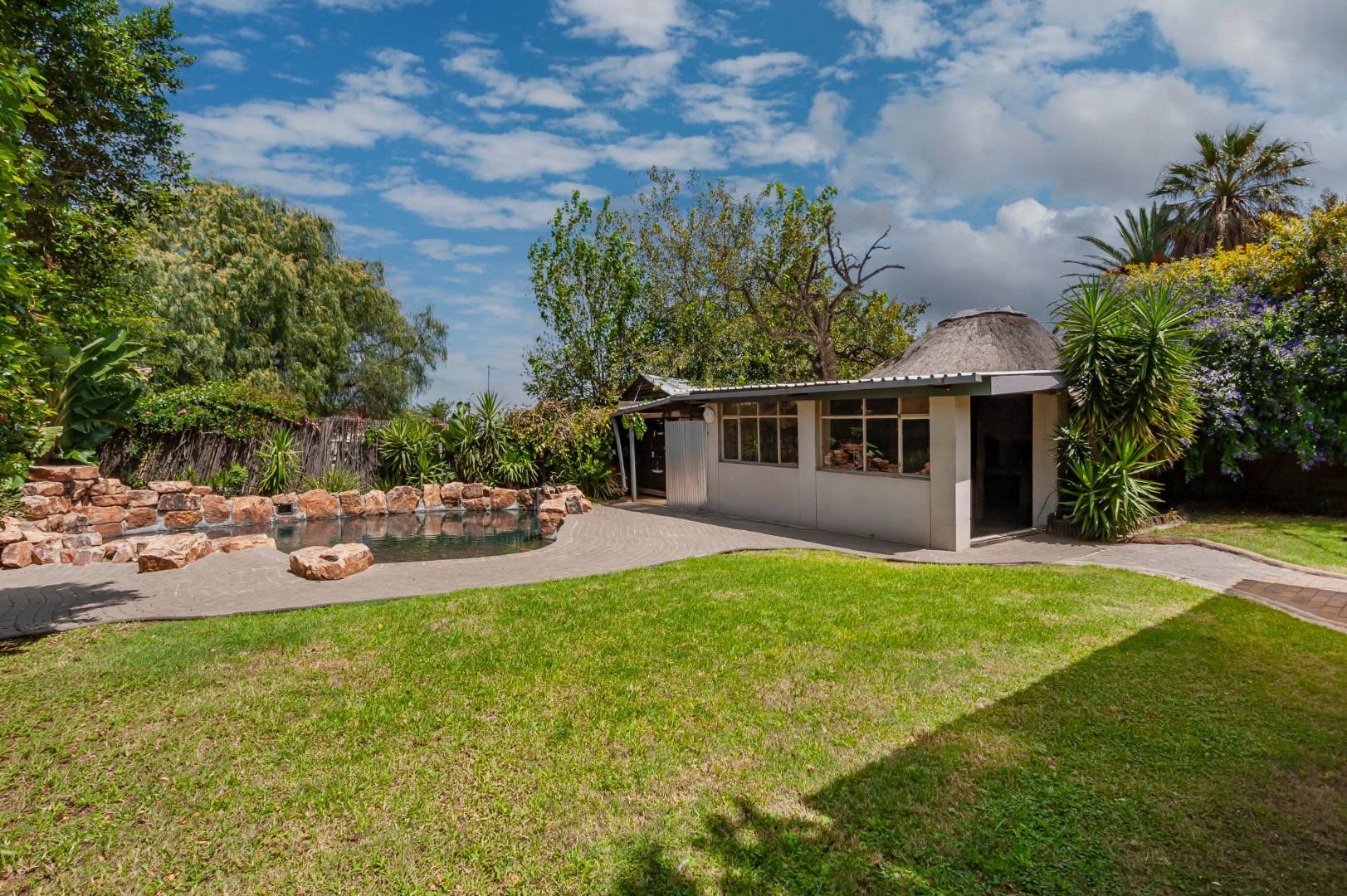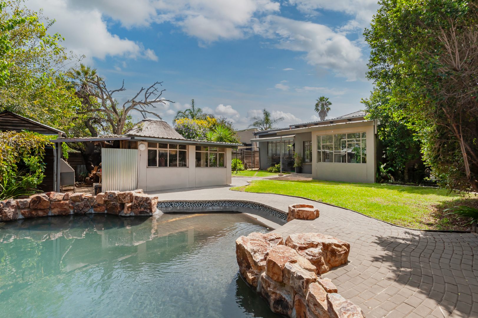 Outside, enjoy a refreshing swimming pool and a lapa, complemented by an established garden and a covered patio. Practical amenities include a separate laundry area and water tanks. A valuable flatlet adds versatility, perfect for extended family or generating rental income. This pet-friendly property ensures peace of mind with burglar bars and security gates.