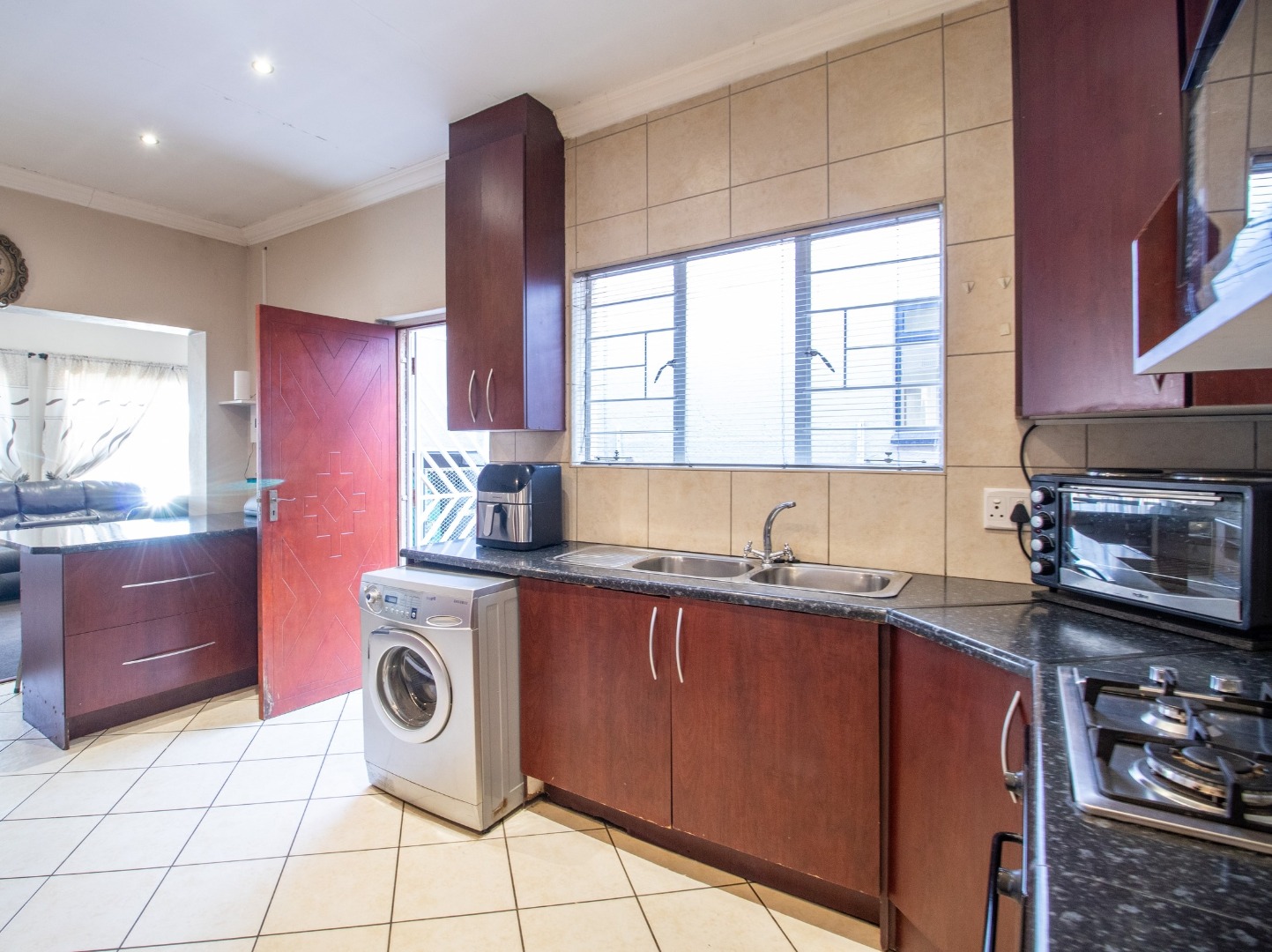 Ensuring utmost peace of mind, the property is secured with an access gate and robust security gate. Nestled within the established suburban enclave of Elsburg, Germiston, this distinguished home offers a tranquil lifestyle amidst a vibrant community, providing effortless access to local amenities and essential services.