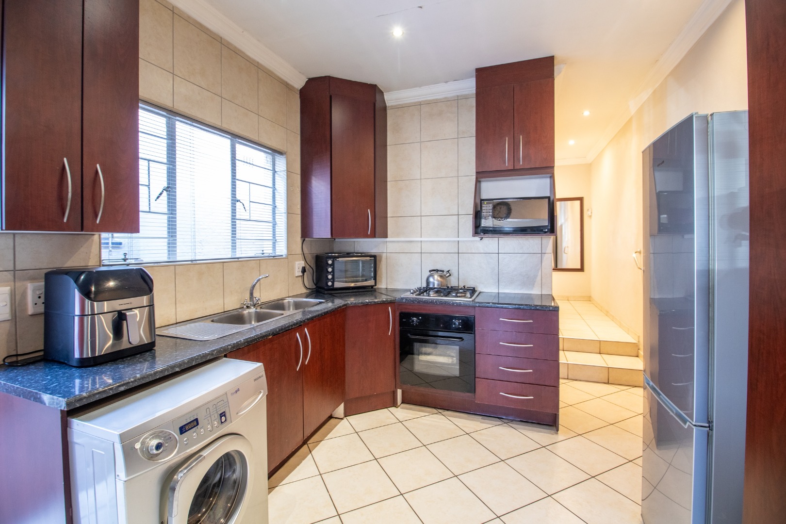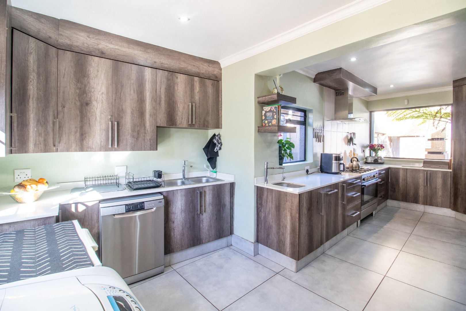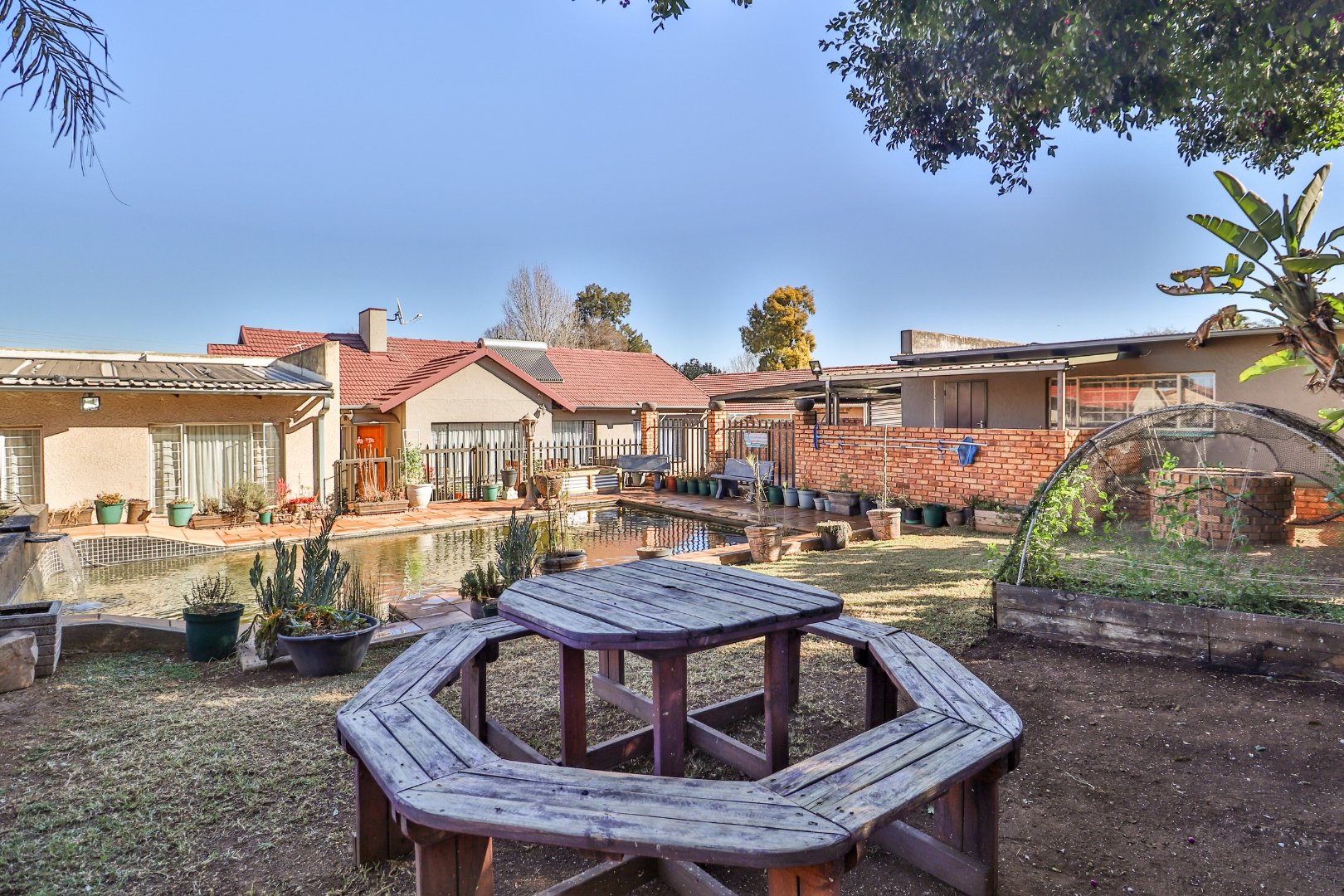 Beyond the interiors, discover an exceptional outdoor lifestyle unfolding across the expansive 895 sqm erf. A sparkling swimming pool promises endless leisure, while the dedicated braai room presents an idyllic setting for al fresco dining and sophisticated entertaining. The property further distinguishes itself with a separate flatlet or second house, offering unparalleled versatility for extended family, esteemed guests, or potential rental income. Ample secure parking for two vehicles ensures effortless convenience.