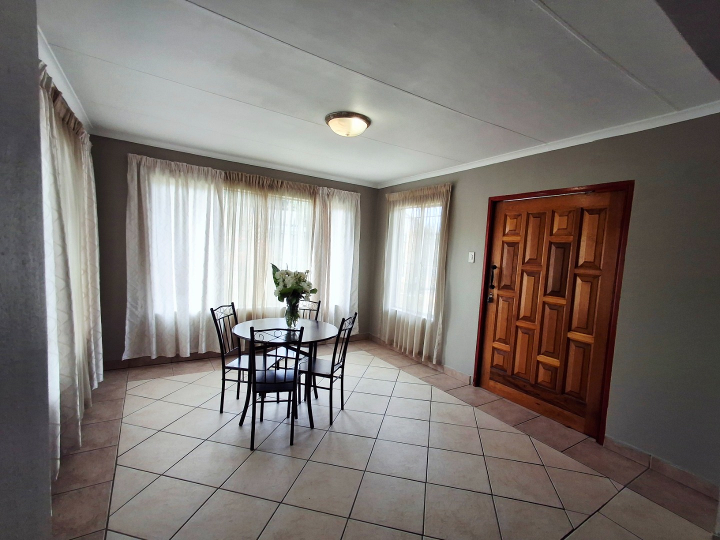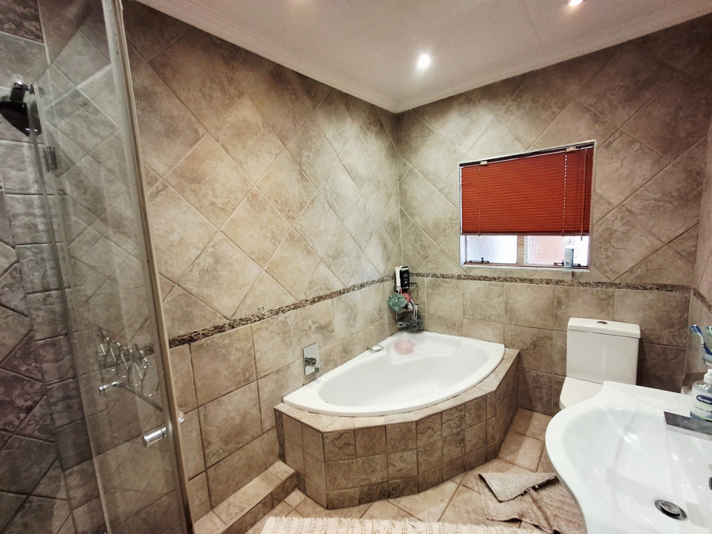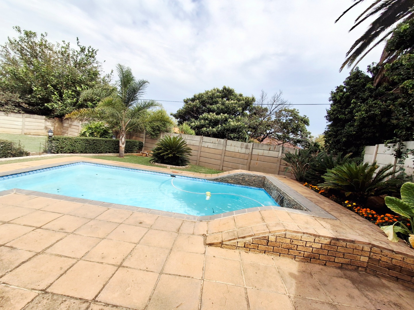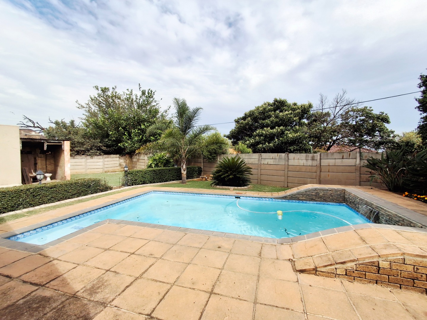 Discover this well-maintained 4-bedroom, 1.5-bathroom family home situated on a generous 985 sqm erf in the suburban heart of Elsburg, Germiston. Boasting a neat single-story facade with a green tiled roof, attractive brick paving, and mature landscaping including palm trees, this property offers excellent kerb appeal and a welcoming first impression. Robust security features, including a tall palisade fence with brick pillars, a sliding access gate, and burglar bars on all windows, ensure peace of mind. The interior features a spacious 317 sqm floor plan designed for comfortable living. Enjoy two inviting lounges and a dedicated dining room, all featuring durable tiled flooring and large windows that invite natural light. Unique decorative textured ceilings and ceiling fans add character to the living spaces. While no kitchen photos are available, the property includes one, along with a laundry room and a guest toilet for added convenience. Accommodation comprises four well-proportioned bedrooms, each with tiled floors. One bedroom benefits from a large mirrored sliding wardrobe, enhancing storage and functionality. The home offers 1.5 bathrooms, including a full bathroom and a guest toilet. Outside, the property truly shines with a private swimming pool, a lapa, and a built-in braai, perfect for outdoor entertaining. The expansive garden, paved driveway, and four garages provide ample space for vehicles and recreation. Additional features include water tanks and fibre connectivity. Elsburg is a well-established suburban area within Germiston, offering a family-friendly environment with convenient access to local amenities and transport routes. Key Features: * 4 Bedrooms, 1.5 Bathrooms * 2 Lounges, 1 Dining Room * 4 Garages, Paved Driveway * Swimming Pool, Lapa, Built-in Braai * Robust Security: Palisade Fence, Access Gate, Burglar Bars * Tiled Flooring Throughout * Fibre Connectivity * Water Tanks * Pets Allowed