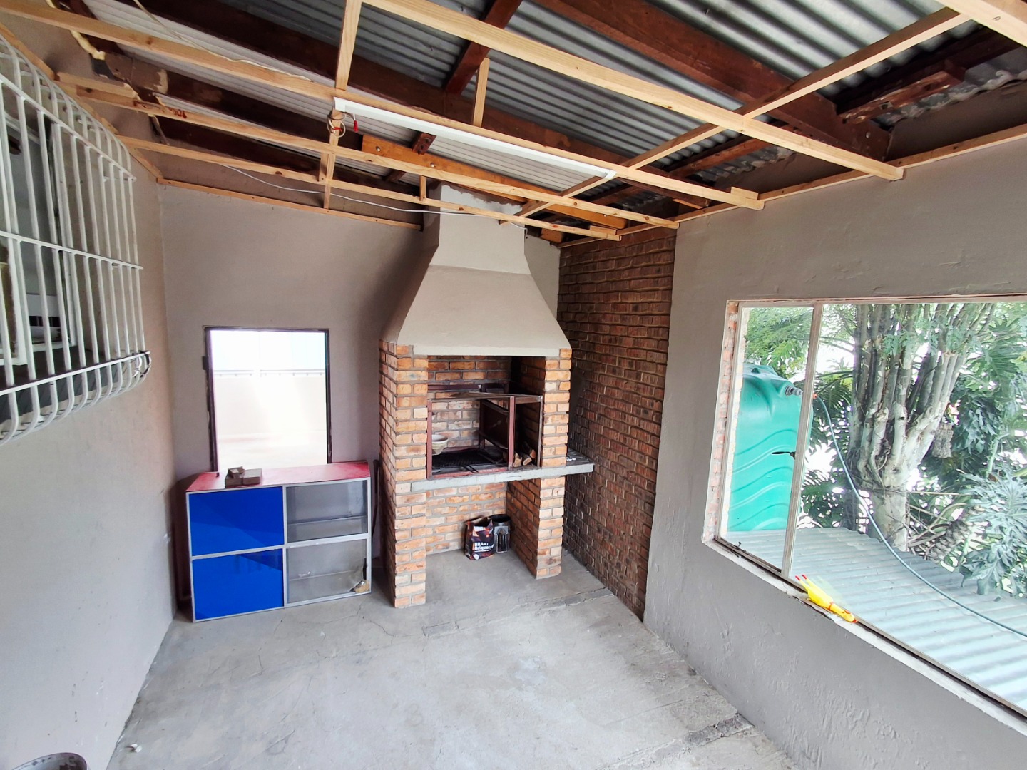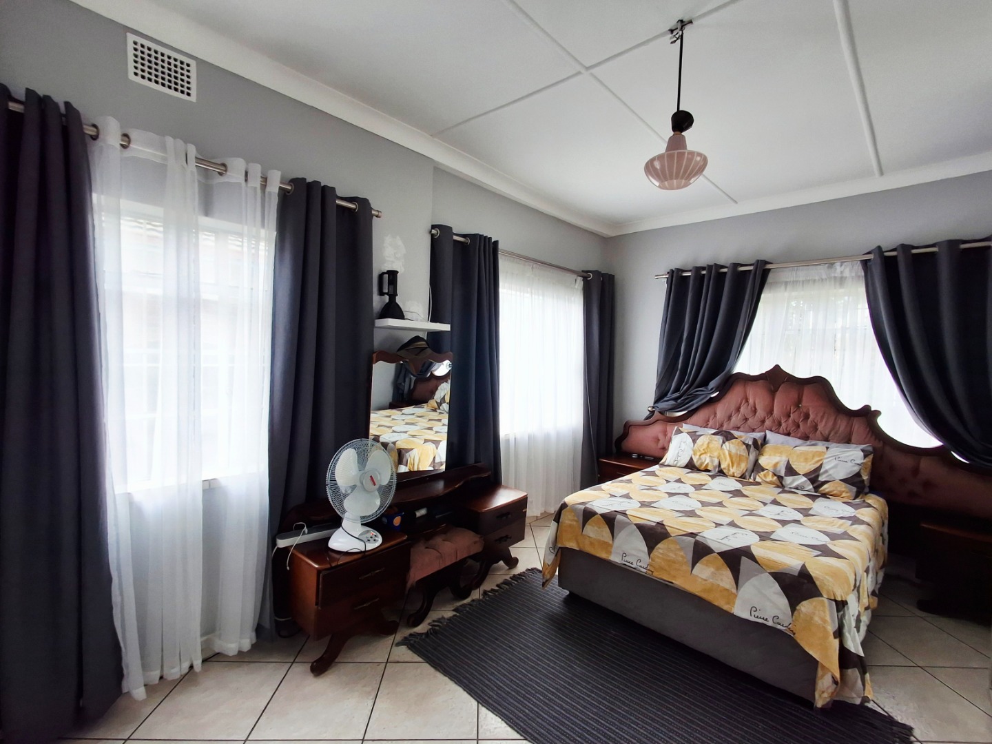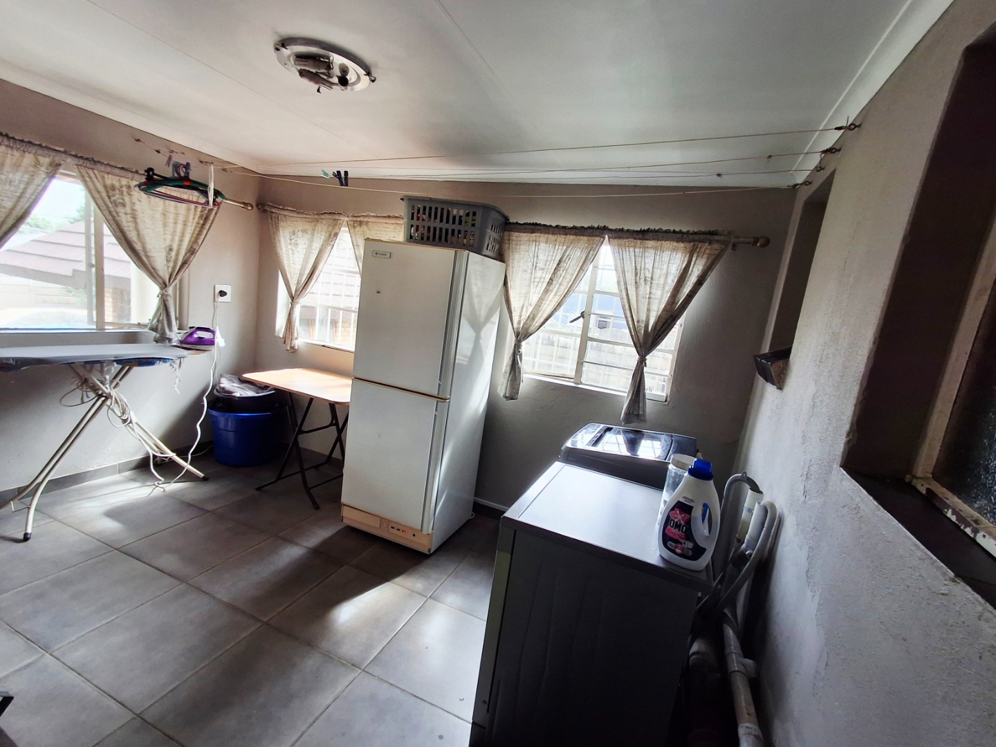 Discover this well-maintained 4-bedroom, 1.5-bathroom family home situated on a generous 985 sqm erf in the suburban heart of Elsburg, Germiston. Boasting a neat single-story facade with a green tiled roof, attractive brick paving, and mature landscaping including palm trees, this property offers excellent kerb appeal and a welcoming first impression. Robust security features, including a tall palisade fence with brick pillars, a sliding access gate, and burglar bars on all windows, ensure peace of mind. The interior features a spacious 317 sqm floor plan designed for comfortable living. Enjoy two inviting lounges and a dedicated dining room, all featuring durable tiled flooring and large windows that invite natural light. Unique decorative textured ceilings and ceiling fans add character to the living spaces. While no kitchen photos are available, the property includes one, along with a laundry room and a guest toilet for added convenience. Accommodation comprises four well-proportioned bedrooms, each with tiled floors. One bedroom benefits from a large mirrored sliding wardrobe, enhancing storage and functionality. The home offers 1.5 bathrooms, including a full bathroom and a guest toilet. Outside, the property truly shines with a private swimming pool, a lapa, and a built-in braai, perfect for outdoor entertaining. The expansive garden, paved driveway, and four garages provide ample space for vehicles and recreation. Additional features include water tanks and fibre connectivity. Elsburg is a well-established suburban area within Germiston, offering a family-friendly environment with convenient access to local amenities and transport routes. Key Features: * 4 Bedrooms, 1.5 Bathrooms * 2 Lounges, 1 Dining Room * 4 Garages, Paved Driveway * Swimming Pool, Lapa, Built-in Braai * Robust Security: Palisade Fence, Access Gate, Burglar Bars * Tiled Flooring Throughout * Fibre Connectivity * Water Tanks * Pets Allowed