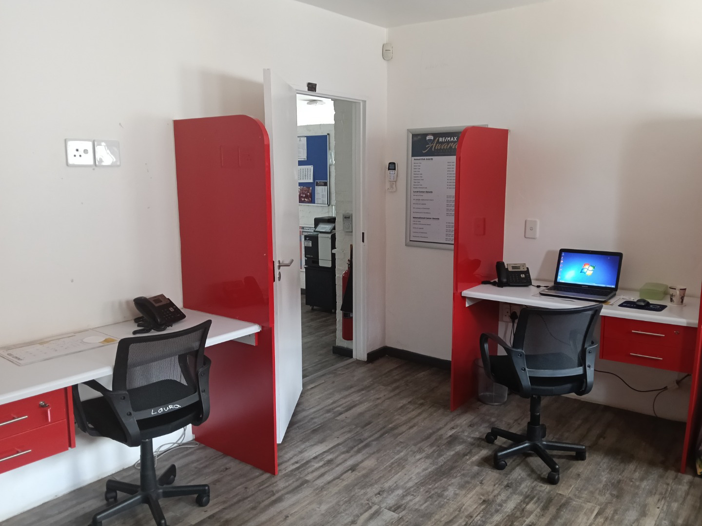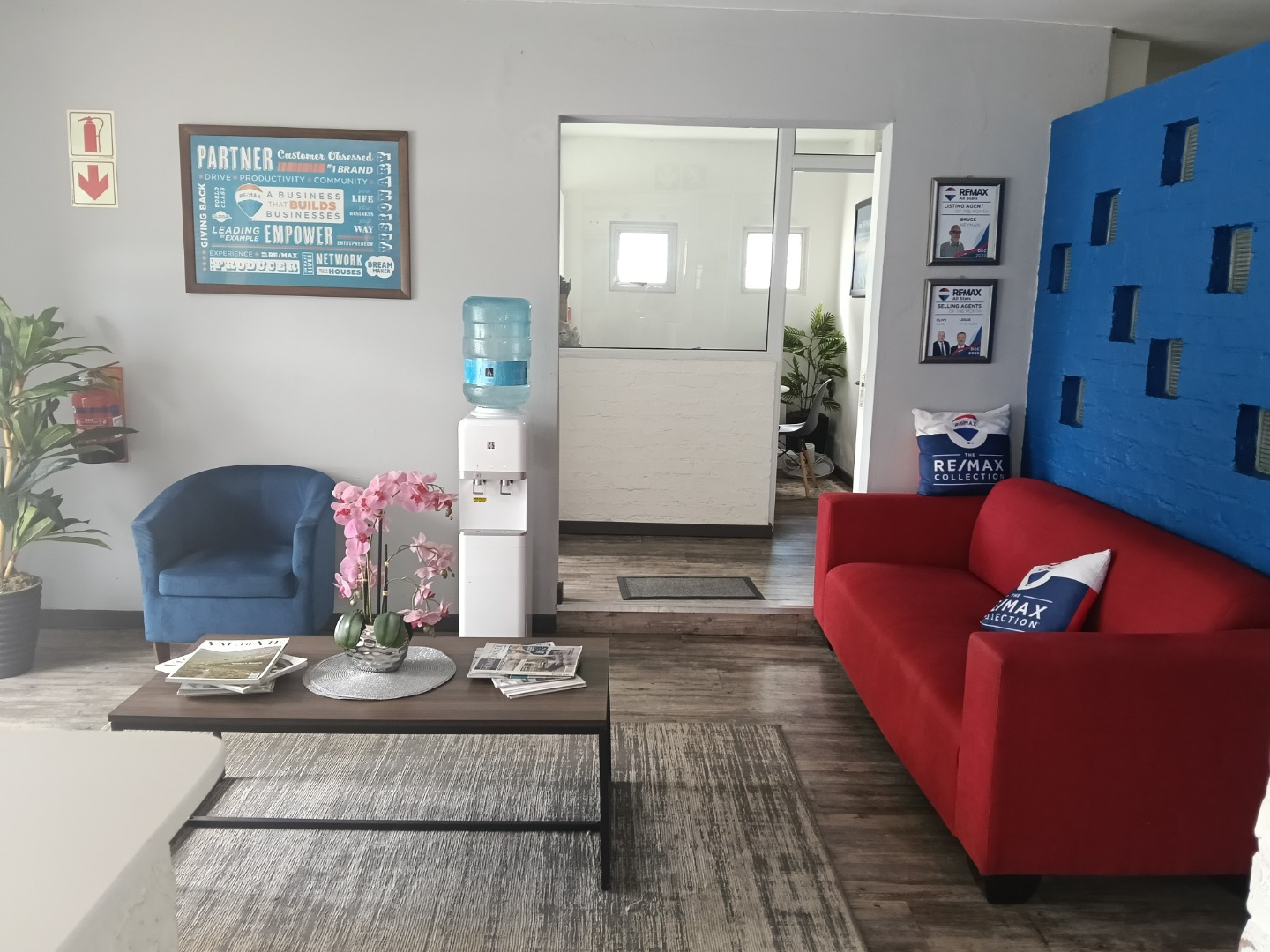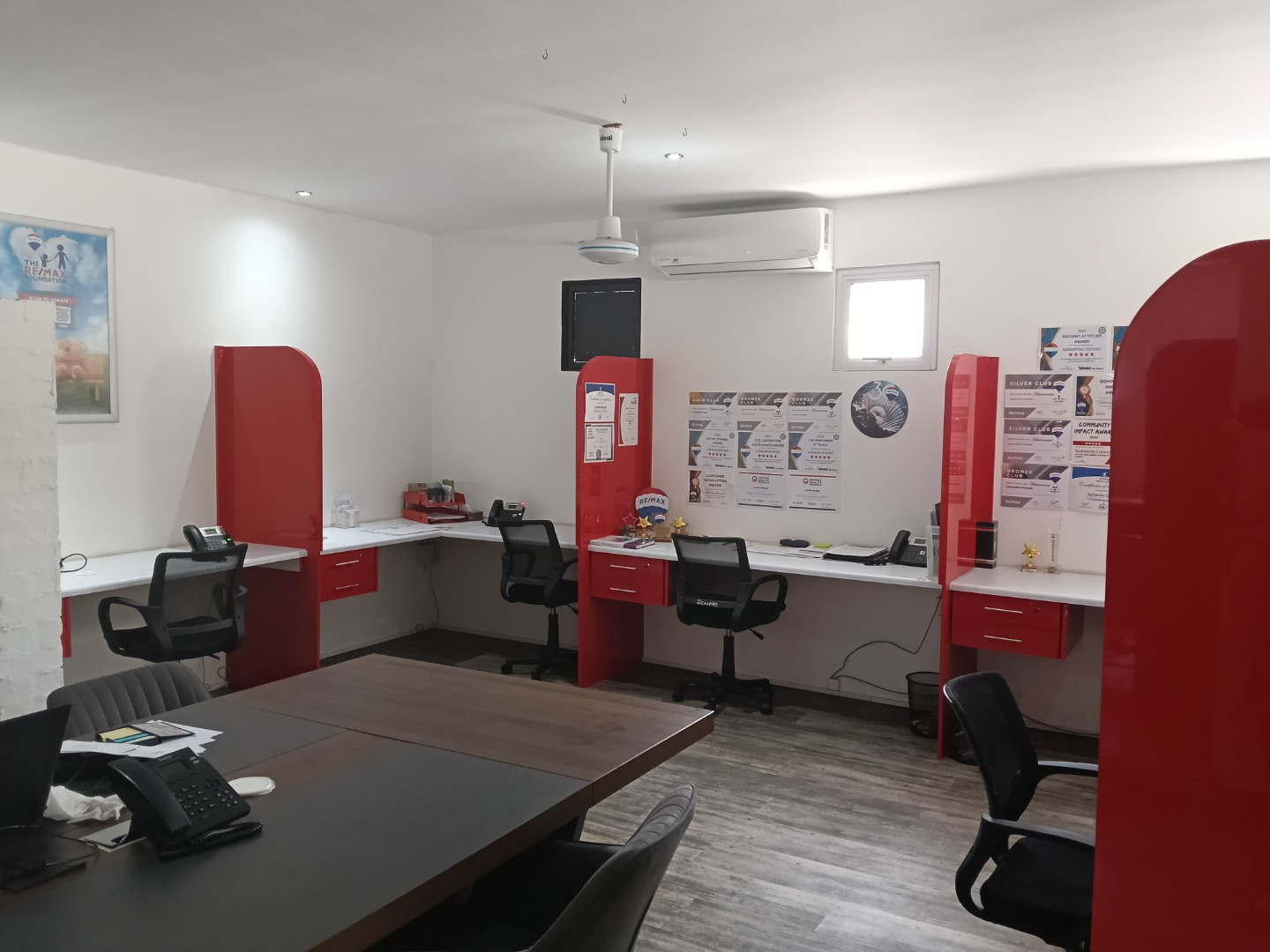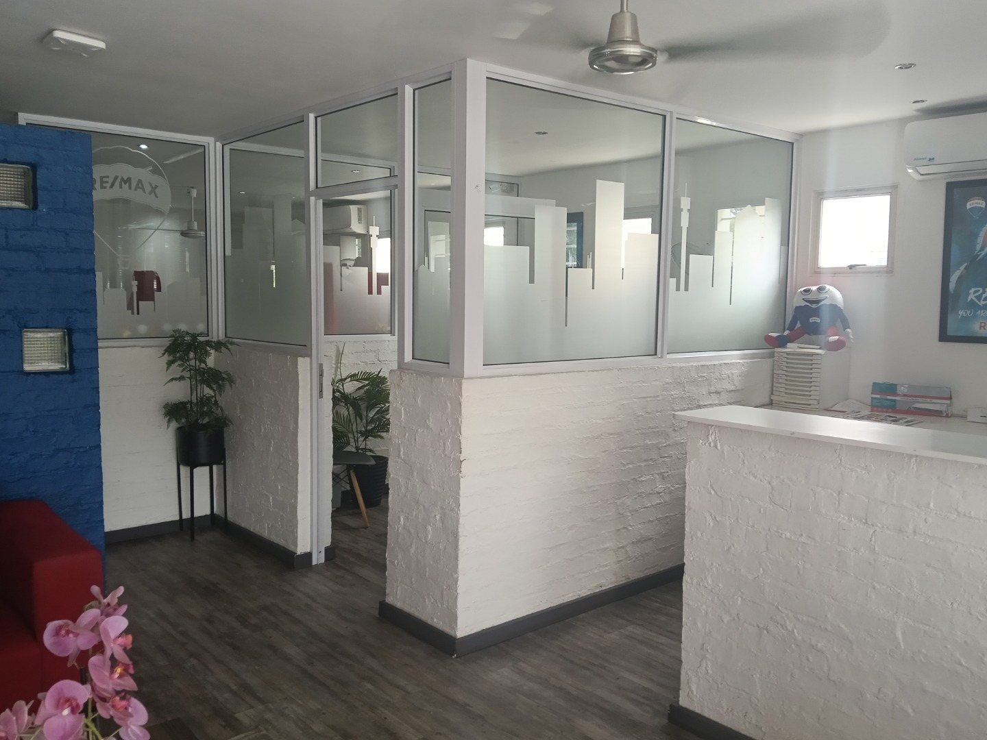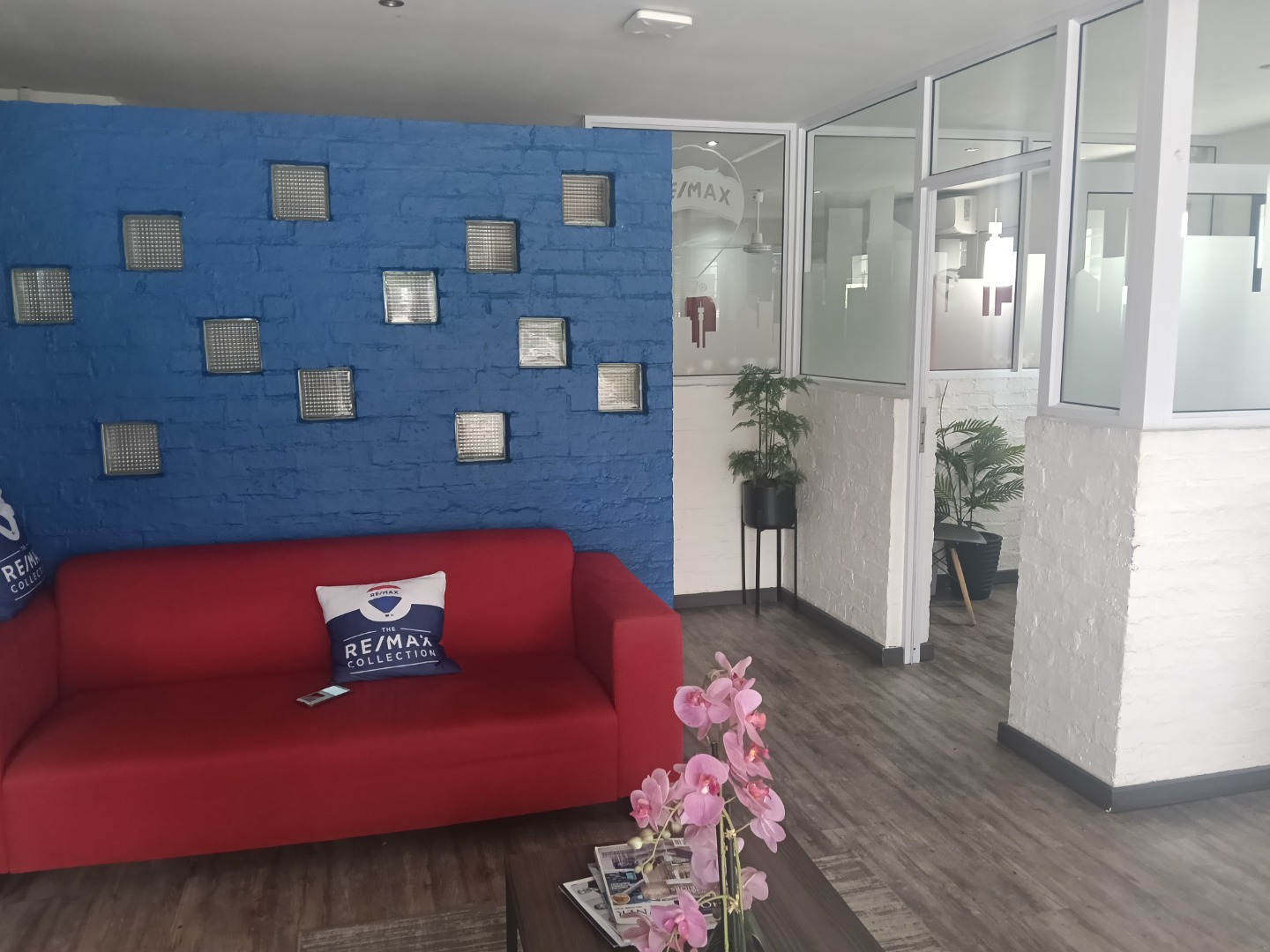 A large reception area provides a welcoming entry point for clients and visitors. The interior includes two spacious open-plan offices, as well as a private office for focused or executive use. A dedicated signing/meeting room and a small boardroom add further functionality for client meetings and presentations.