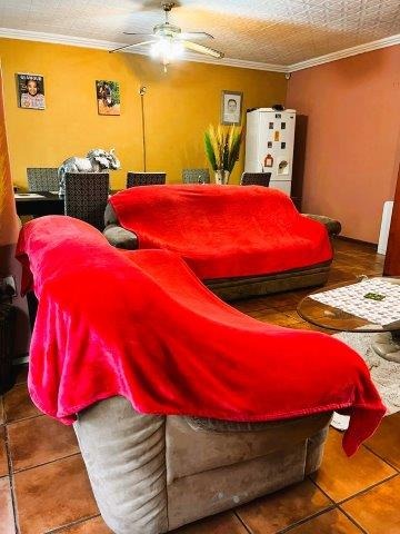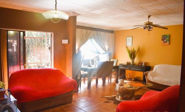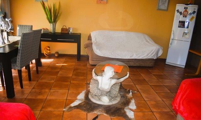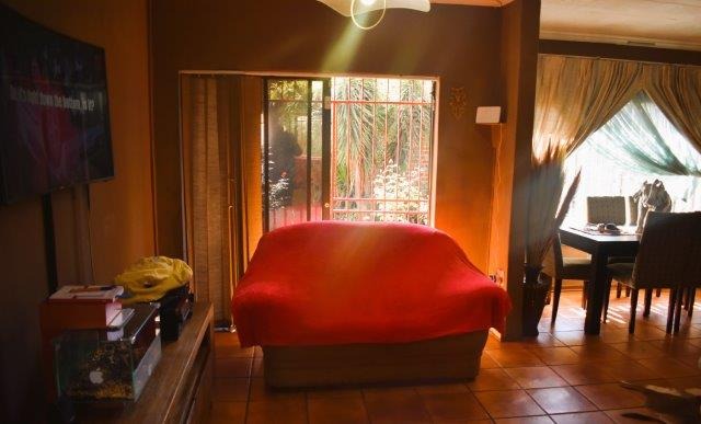 This inviting residential property offers comfortable complex living in the suburban area of Hazeldene, Germiston, South Africa. Designed for practical family life, the home features an open-plan layout that seamlessly connects the living and dining areas, creating a spacious and adaptable environment. The interior is characterized by durable tiled flooring throughout, providing easy maintenance, complemented by warm, earthy-toned walls that contribute to a welcoming atmosphere. Ample natural light streams in through large windows and glass doors, enhancing the bright and airy feel of the main living spaces, which also benefit from functional ceiling fans for added comfort. The well-appointed kitchen, central to the home's design, serves the dining area efficiently. The property comprises two comfortable bedrooms and two bathrooms, offering essential accommodation for residents. While the decor presents an opportunity for personalization, the fundamental layout provides a solid foundation for a modern refresh. Externally, the property includes a single garage with a robust roller shutter door, providing secure parking and additional storage. A paved courtyard or driveway offers further practical space. Although the database indicates no garden, the property features an established garden area with mature trees and a charming stepping stone path, offering a pleasant outdoor retreat with a garden bench for relaxation. Security bars are visible on windows and glass doors, contributing to peace of mind. Situated within a complex in Hazeldene, Germiston, this home provides a convenient suburban lifestyle. It represents an excellent opportunity for those seeking a functional and adaptable residence in a well-established community. Key Features: * 2 Bedrooms * 2 Bathrooms * 1 Garage * Open-plan living and dining areas * Durable tiled flooring * Established garden area with mature trees * Paved courtyard/driveway * Natural light throughout * Located in a suburban complex