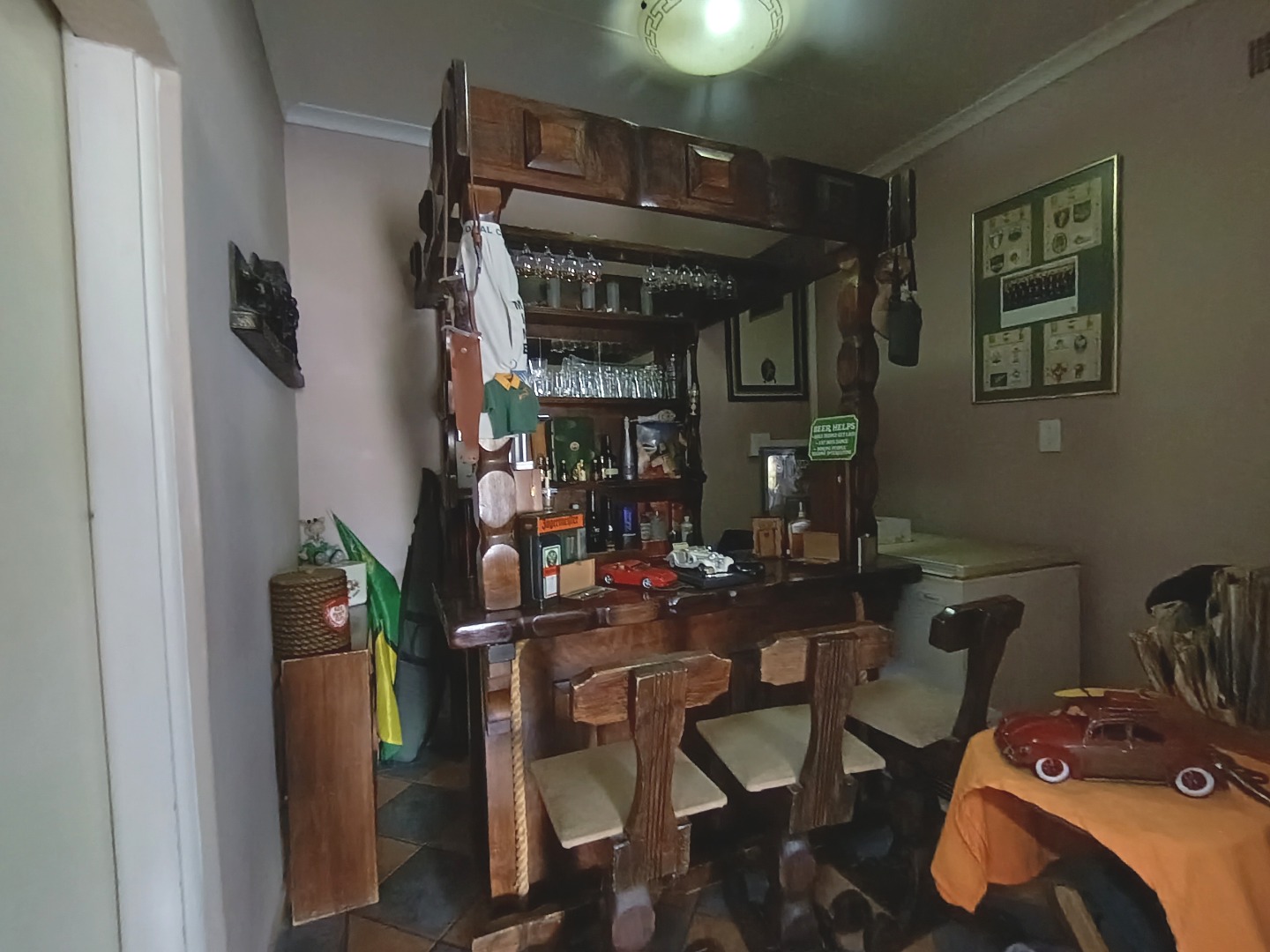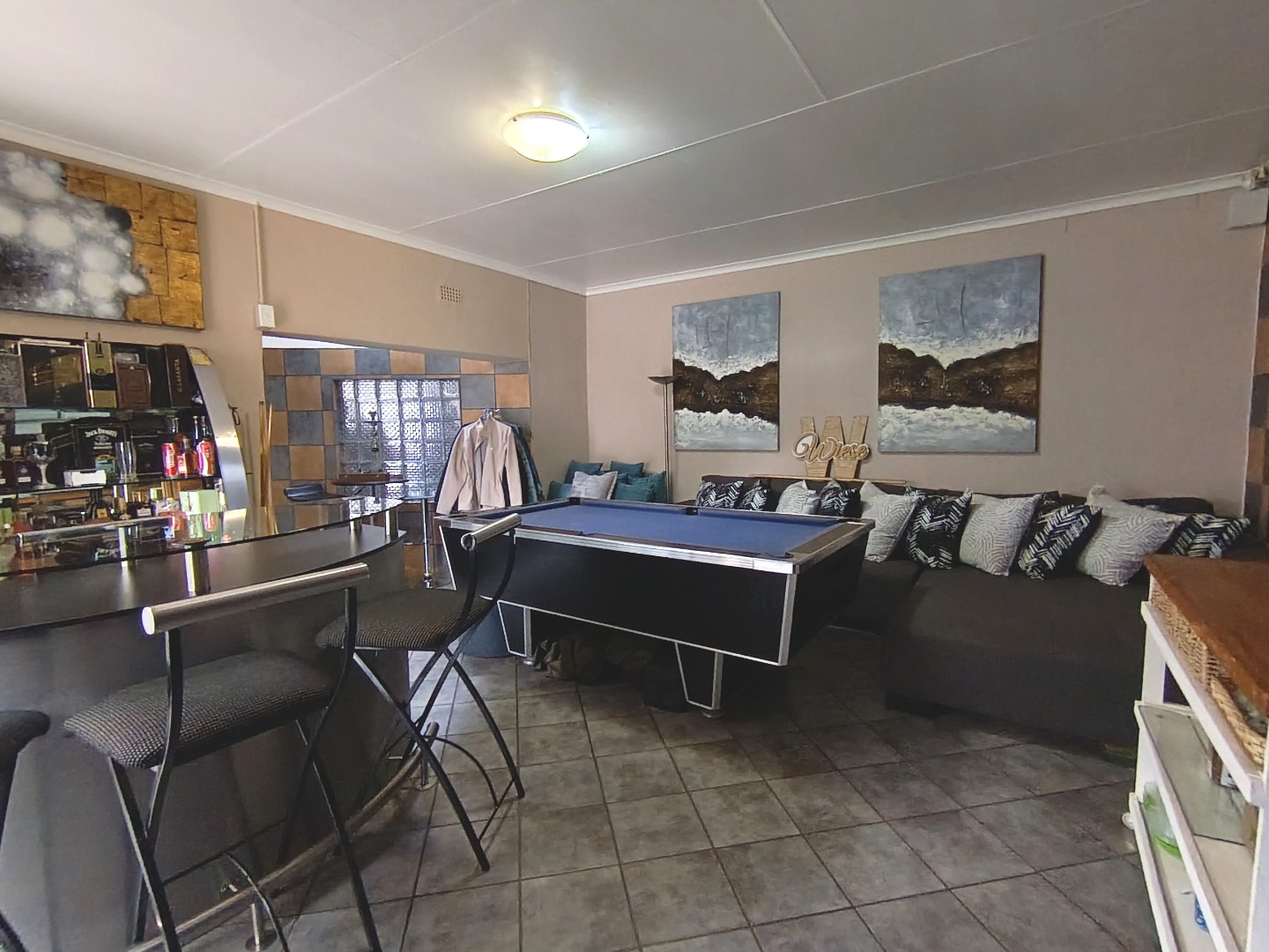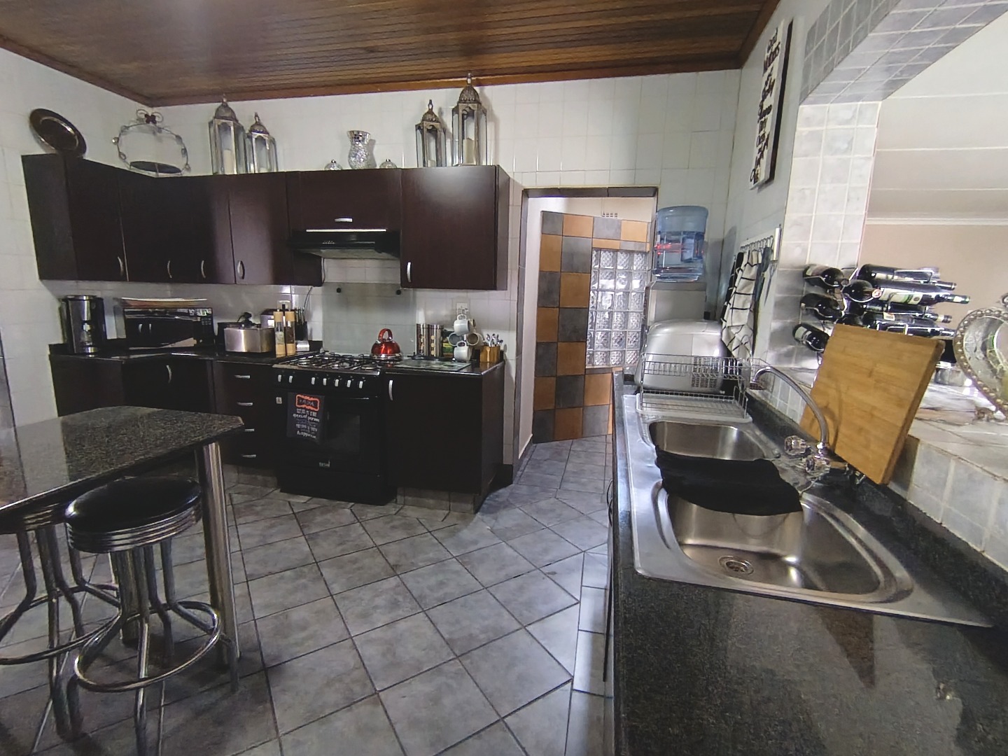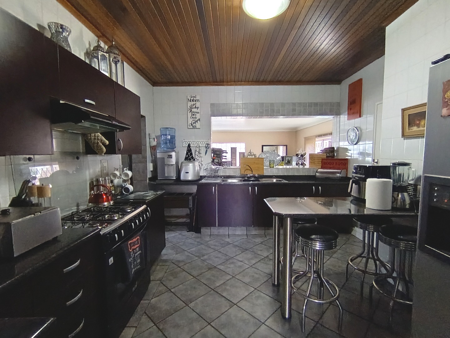 Discover this charming residential property in Hazeldene, Germiston, offering comfort and security. The home features an attractive stone-clad exterior, a lush, well-maintained garden with diverse planting, and paved pathways. Visible security bars on windows and a main entrance security gate provide peace of mind. Inside, a functional and spacious kitchen awaits, boasting dark cabinetry, granite-look countertops, a gas range, double sink, and a practical breakfast bar with a pantry. An open pass-through connects to an adjacent room, enhancing flow. The property includes two comfortable lounges, a dedicated dining room, and a family TV room, offering ample space for relaxation and entertainment. Accommodation comprises three generously sized bedrooms, one with an en-suite bathroom, totaling three bathrooms. Each bedroom provides built-in storage and natural light, creating inviting personal retreats. Set on a substantial 991 sqm erf, the outdoor area is designed for enjoyment. A refreshing swimming pool, lapa, and built-in braai are perfect for entertaining. The well-kept garden, two garages, and four additional parking spaces accommodate multiple vehicles. Pets are allowed, making this an ideal family home. Security is further enhanced by an access gate, and a battery inverter provides essential power backup. Visible solar panels on the roof suggest potential for energy efficiency. Located in the established suburb of Hazeldene, Germiston, this property offers convenient access to local amenities and transport routes, making it a desirable address in South Africa. Key Features: * 3 Bedrooms, 3 Bathrooms (1 En-suite) * Spacious Kitchen with Gas Range & Pantry * 2 Lounges, Dining Room, Family TV Room * Swimming Pool, Lapa & Built-in Braai * Lush Garden on 991 sqm Erf * 2 Garages, 4 Parking Spaces * Battery Inverter & Visible Solar Panels * Enhanced Security Features * Pets Allowed