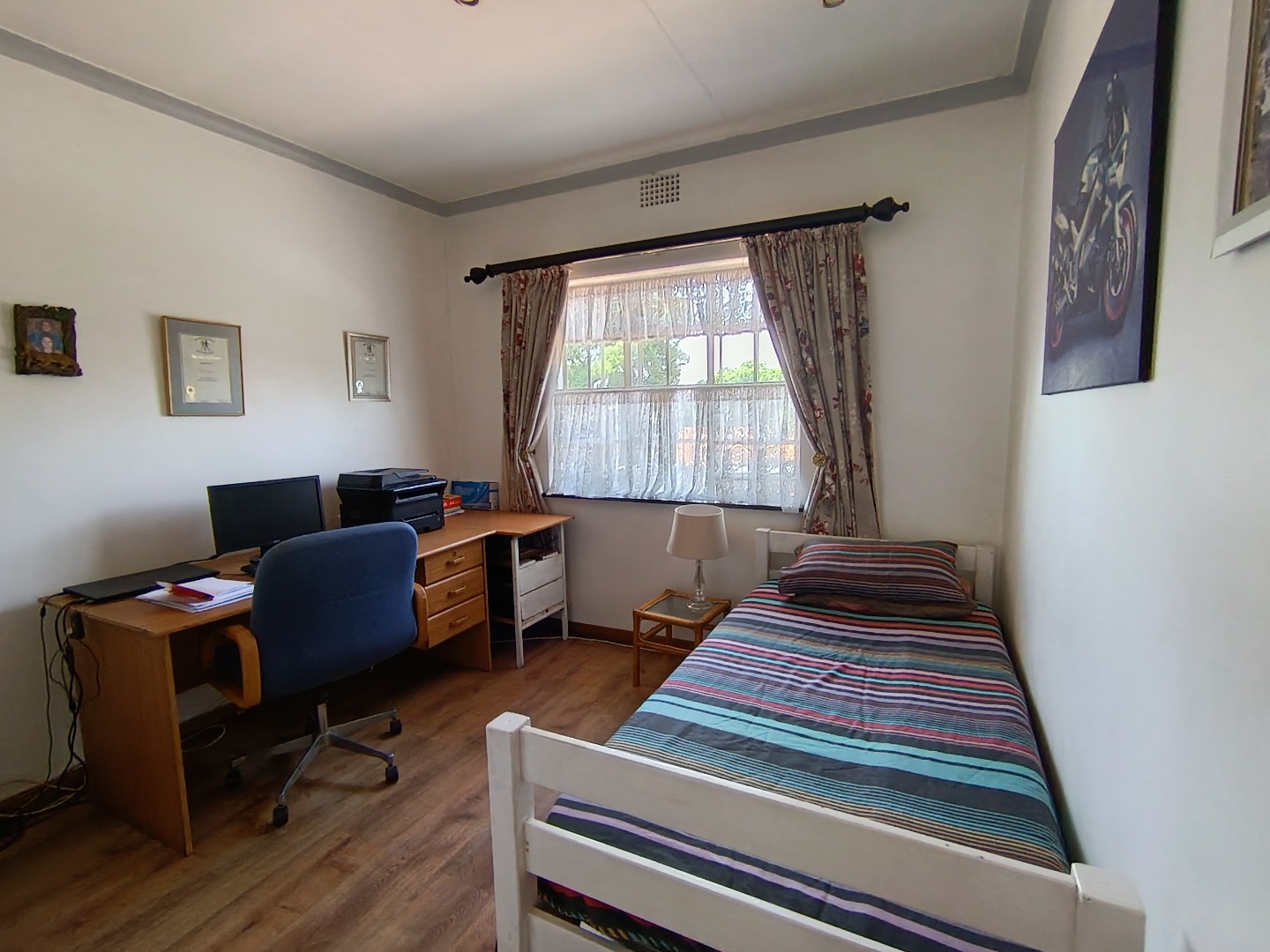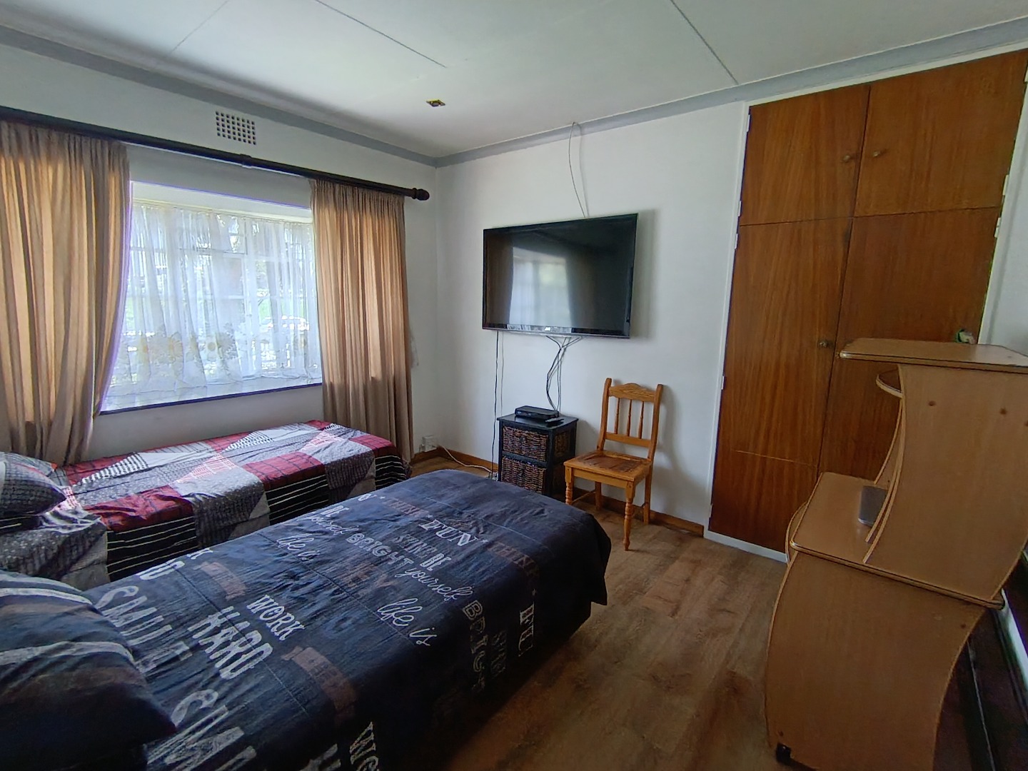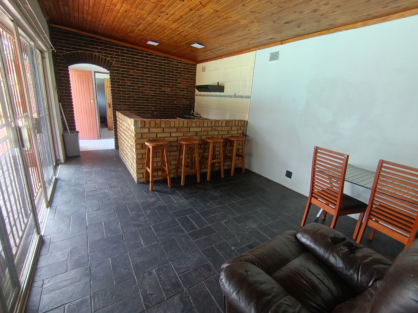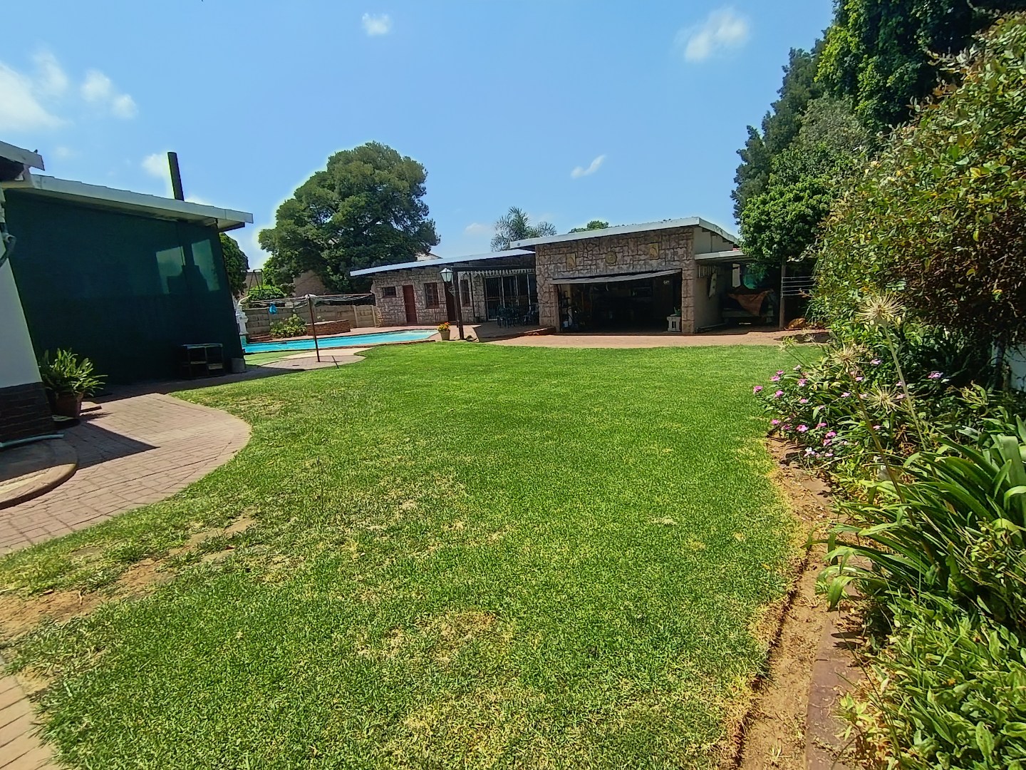This charming Tudor-style residence, nestled on a generous 1254 sqm erf in Hazeldene, Germiston, offers an exceptional family living experience. The property immediately impresses with its distinctive architecture, well-maintained exterior, and expansive, manicured garden. A large brick-paved driveway provides ample secure parking, leading to a double garage and an additional covered carport, ensuring convenience for multiple vehicles. The secure entrance gate and fencing enhance privacy and peace of mind. Step inside to discover an inviting entrance hall that flows into the spacious living areas. The home features a comfortable lounge and a dedicated family/TV room, providing versatile spaces for relaxation and entertainment. Unique wooden plank ceilings add character, while the prominent built-in bar and a cozy fireplace create an ideal setting for gatherings. The practical tiled flooring throughout ensures easy maintenance. The residence boasts four well-proportioned bedrooms, offering comfortable accommodation for the entire family. Complementing these are three bathrooms, including a private ensuite for added convenience and luxury. A functional kitchen is also present, ready to cater to your culinary needs. Outdoor living is a delight with the expansive garden, perfect for children and pets, which are allowed on the property. The highlight is undoubtedly the inviting swimming pool, providing a refreshing escape during warmer months. An added benefit is the presence of a flatlet, offering potential for extended family living, guest accommodation, or rental income. A dedicated laundry area further enhances the home's practicality. Located in the established suburb of Hazeldene, Germiston, this property combines classic charm with practical features for a comfortable lifestyle. Its secure perimeter, including an access gate and security gate, ensures a safe environment. Key Features: * 4 Bedrooms, 3 Bathrooms (1 Ensuite) * Spacious Lounge & Family/TV Room * Distinctive Tudor-Style Architecture * Built-in Bar & Fireplace * Swimming Pool & Large Garden * Double Garage & Carport (4 Parkings) * Separate Flatlet * Laundry Room * Pet-Friendly & Secure Access