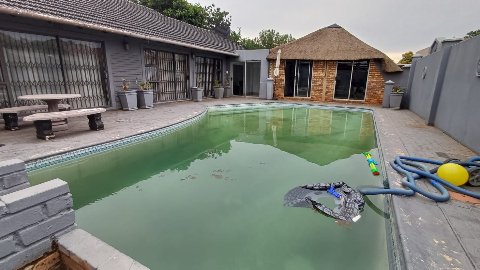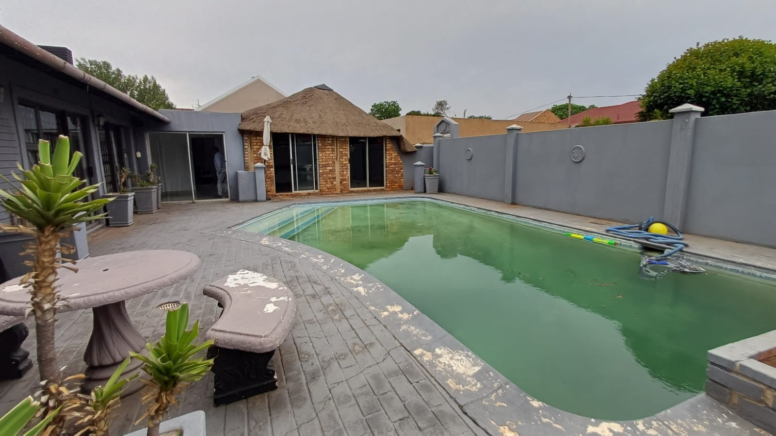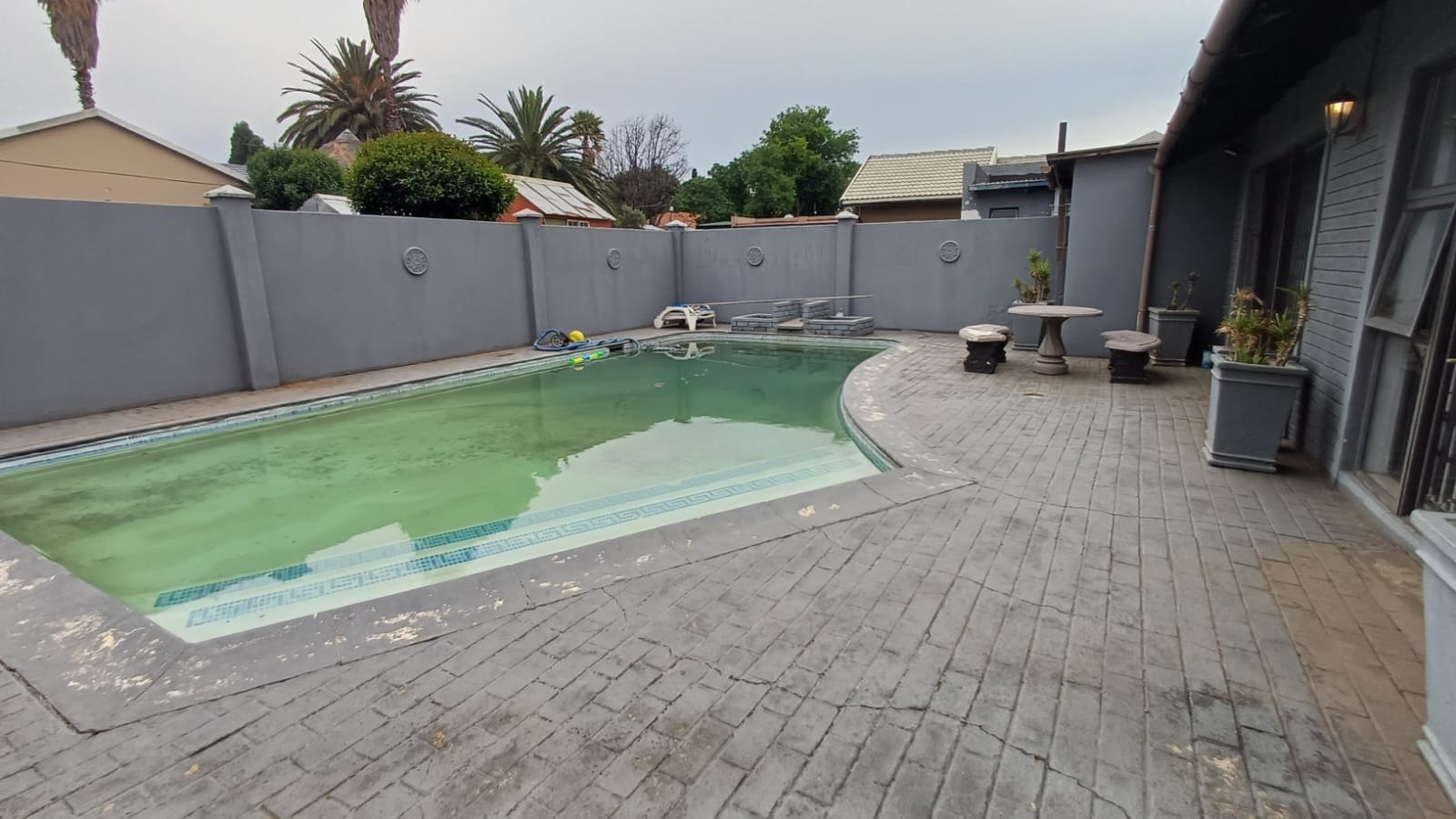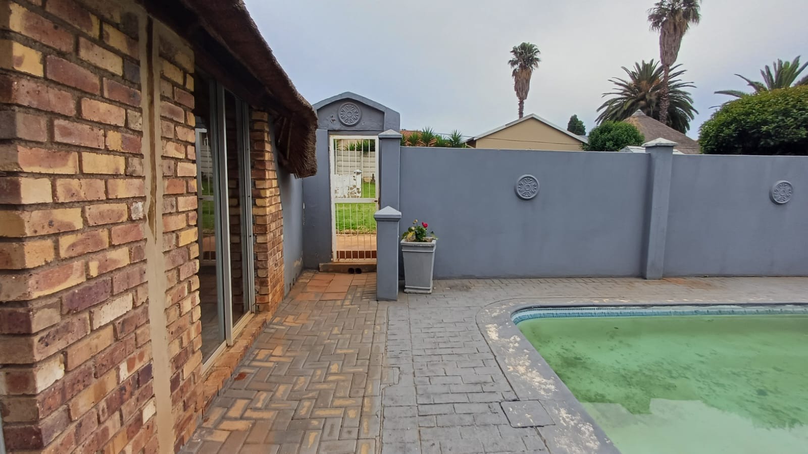 Externally, the property excels with a private swimming pool, perfect for leisure and recreation, set within a well-maintained garden. A lapa provides an ideal setting for outdoor entertaining. Vehicle accommodation includes a single garage and two additional parking spaces, complemented by a paved driveway. Security is comprehensively addressed with a totally walled perimeter with steel fence, burglar bars, and security gates, ensuring peace of mind for residents. Pets are permitted, adding to the home's family-friendly appeal.