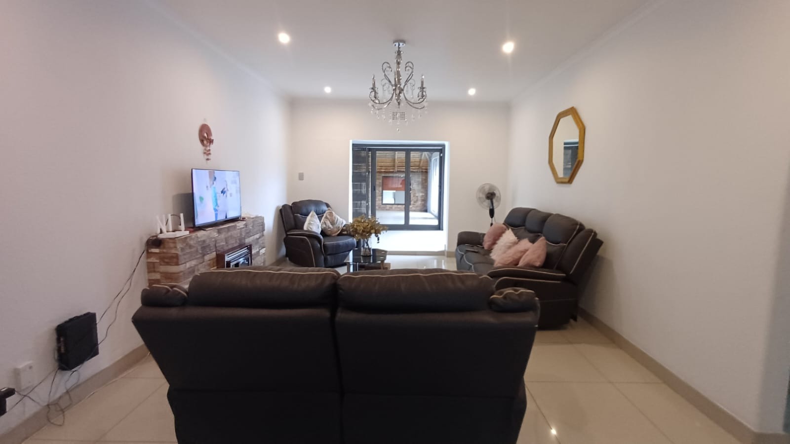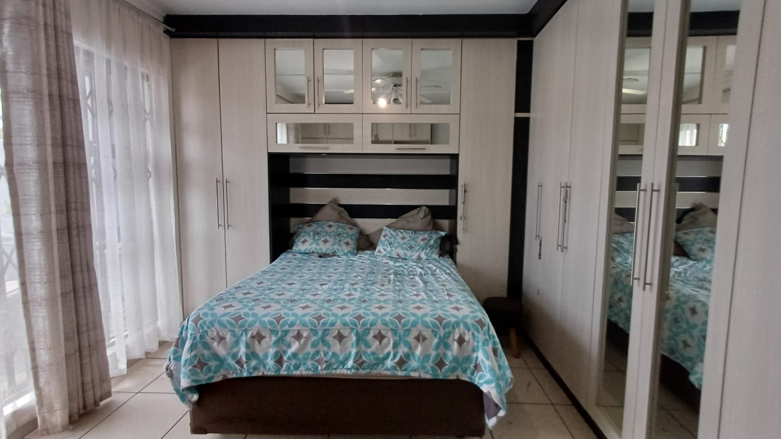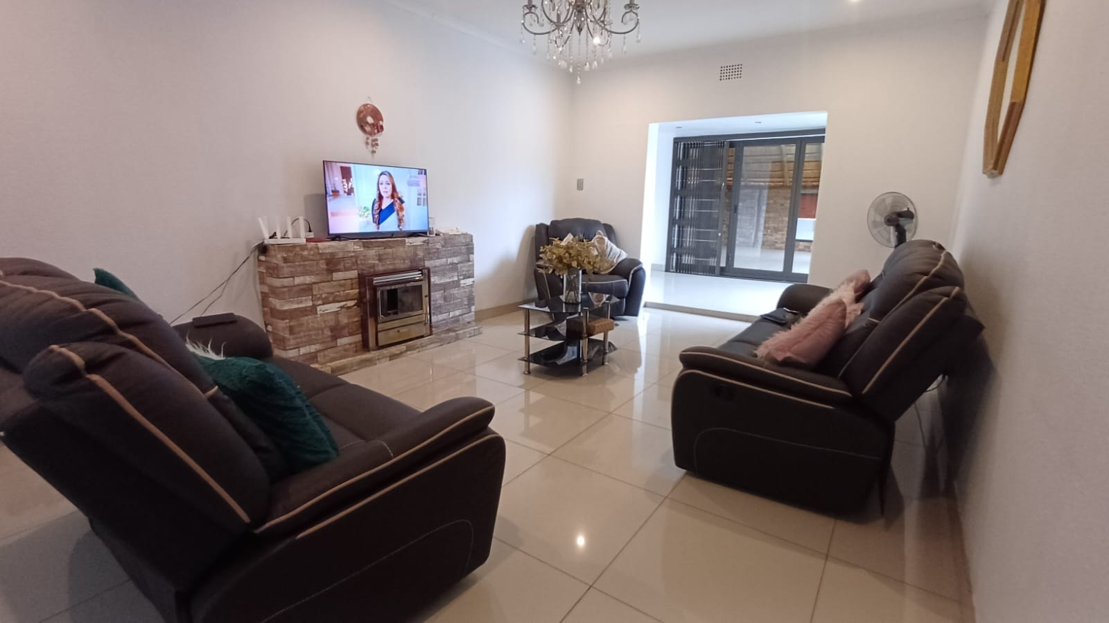 Externally, the property excels with a private swimming pool, perfect for leisure and recreation, set within a well-maintained garden. A lapa provides an ideal setting for outdoor entertaining. Vehicle accommodation includes a single garage and two additional parking spaces, complemented by a paved driveway. Security is comprehensively addressed with a totally walled perimeter with steel fence, burglar bars, and security gates, ensuring peace of mind for residents. Pets are permitted, adding to the home's family-friendly appeal.