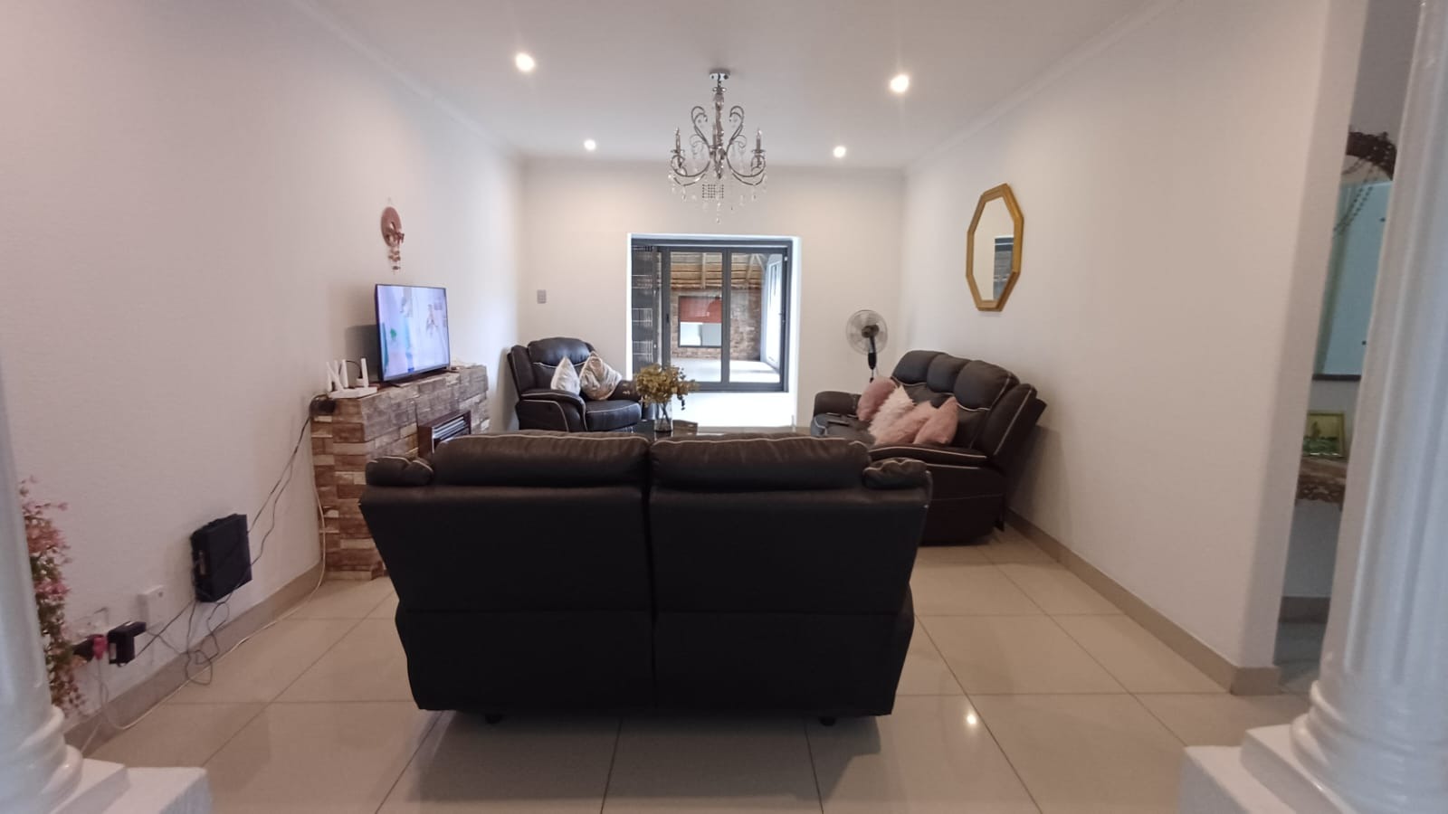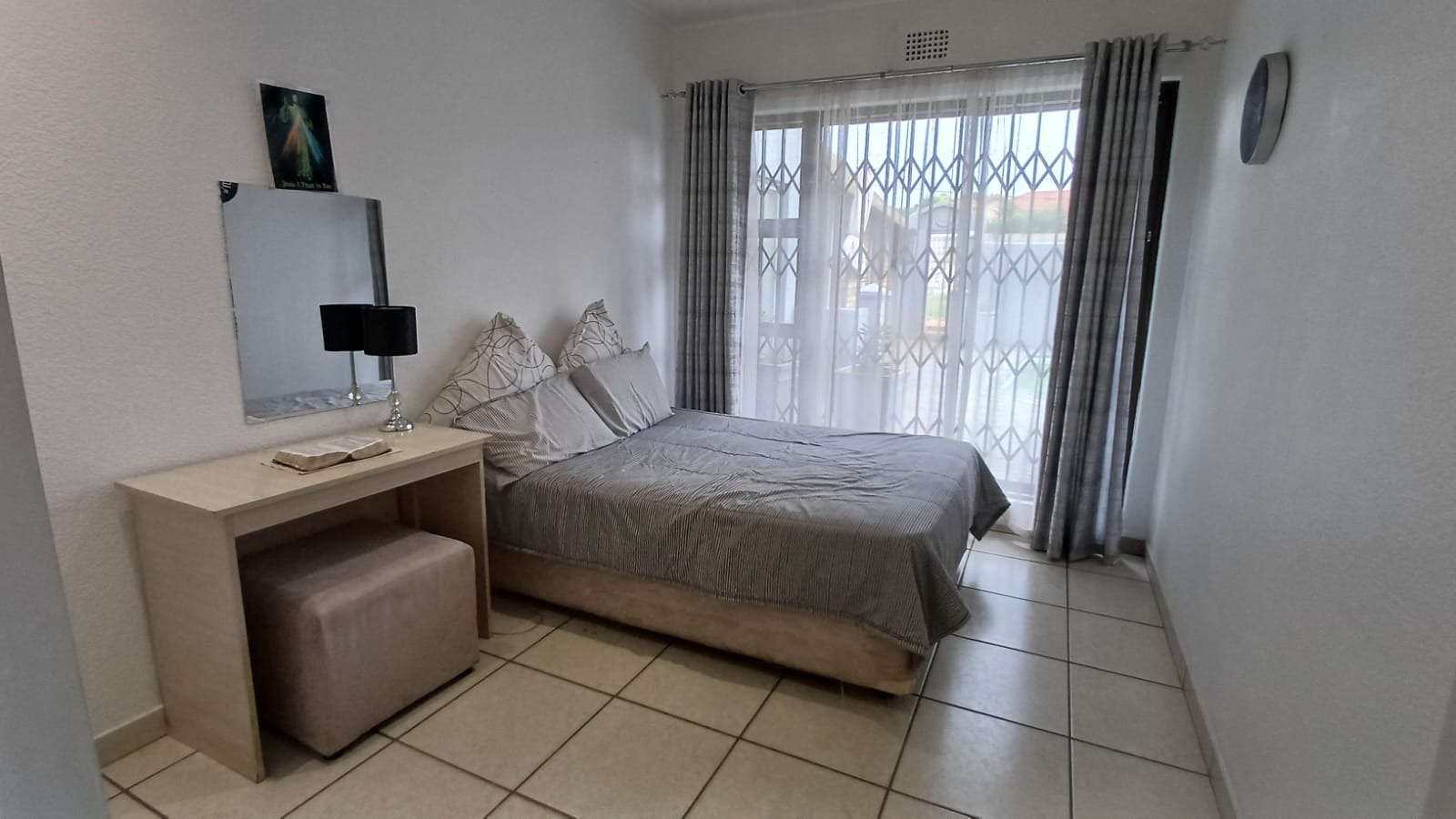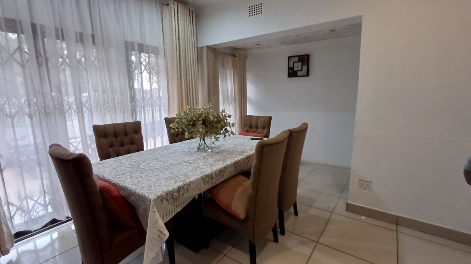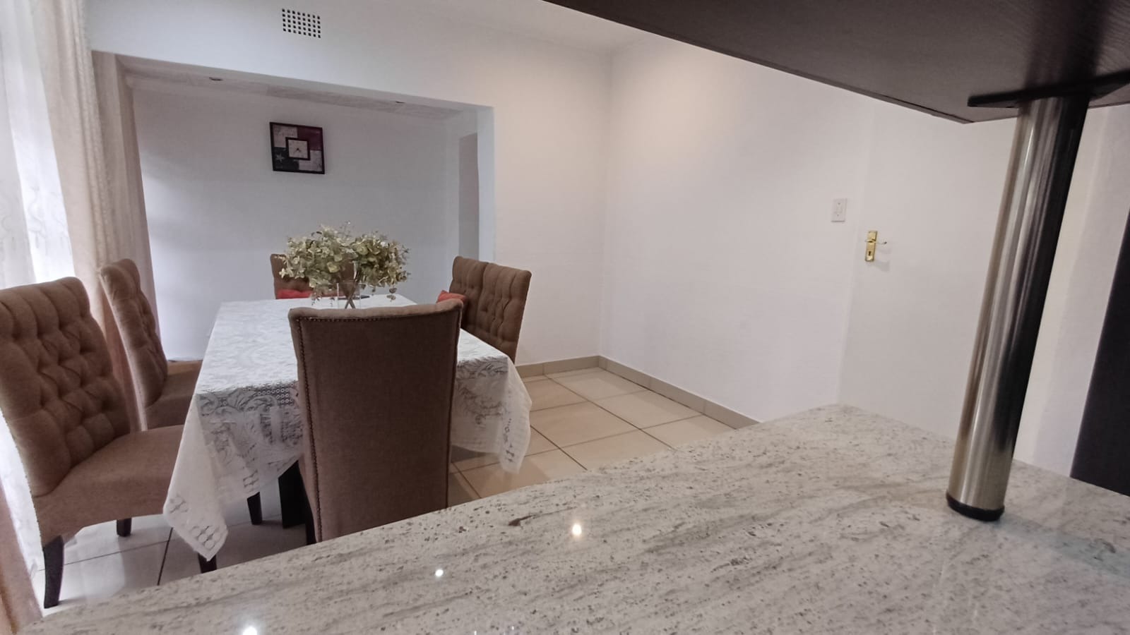 Externally, the property excels with a private swimming pool, perfect for leisure and recreation, set within a well-maintained garden. A lapa provides an ideal setting for outdoor entertaining. Vehicle accommodation includes a single garage and two additional parking spaces, complemented by a paved driveway. Security is comprehensively addressed with a totally walled perimeter with steel fence, burglar bars, and security gates, ensuring peace of mind for residents. Pets are permitted, adding to the home's family-friendly appeal.
