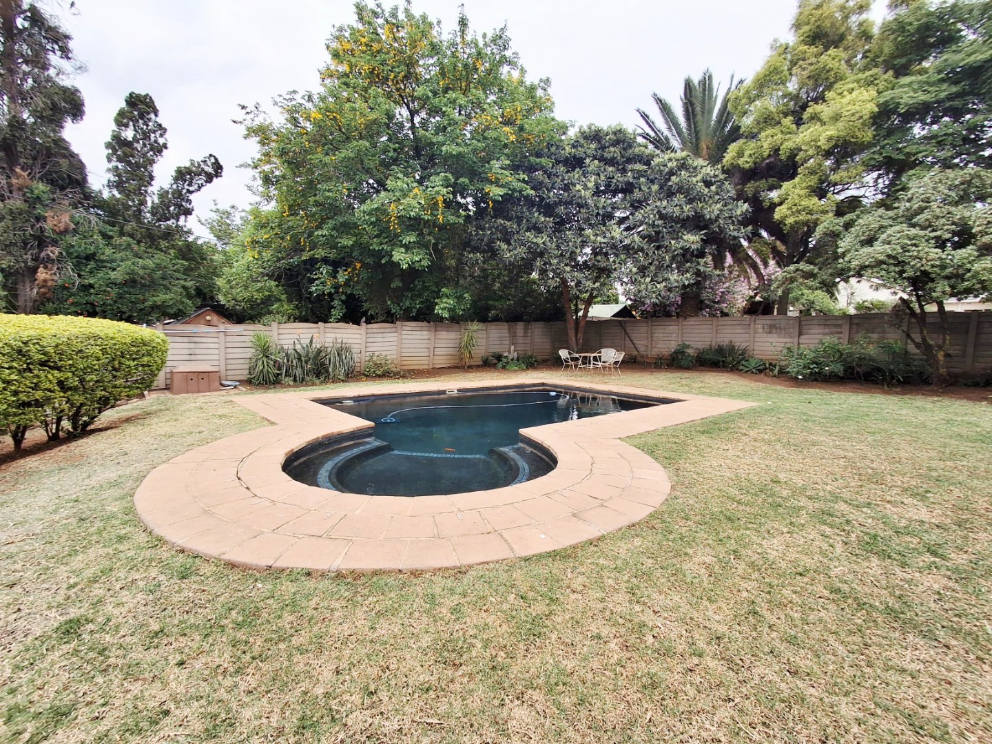 Step outside to a private oasis featuring a refreshing swimming pool, perfect for cooling off during warm South African days. The garden offers a pleasant outdoor space, complemented by a built-in braai for entertaining guests. Parking is generous, with a single garage and an additional four parking spaces available on the paved driveway. The property is pet-friendly, allowing your furry companions to enjoy the secure outdoor environment, which also includes outside toilets for added convenience.