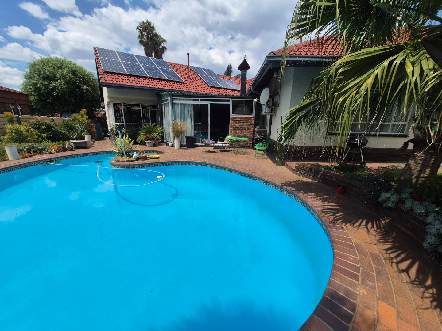 Nestled in a tranquil cul-de-sac within the suburban heart of Hazelpark, Germiston, this inviting four-bedroom residence offers comfortable family living on a generous 1101 sqm erf. The property presents a welcoming kerb appeal, setting the stage for a home designed for both relaxation and entertaining. The interior boasts an open-plan layout, seamlessly connecting the living spaces. A spacious lounge, a dedicated dining room, and a family/TV room provide ample areas for daily activities and gatherings. The well-appointed kitchen includes a convenient pantry, catering to all culinary needs. Additional interior features such as a cozy fireplace and practical storage solutions enhance the home's functionality and comfort. Accommodation comprises four well-proportioned bedrooms, ensuring private retreats for all family members. There are two bathrooms, with one being an en-suite, offering convenience and privacy. The thoughtful design ensures a comfortable and practical living environment. Step outside to discover a private oasis featuring a refreshing swimming pool, perfect for warm South African days. The established garden provides a serene backdrop, complemented by paving and a built-in braai area for outdoor entertaining. Parking is abundant with two garages and an additional eight open parking spaces, accommodating multiple vehicles with ease. Pets are welcome, making this an ideal home for animal lovers. Security is well-addressed with an alarm system, access gate, and robust fencing, including a totally walled perimeter and burglar bars, ensuring peace of mind. The property also benefits from a separate flatlet, offering versatile options for extended family, guests, or potential rental income. Hazelpark is a well-established suburban area in Germiston, South Africa, known for its residential charm and convenient access to local amenities and transport routes. Key Features: * 4 Bedrooms, 2 Bathrooms (1 En-suite) * Open Plan Lounge, Dining Room, Family/TV Room * Kitchen with Pantry * Swimming Pool & Garden * Built-in Braai & Paving * 2 Garages & 8 Parking Spaces * Alarm System, Access Gate, Walled, Burglar Bars * Separate Flatlet * Fireplace & Storage