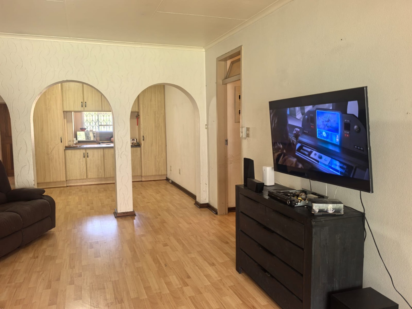 The home features three bedrooms and two bathrooms, including a main en-suite. The kitchen flows into the lounge and dining area, creating a functional open-plan living space.