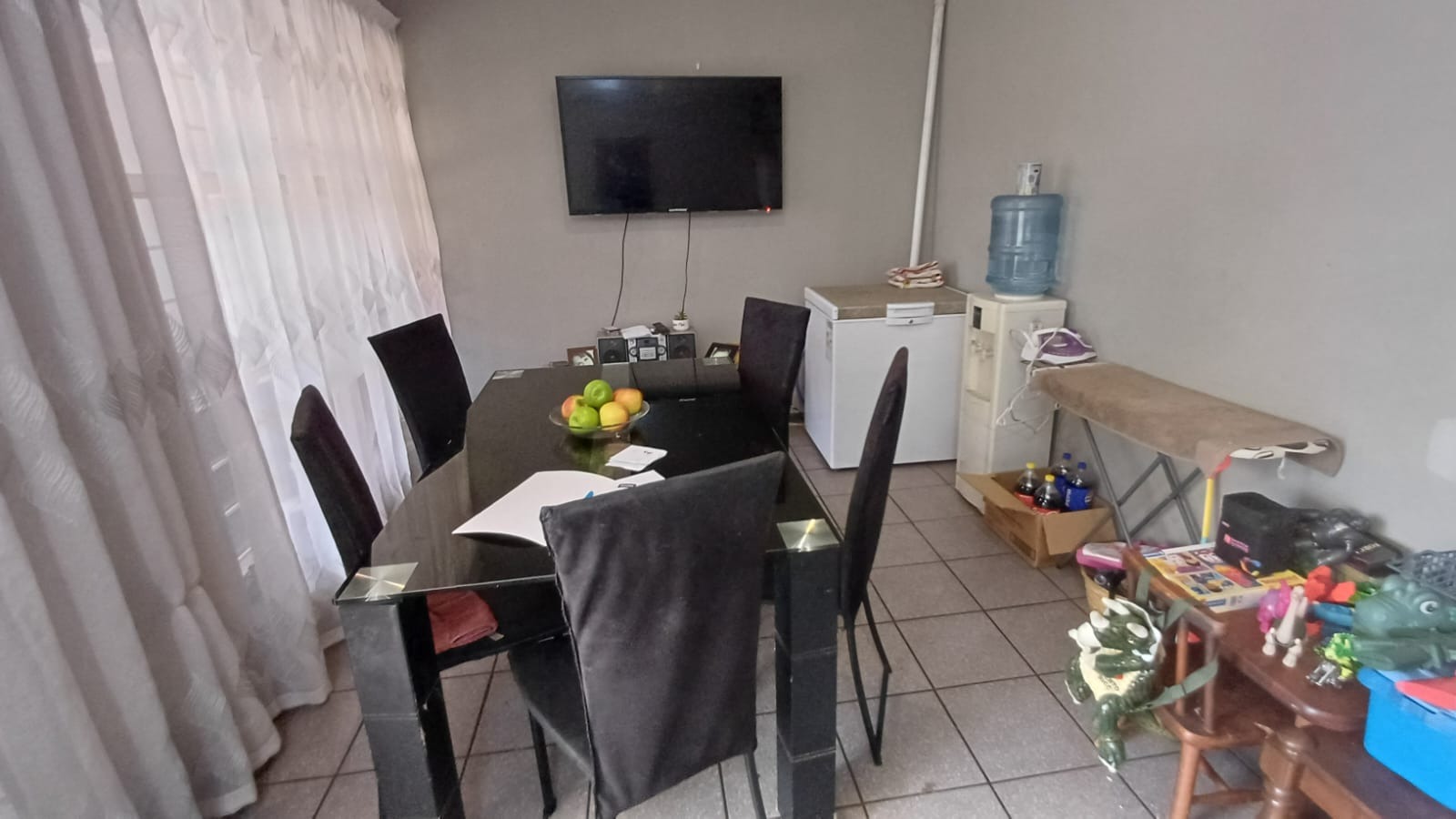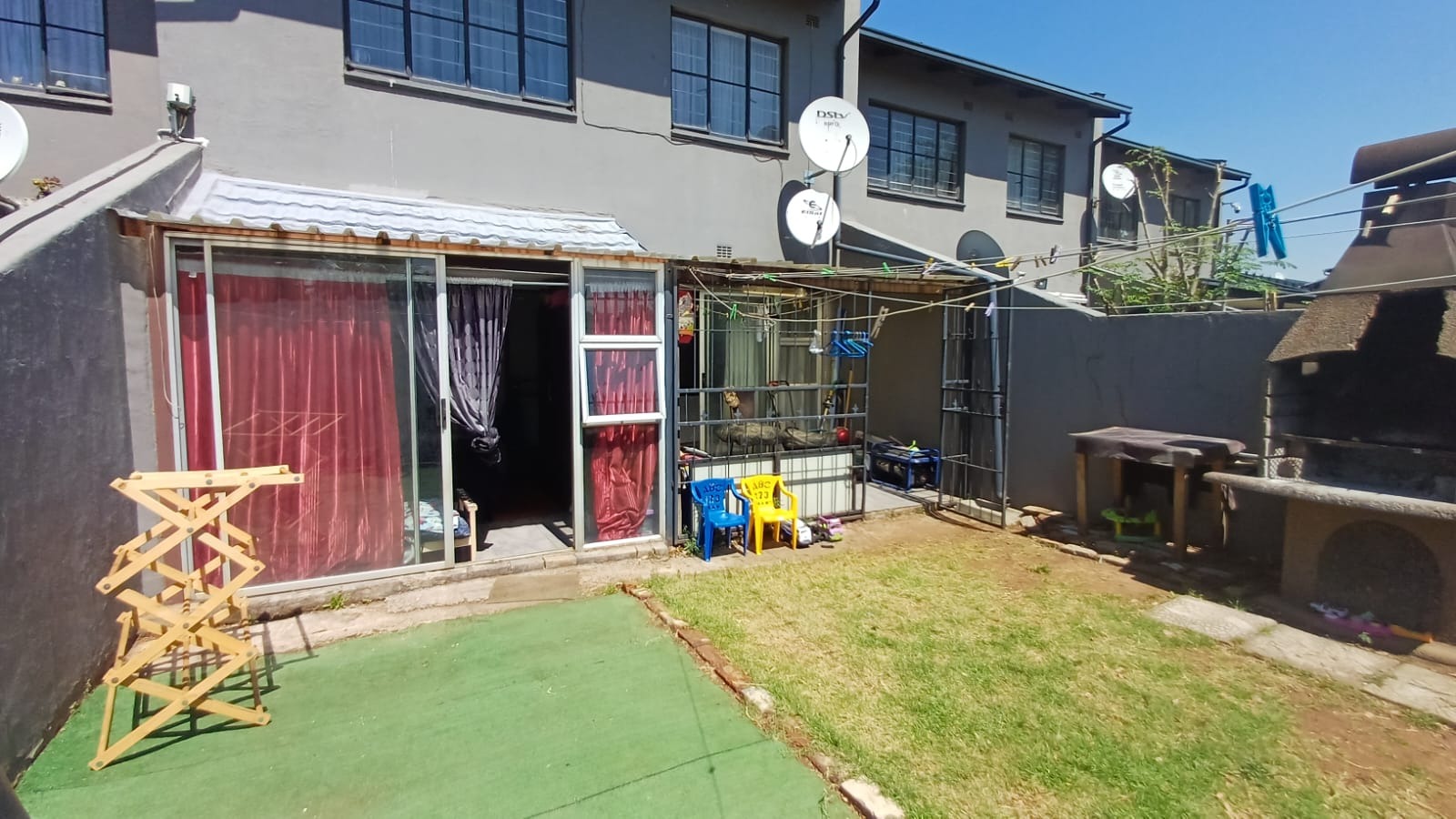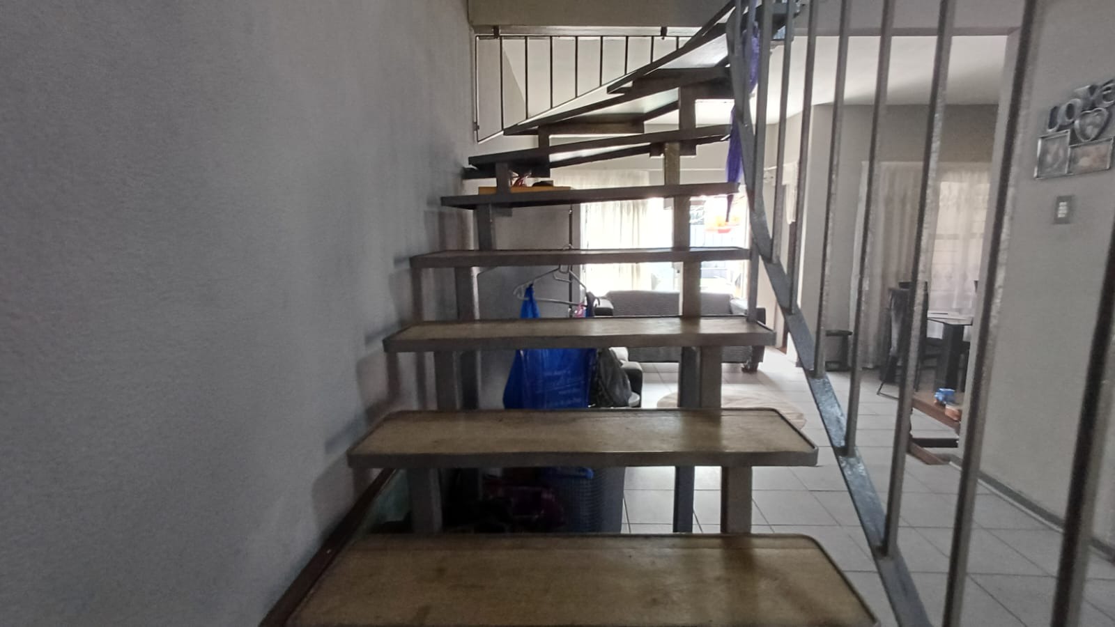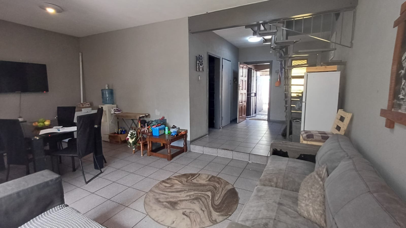 Discover this inviting 3-bedroom residence situated within a secure complex in Lambton Gardens, Germiston. The home offers a practical layout designed for comfortable living. Upon entering, you'll find a welcoming lounge area, a dedicated dining room, and an additional family TV room, providing versatile spaces for relaxation and entertainment. The functional kitchen is equipped with a gas hob and integrated oven, complemented by white cabinetry and ample storage solutions. While presenting a lived-in charm, its galley-style design ensures efficiency for daily meal preparation. A convenient guest toilet is also available on the ground floor.
