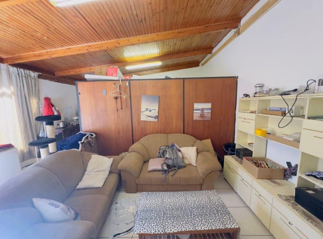 This property is situated on a large stand with the main house comprising of 3 spacious bedrooms with built-in cupboards, 2 bathrooms (main en-suite), 2 guest toilets, lounge and dining room, a fully equipped kitchen, separate laundry room, family/TV room, office space/ study or additional entertainment room with a built-in bar.