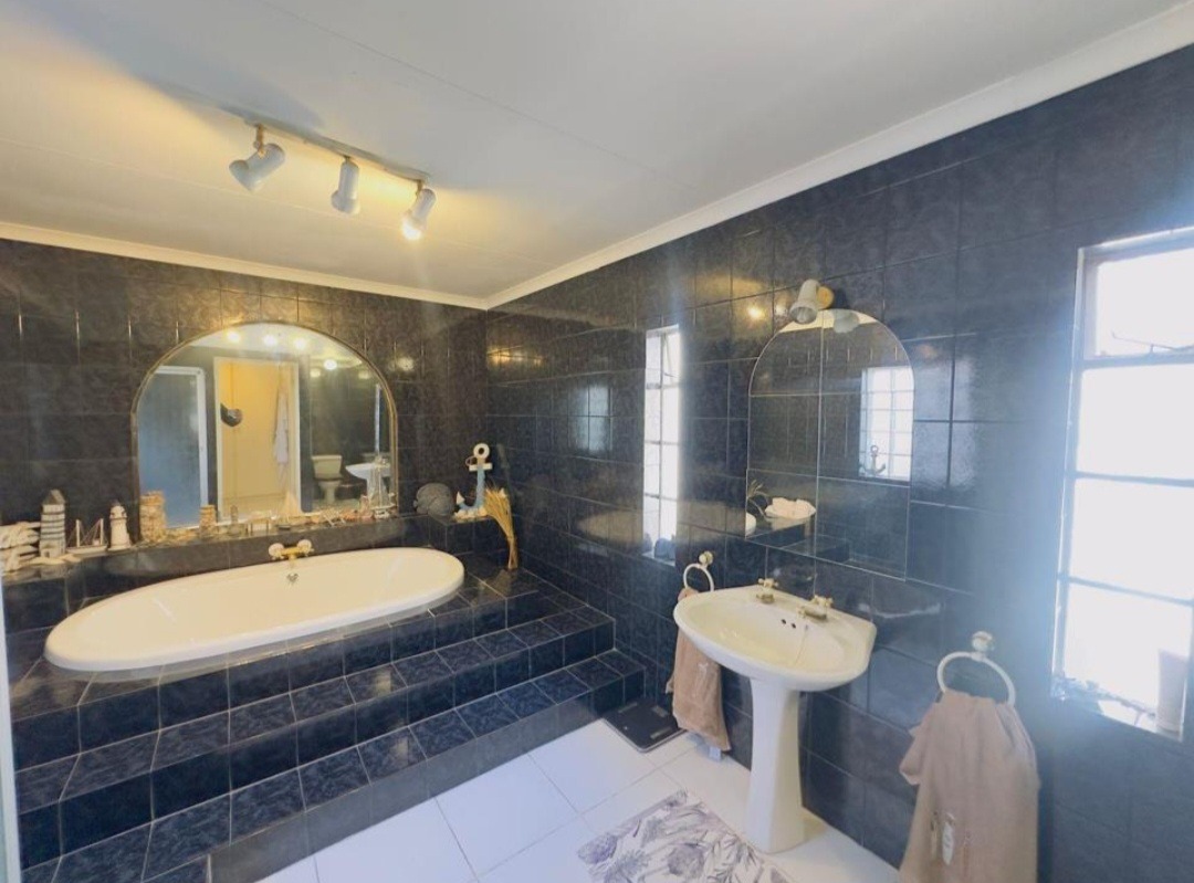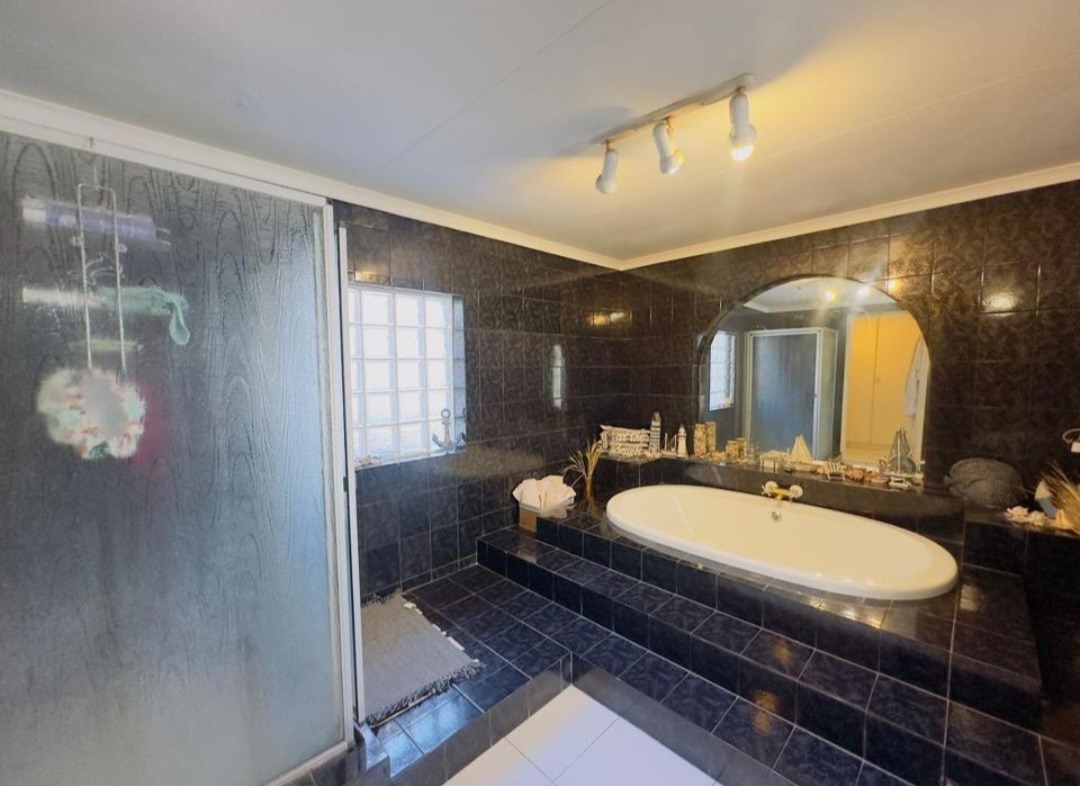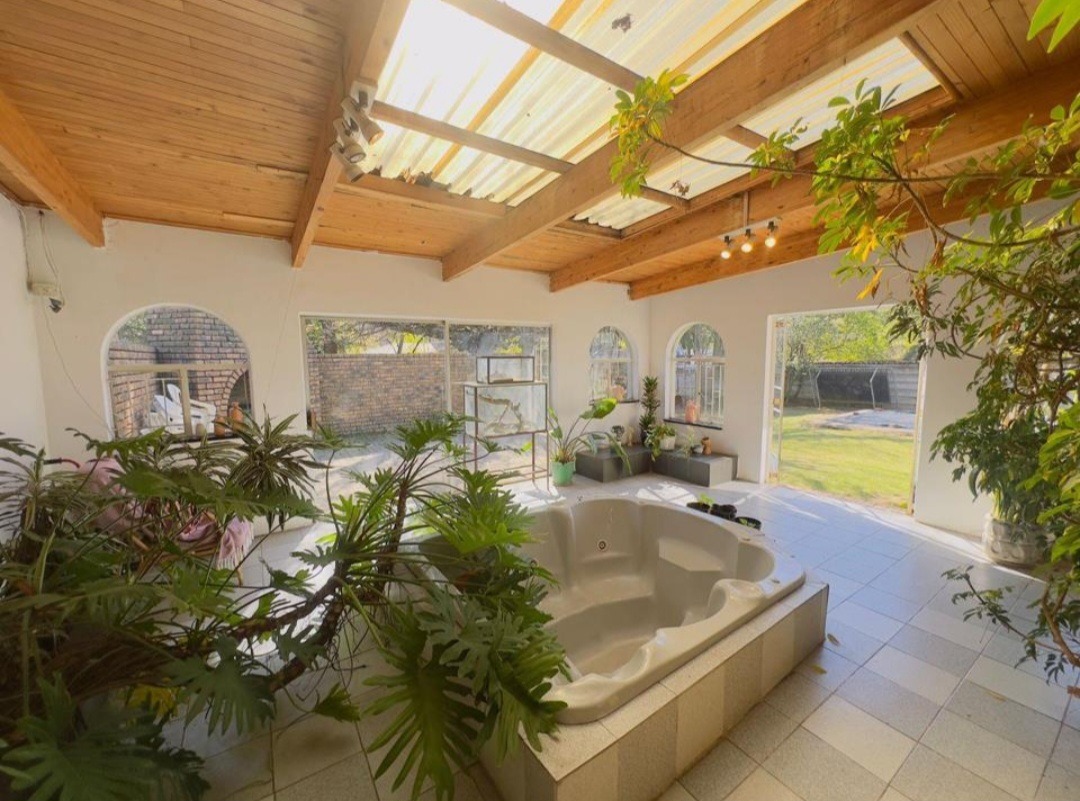 There is also a jacuzzi and a well sized garden with a sparkling swimming pool, outdoor braai area, 2 garages, 2 enclosed carports and ample extra parking. 2 Separate entrances to the property also makes it convenient.