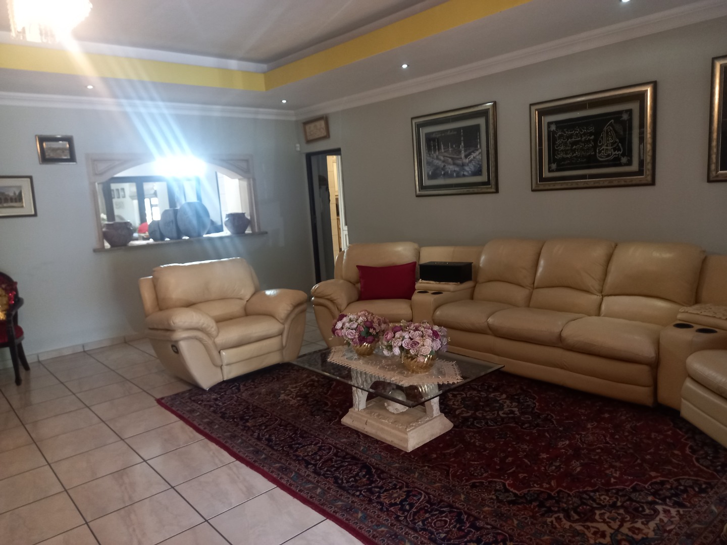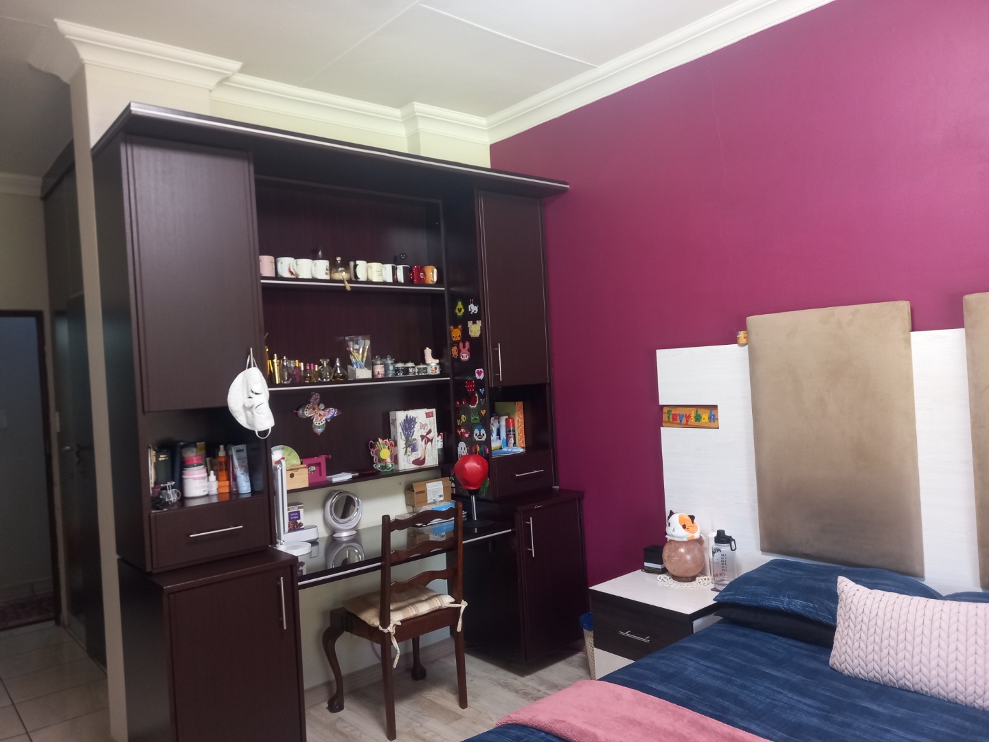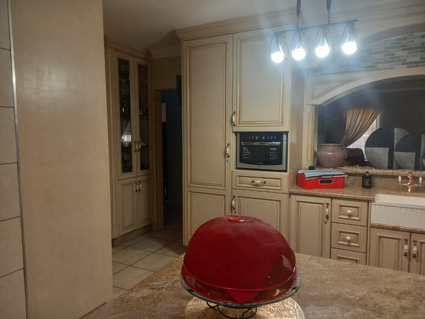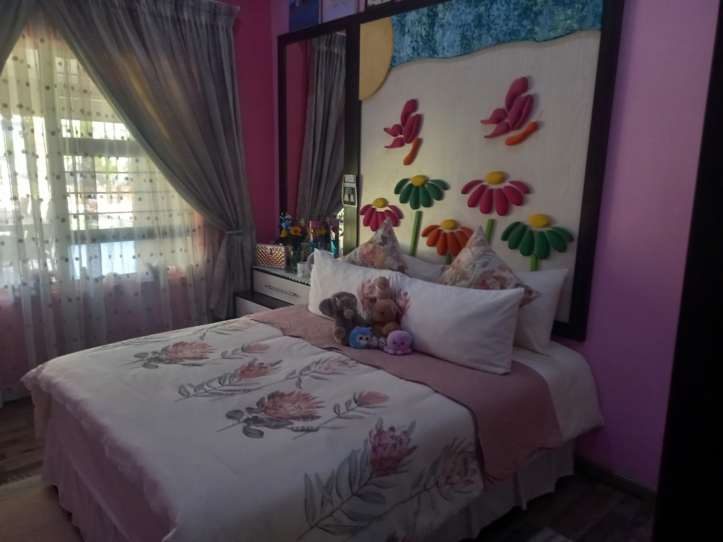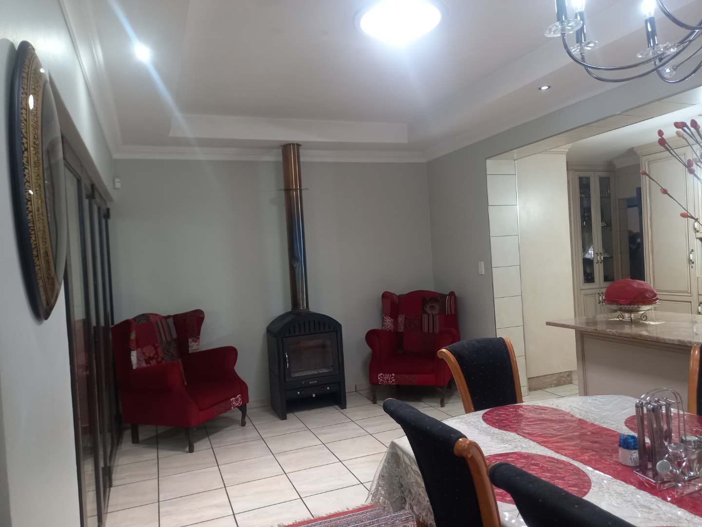 Discover this impressive 4-bedroom, 2-bathroom family home situated in the desirable suburban area of Lambton, Germiston, South Africa. Boasting a substantial 400 sqm under roof on a 2507 sqm erf, this property immediately captivates with its grand and secure entrance. Featuring prominent pillars, an arched entryway, and robust double wrought-iron security gates, the well-maintained exterior showcases an attractive stone facade and a beautifully landscaped front yard with green grass and blooming rose bushes. Inside, the home offers thoughtfully designed living spaces, including a dedicated dining room and a comfortable lounge, all benefiting from ample natural light. The four bedrooms provide comfort and practicality, equipped with extensive built-in storage solutions. Modern bed frames, air conditioning in key areas, and easy-to-maintain tiled flooring enhance the interior's appeal. The outdoor area is an entertainer's delight, featuring a refreshing swimming pool set within a well-maintained garden, ideal for leisure. Ample parking includes two garages and two additional spaces, complemented by paved pathways. Security is paramount, with an alarm system, electric fencing, burglar bars, and an access gate providing comprehensive peace of mind. A valuable borehole ensures water resilience for this exceptional property.