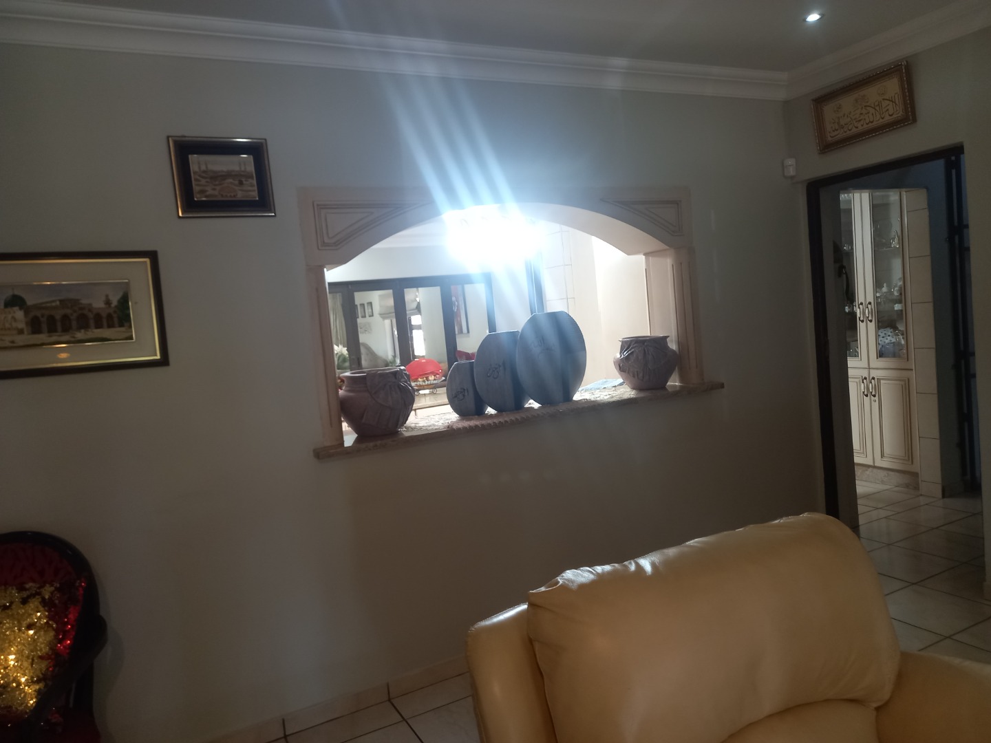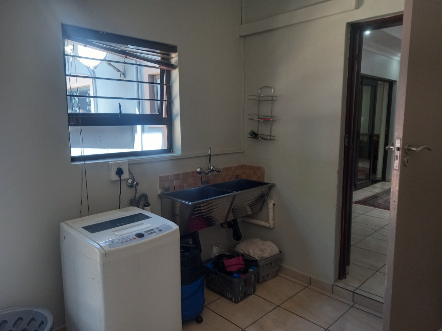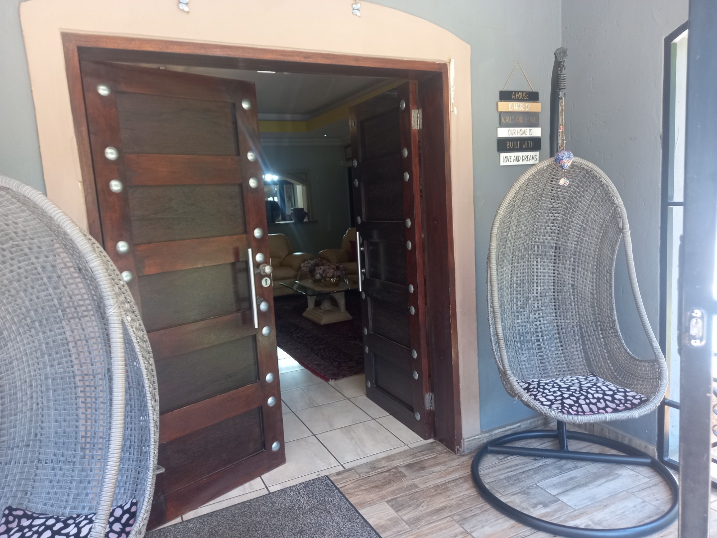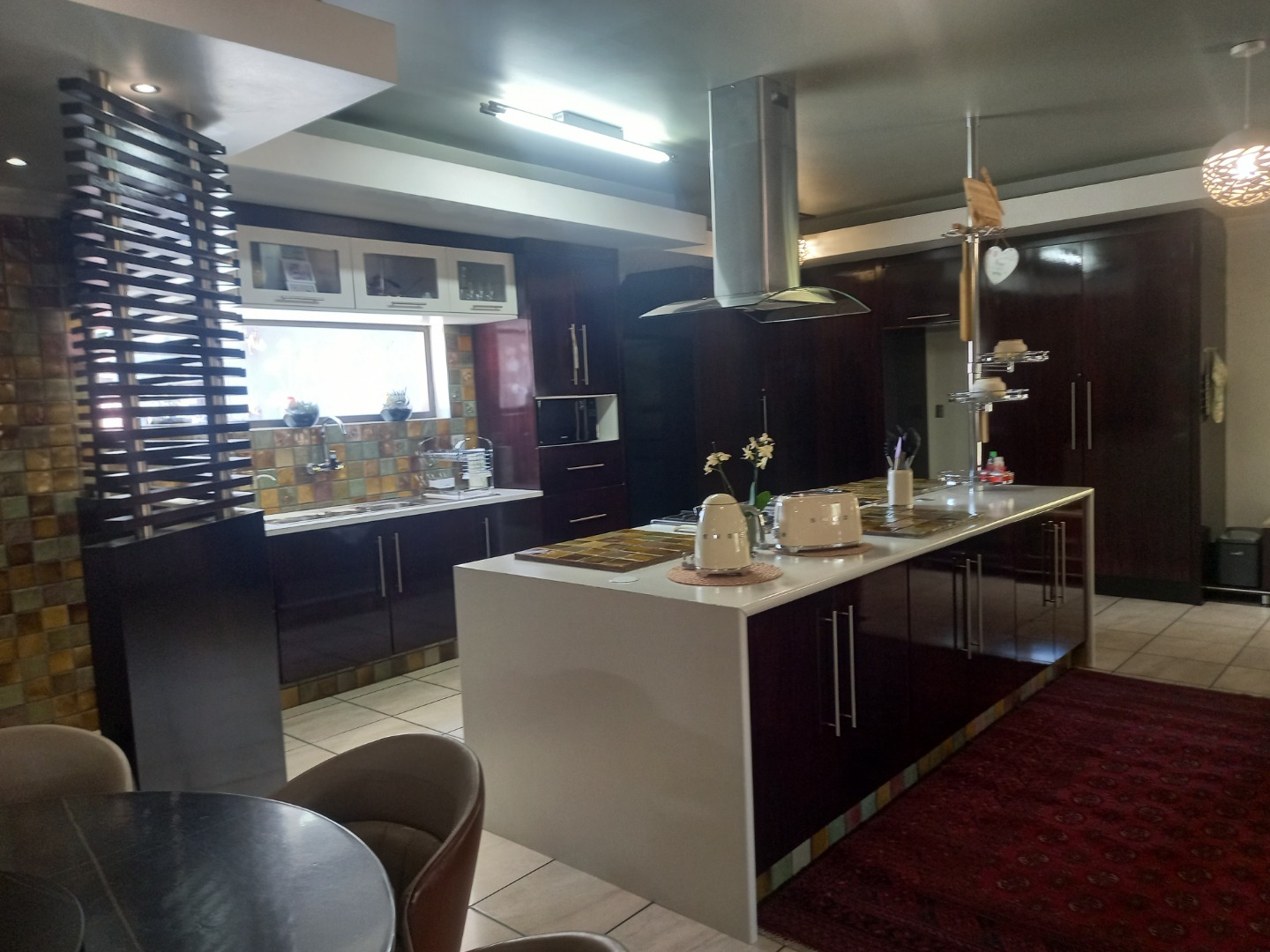 Discover this impressive 4-bedroom, 2-bathroom family home situated in the desirable suburban area of Lambton, Germiston, South Africa. Boasting a substantial 400 sqm under roof on a 2507 sqm erf, this property immediately captivates with its grand and secure entrance. Featuring prominent pillars, an arched entryway, and robust double wrought-iron security gates, the well-maintained exterior showcases an attractive stone facade and a beautifully landscaped front yard with green grass and blooming rose bushes. Inside, the home offers thoughtfully designed living spaces, including a dedicated dining room and a comfortable lounge, all benefiting from ample natural light. The four bedrooms provide comfort and practicality, equipped with extensive built-in storage solutions. Modern bed frames, air conditioning in key areas, and easy-to-maintain tiled flooring enhance the interior's appeal. The outdoor area is an entertainer's delight, featuring a refreshing swimming pool set within a well-maintained garden, ideal for leisure. Ample parking includes two garages and two additional spaces, complemented by paved pathways. Security is paramount, with an alarm system, electric fencing, burglar bars, and an access gate providing comprehensive peace of mind. A valuable borehole ensures water resilience for this exceptional property.