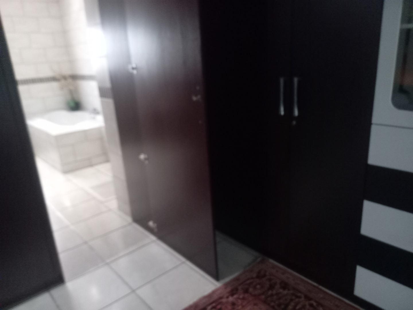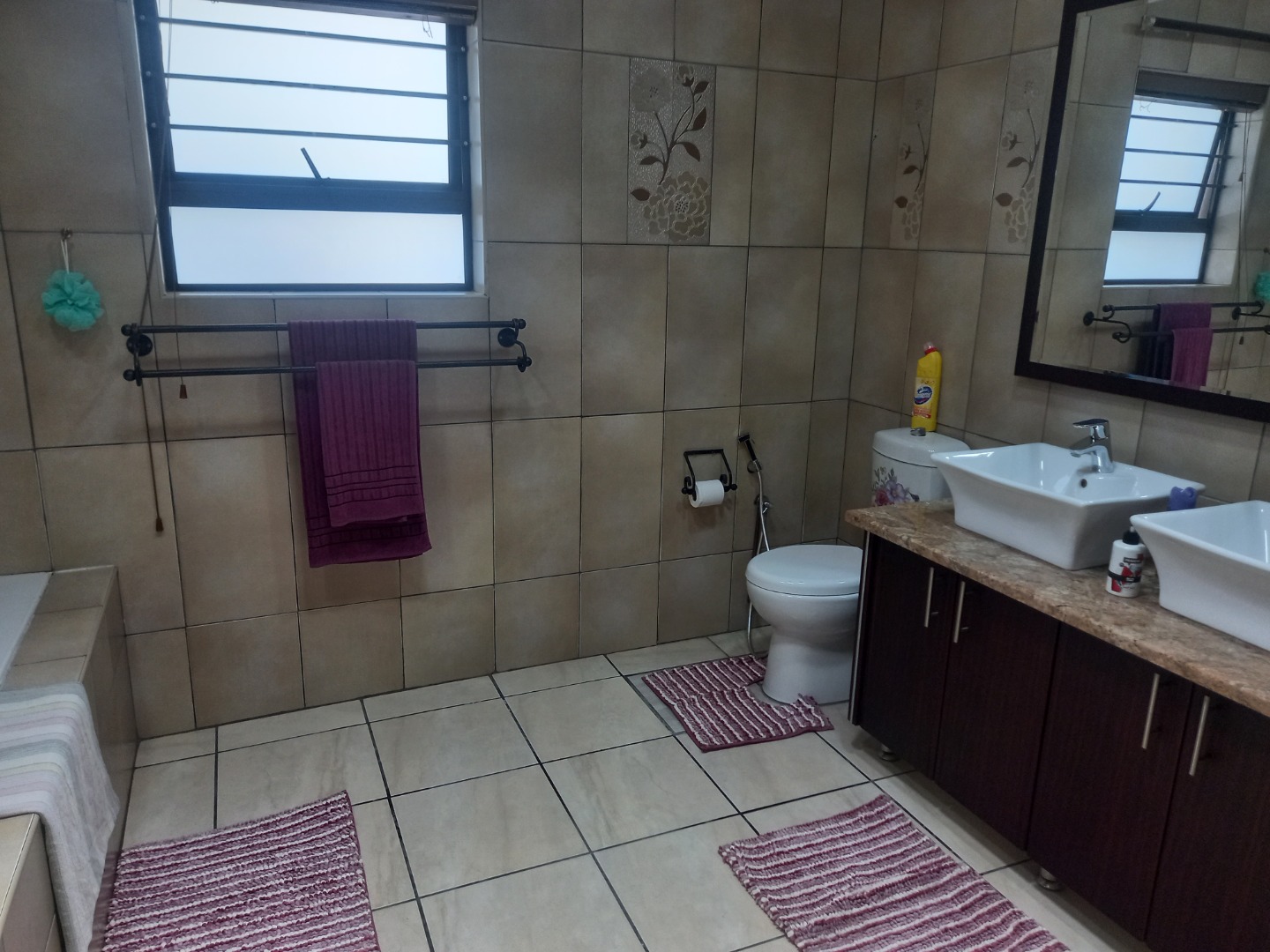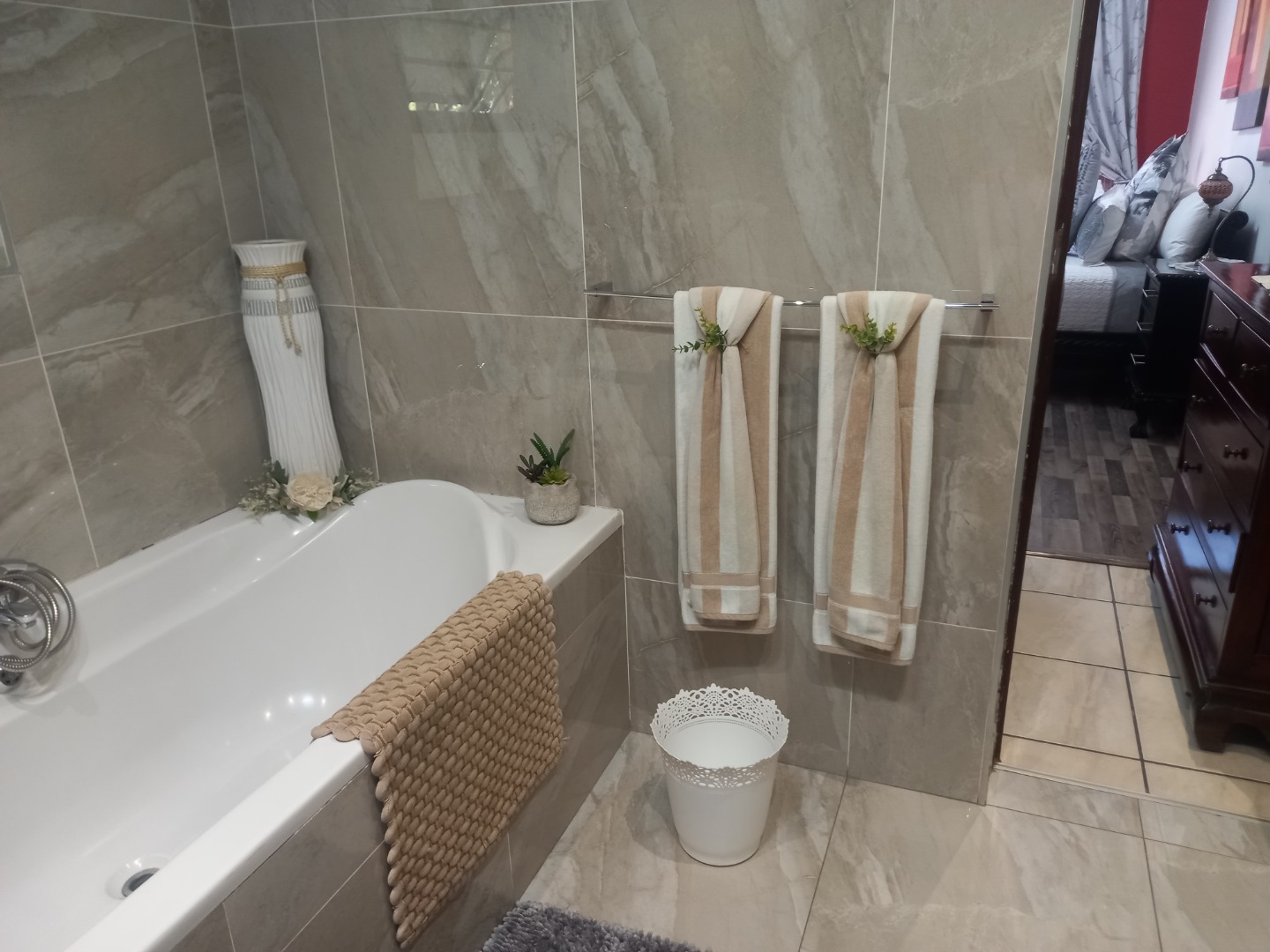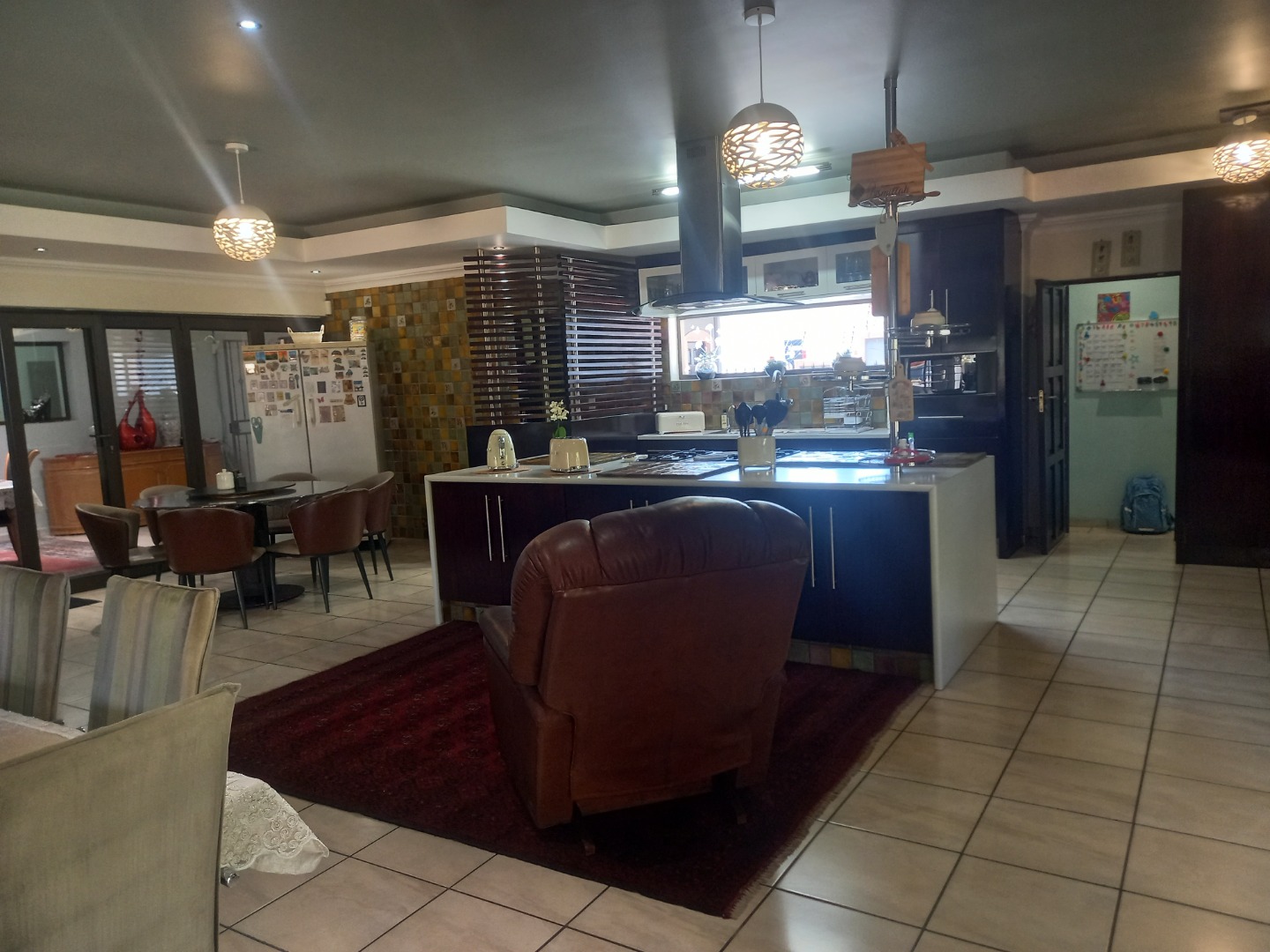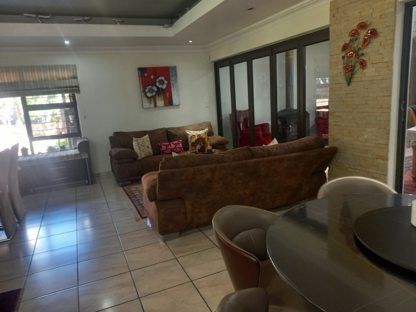 Discover this impressive 4-bedroom, 2-bathroom family home situated in the desirable suburban area of Lambton, Germiston, South Africa. Boasting a substantial 400 sqm under roof on a 2507 sqm erf, this property immediately captivates with its grand and secure entrance. Featuring prominent pillars, an arched entryway, and robust double wrought-iron security gates, the well-maintained exterior showcases an attractive stone facade and a beautifully landscaped front yard with green grass and blooming rose bushes. Inside, the home offers thoughtfully designed living spaces, including a dedicated dining room and a comfortable lounge, all benefiting from ample natural light. The four bedrooms provide comfort and practicality, equipped with extensive built-in storage solutions. Modern bed frames, air conditioning in key areas, and easy-to-maintain tiled flooring enhance the interior's appeal. The outdoor area is an entertainer's delight, featuring a refreshing swimming pool set within a well-maintained garden, ideal for leisure. Ample parking includes two garages and two additional spaces, complemented by paved pathways. Security is paramount, with an alarm system, electric fencing, burglar bars, and an access gate providing comprehensive peace of mind. A valuable borehole ensures water resilience for this exceptional property.