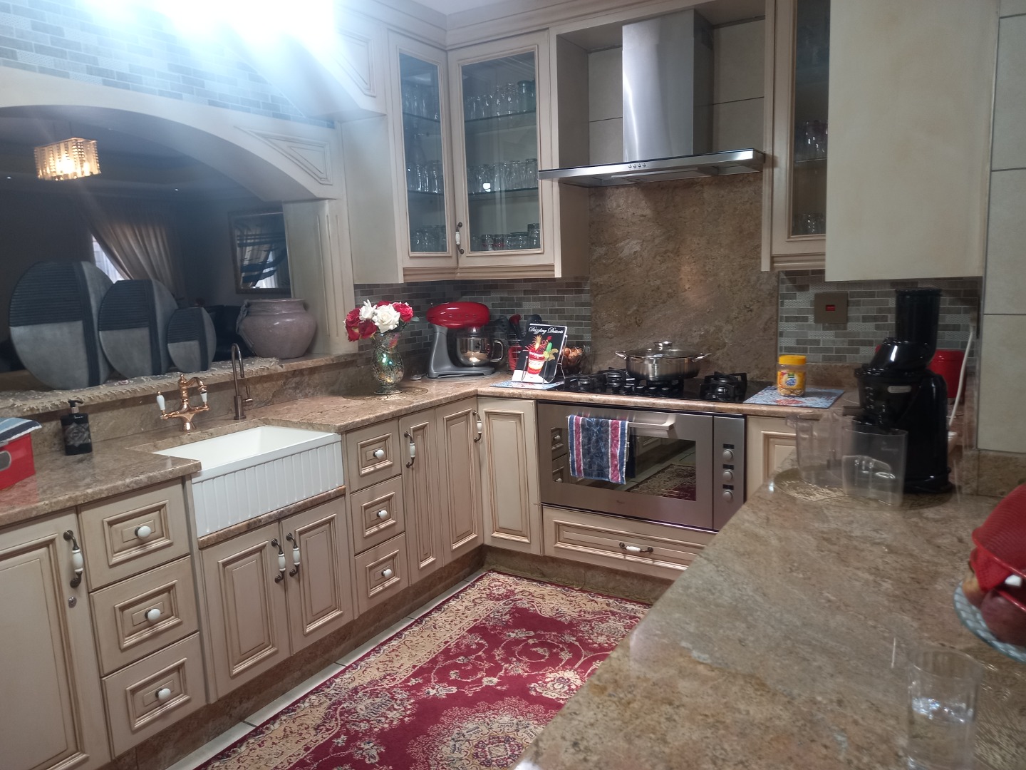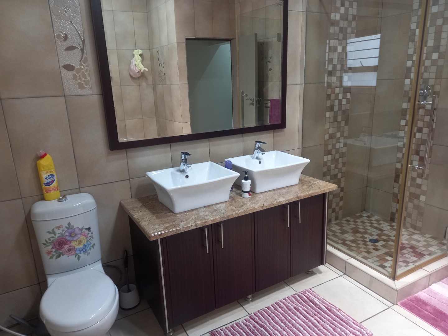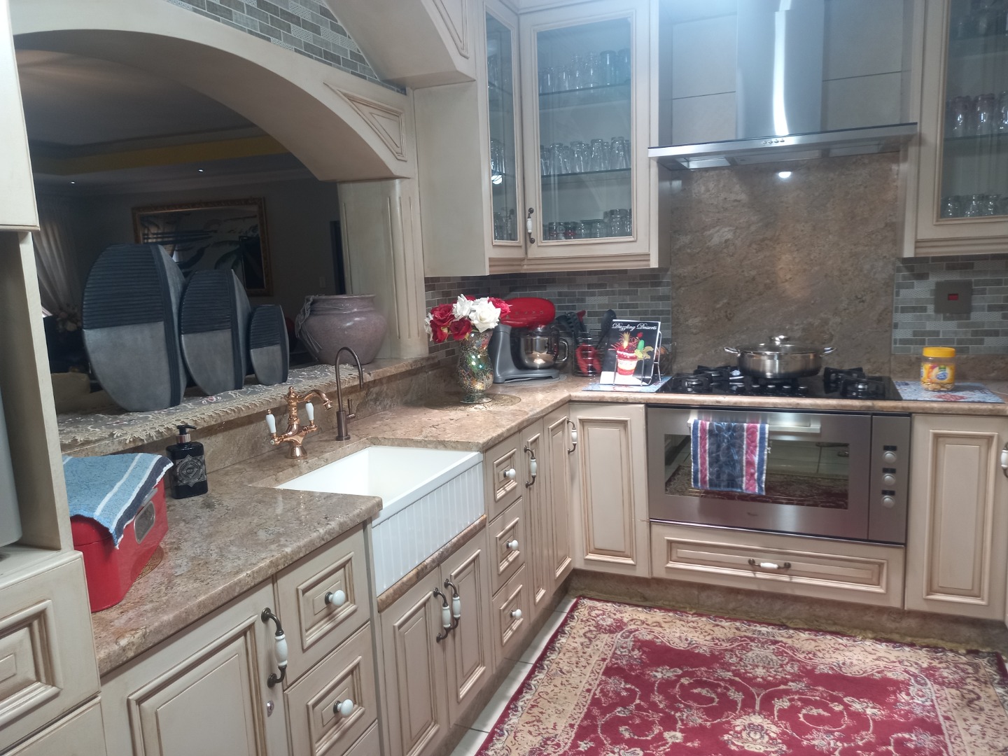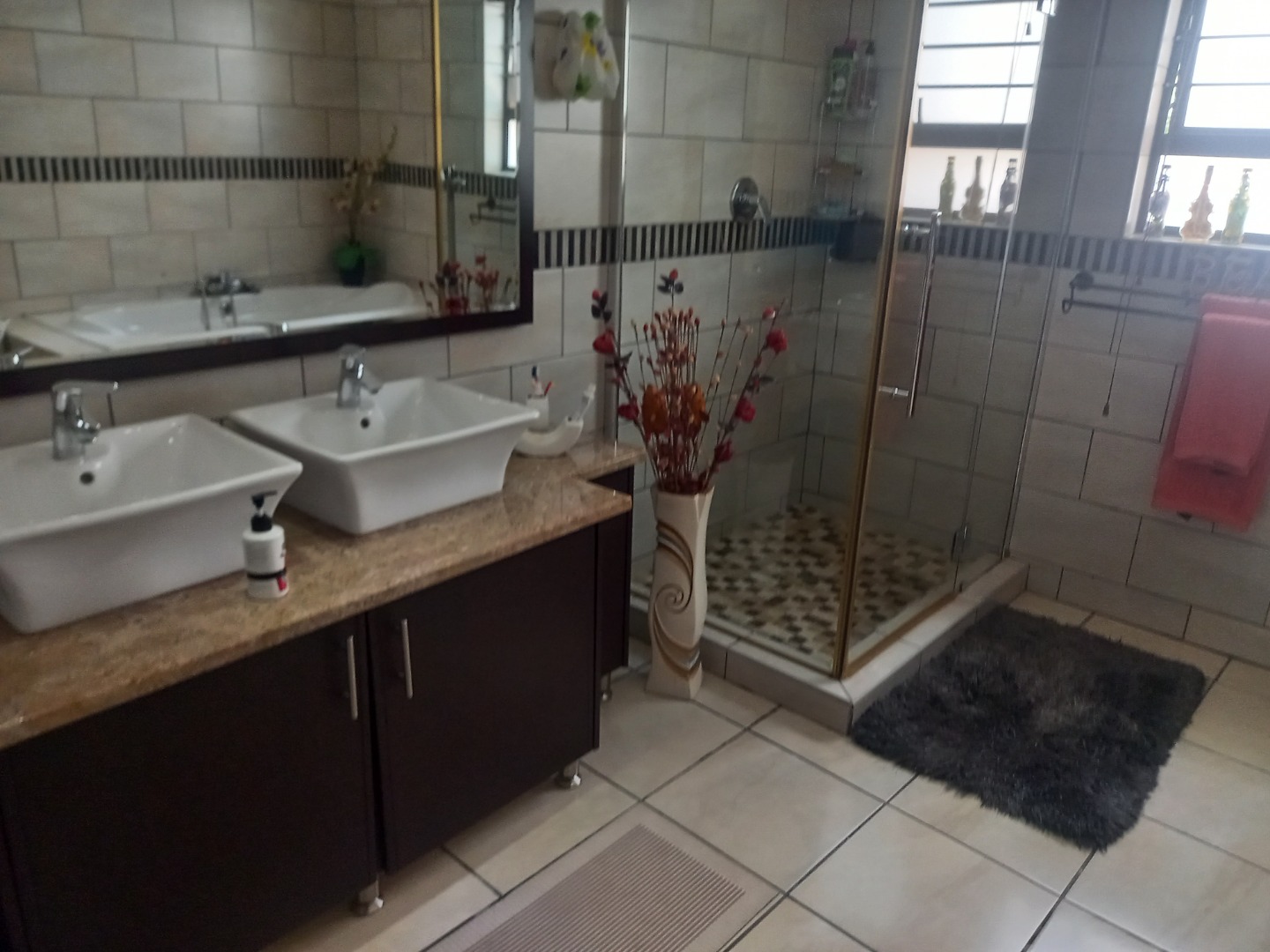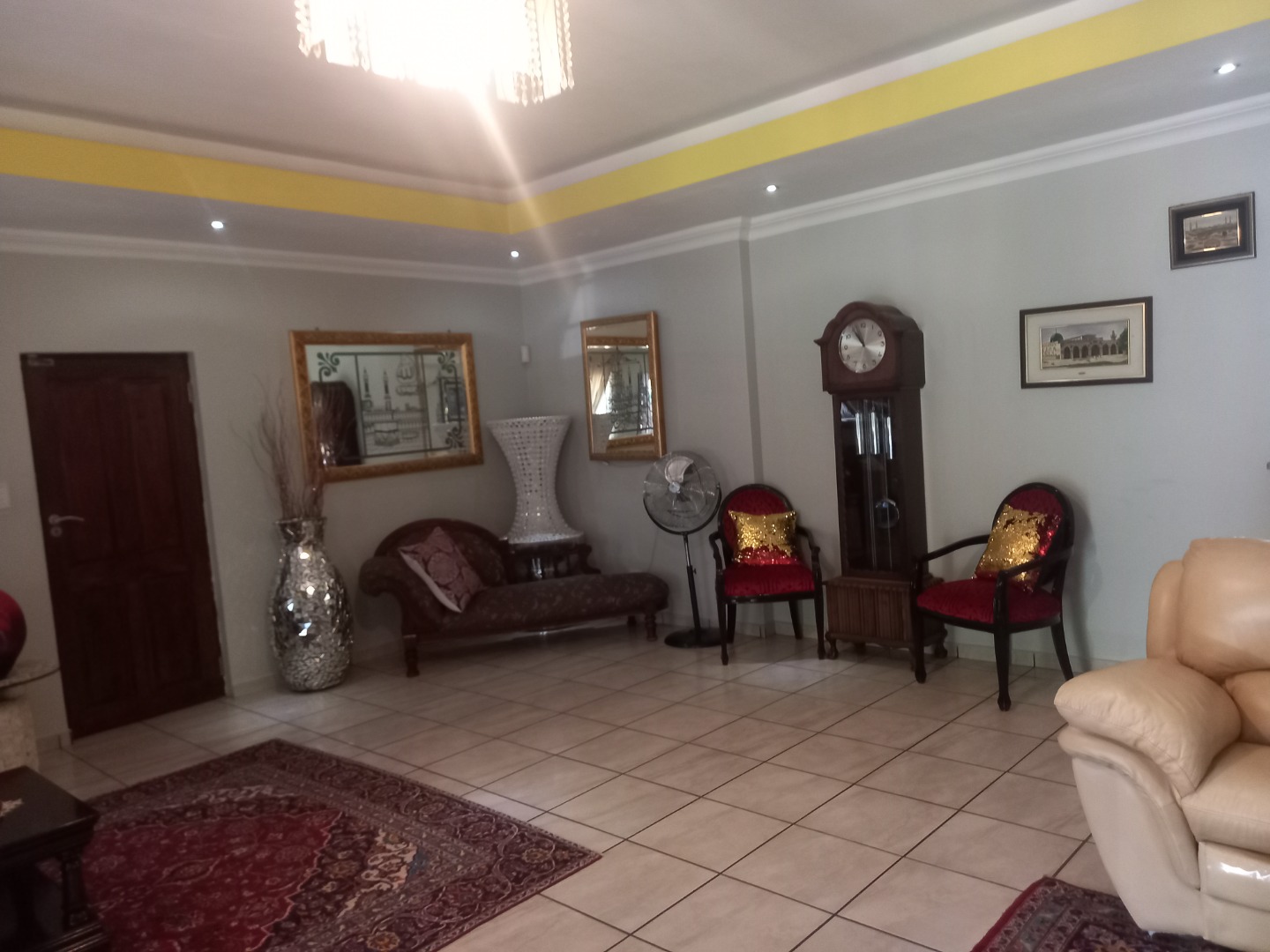 Discover this impressive 4-bedroom, 2-bathroom family home situated in the desirable suburban area of Lambton, Germiston, South Africa. Boasting a substantial 400 sqm under roof on a 2507 sqm erf, this property immediately captivates with its grand and secure entrance. Featuring prominent pillars, an arched entryway, and robust double wrought-iron security gates, the well-maintained exterior showcases an attractive stone facade and a beautifully landscaped front yard with green grass and blooming rose bushes. Inside, the home offers thoughtfully designed living spaces, including a dedicated dining room and a comfortable lounge, all benefiting from ample natural light. The four bedrooms provide comfort and practicality, equipped with extensive built-in storage solutions. Modern bed frames, air conditioning in key areas, and easy-to-maintain tiled flooring enhance the interior's appeal. The outdoor area is an entertainer's delight, featuring a refreshing swimming pool set within a well-maintained garden, ideal for leisure. Ample parking includes two garages and two additional spaces, complemented by paved pathways. Security is paramount, with an alarm system, electric fencing, burglar bars, and an access gate providing comprehensive peace of mind. A valuable borehole ensures water resilience for this exceptional property.