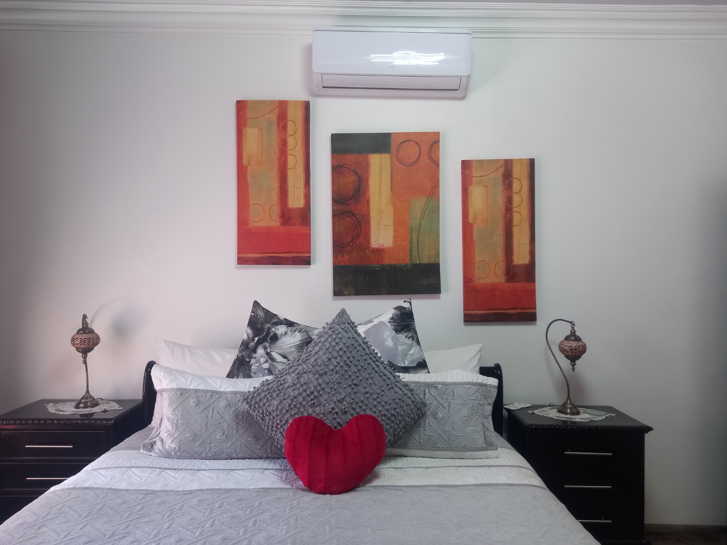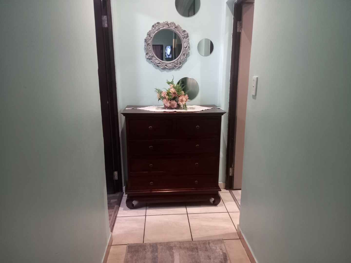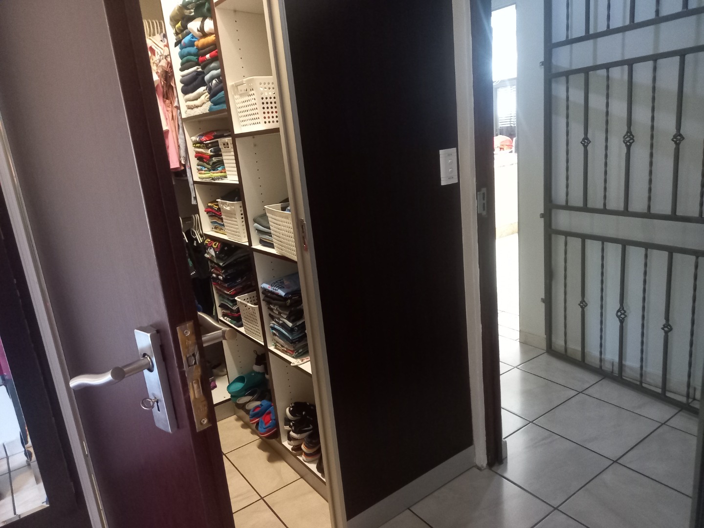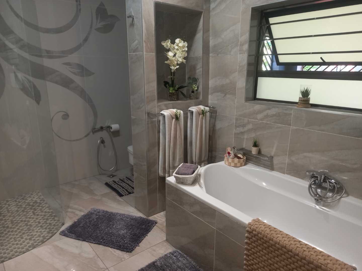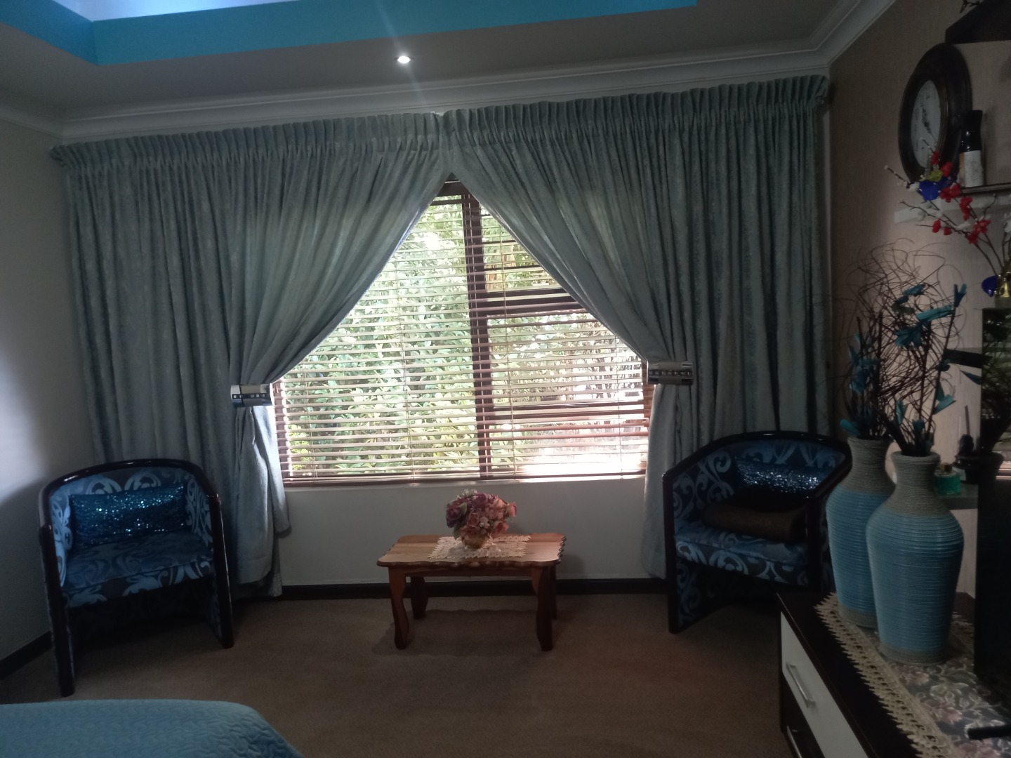 Discover this impressive 4-bedroom, 2-bathroom family home situated in the desirable suburban area of Lambton, Germiston, South Africa. Boasting a substantial 400 sqm under roof on a 2507 sqm erf, this property immediately captivates with its grand and secure entrance. Featuring prominent pillars, an arched entryway, and robust double wrought-iron security gates, the well-maintained exterior showcases an attractive stone facade and a beautifully landscaped front yard with green grass and blooming rose bushes. Inside, the home offers thoughtfully designed living spaces, including a dedicated dining room and a comfortable lounge, all benefiting from ample natural light. The four bedrooms provide comfort and practicality, equipped with extensive built-in storage solutions. Modern bed frames, air conditioning in key areas, and easy-to-maintain tiled flooring enhance the interior's appeal. The outdoor area is an entertainer's delight, featuring a refreshing swimming pool set within a well-maintained garden, ideal for leisure. Ample parking includes two garages and two additional spaces, complemented by paved pathways. Security is paramount, with an alarm system, electric fencing, burglar bars, and an access gate providing comprehensive peace of mind. A valuable borehole ensures water resilience for this exceptional property.