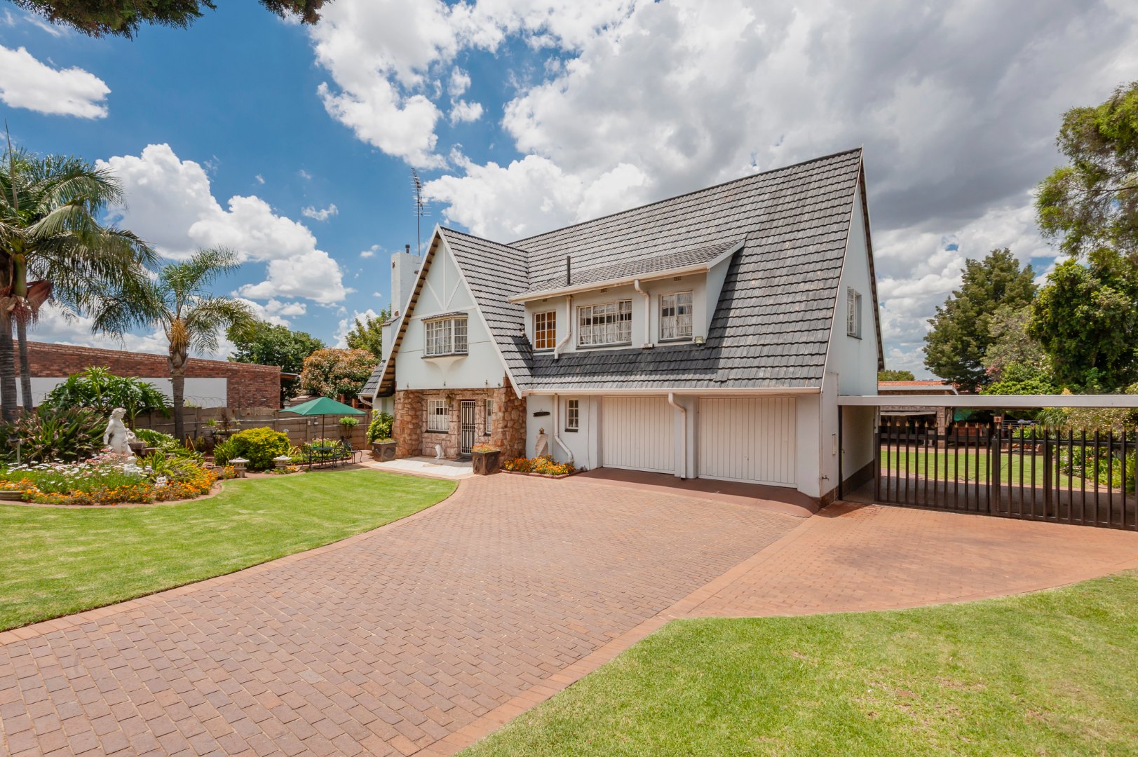 A magnificent front yard with a stunningly manicured garden and double automated garages,
