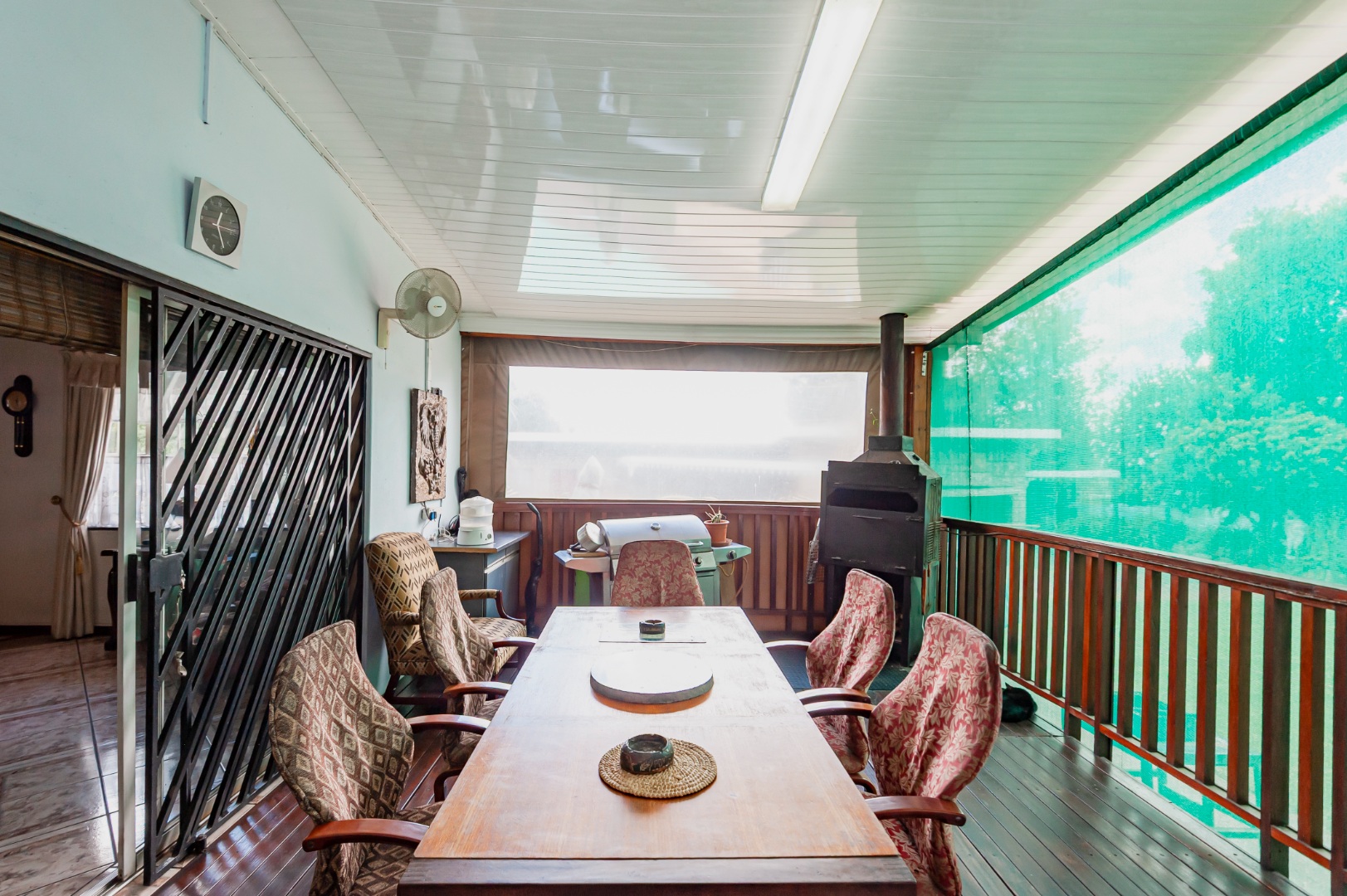 A lovely enclosed patio with a built in braai overlooking the gorgeous back garden,