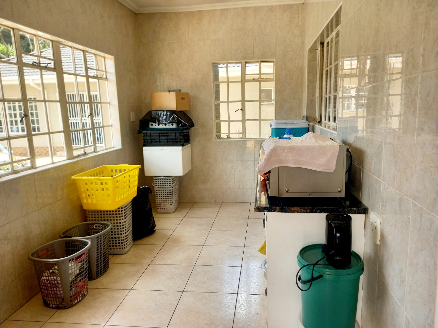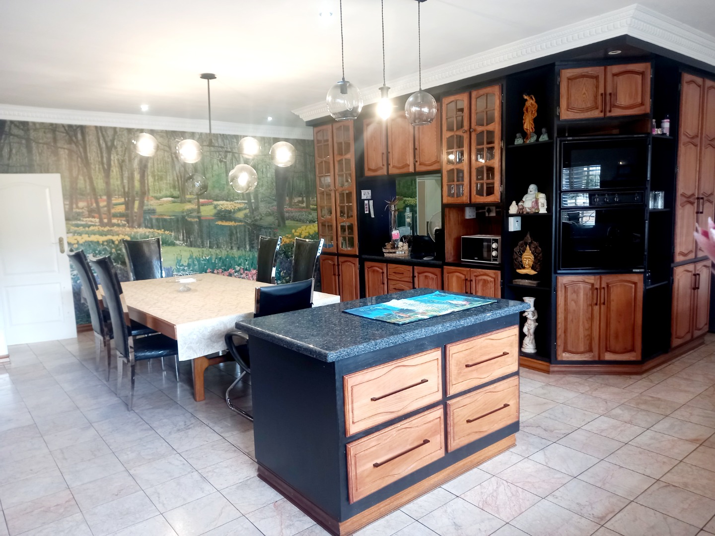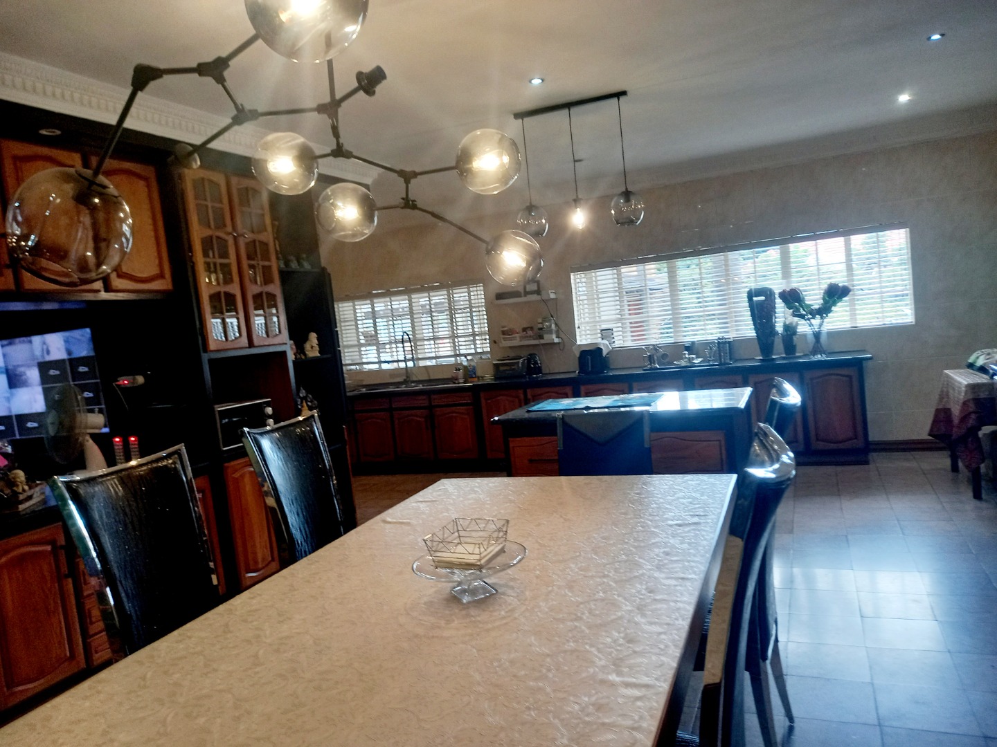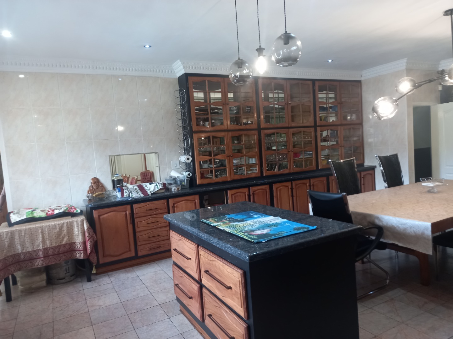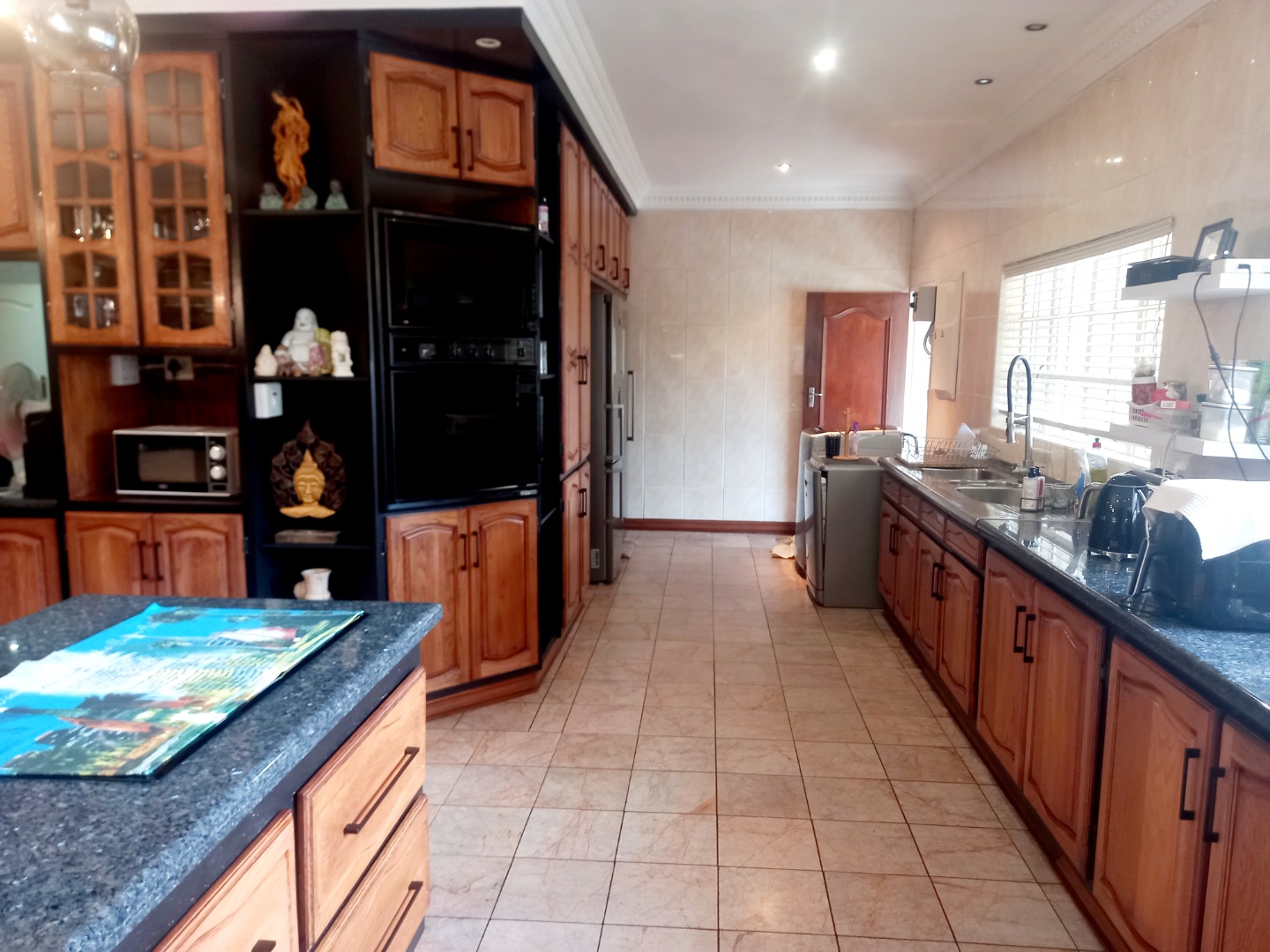 This substantial 5-bedroom, 3-bathroom residence offers an exceptional living experience on a generous 4047 sqm erf in the established suburb of Lambton, Germiston. Upon arrival, the property presents a welcoming kerb appeal with a paved driveway leading to a spacious double wooden garage and additional covered parking. Inside, an inviting entrance hall flows into two distinct lounges, providing ample space for relaxation and entertaining. The single-story design ensures ease of access throughout the home, complemented by a well-appointed kitchen. The home features five comfortable bedrooms and three bathrooms, catering to a large family or providing versatile guest accommodation. Each space is designed for practical living, offering a blend of privacy and communal areas. The layout ensures a seamless flow, making it ideal for both everyday family life and hosting gatherings. Outdoor living is a highlight, with an expansive, manicured green lawn and lush, mature landscaping creating a serene oasis. The property boasts a refreshing swimming pool, a charming gazebo perfect for outdoor entertaining, and a brick-paved patio area for al fresco dining. The extensive garden includes varied plant life and mature trees, offering shade and privacy. With five garages and two additional parking spaces, vehicle accommodation is abundant. Security is well-addressed with an alarm system, electric fencing, access gate, CCTV, burglar bars, and security gates, ensuring peace of mind. Practical amenities include a dedicated laundry room and domestic rooms, adding to the home's functionality. Pets are allowed, making this an ideal environment for animal lovers. Lambton, located in Germiston, is a well-regarded suburban area known for its family-friendly atmosphere and convenient access to local amenities, schools, and major transport routes. This property offers a unique opportunity to own a spacious home with significant outdoor appeal in a desirable location. Key Features: * 5 Bedrooms, 3 Bathrooms * 2 Lounges, 1 Kitchen * Expansive 4047 sqm Erf * Swimming Pool & Gazebo * 5 Garages, 2 Parking Spaces * Lush, Mature Garden & Paving * Alarm, Electric Fencing, CCTV * Domestic Rooms & Laundry * Pet-Friendly Environment