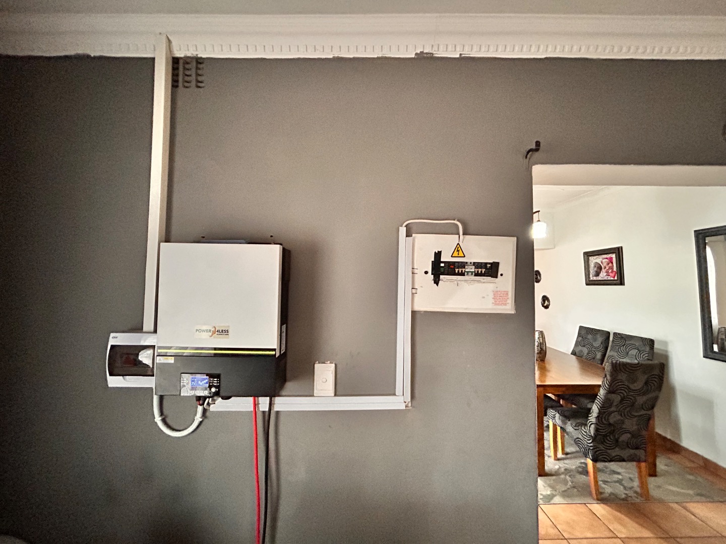 Security is a paramount feature of this home, equipped with a comprehensive alarm system, an access gate, CCTV surveillance, burglar bars, and a security gate, all enclosed by a perimeter fence. Furthermore, the property embraces modern sustainability with a solar geyser, solar panels, and a battery inverter, significantly reducing utility costs and environmental impact. High-speed fibre connectivity is also available, ensuring seamless digital access.