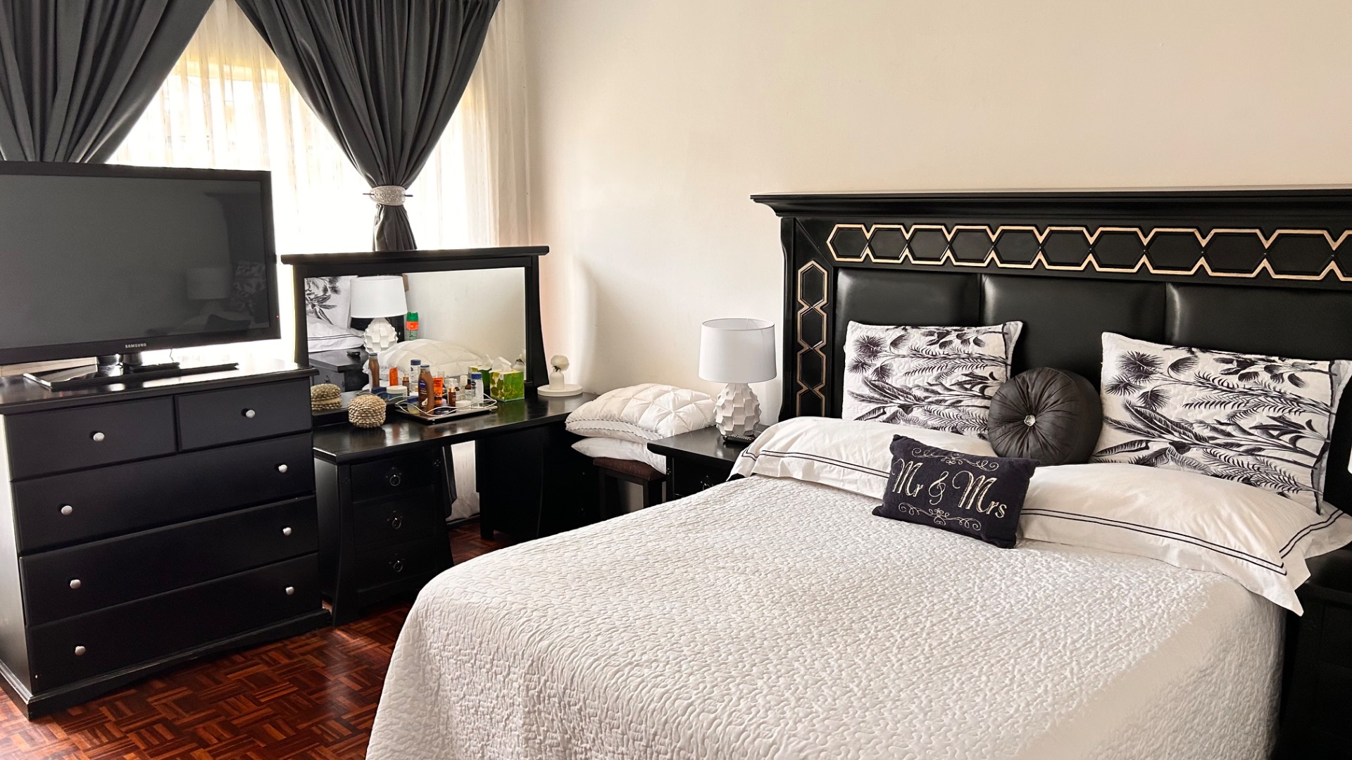Beyond the main living areas, the property extends its appeal outdoors. A well-maintained garden provides a serene environment, while the inviting swimming pool offers a refreshing escape during warmer months. Parking is abundant with two garages and a total of four parking spaces available. The inclusion of a flatlet presents versatile options, whether for extended family, guest accommodation, or potential rental income.