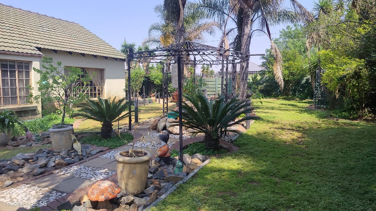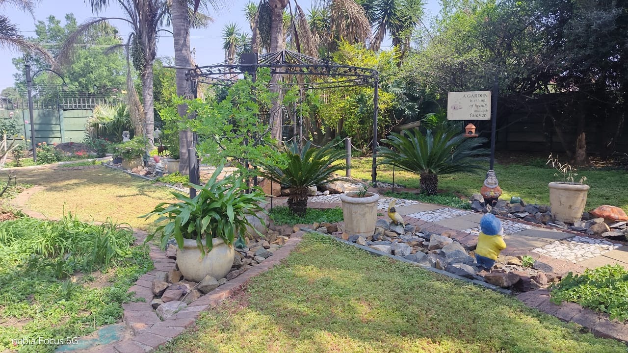 Step outside to discover an entertainer’s dream—an expansive entertainment area featuring a large bar and sliding doors that lead to a covered patio with a built-in braai. This outdoor space overlooks a beautifully landscaped garden, perfect for hosting friends or enjoying peaceful moments with family.