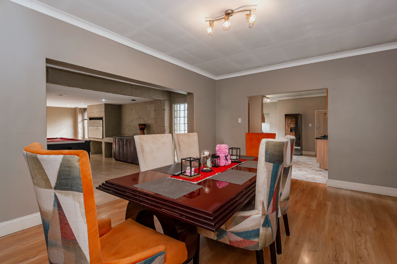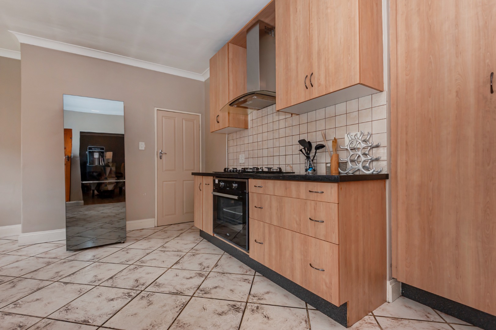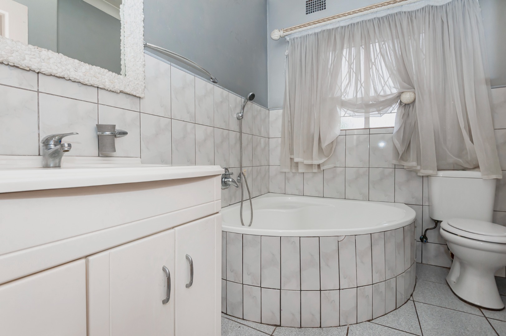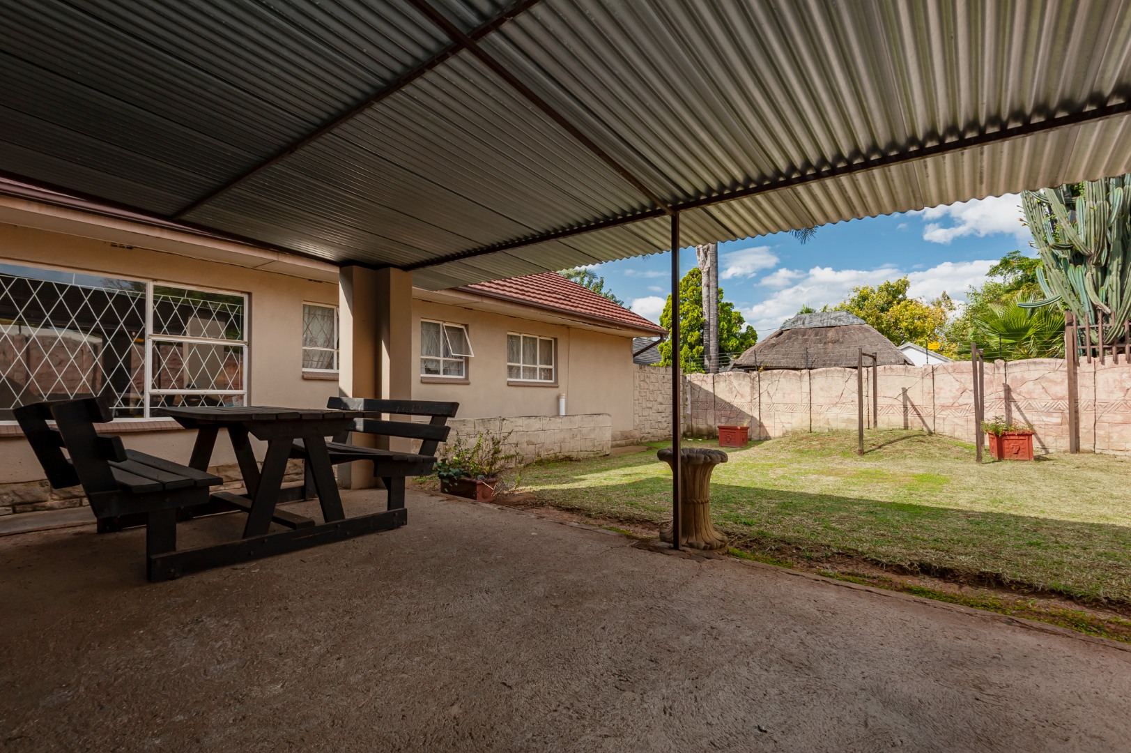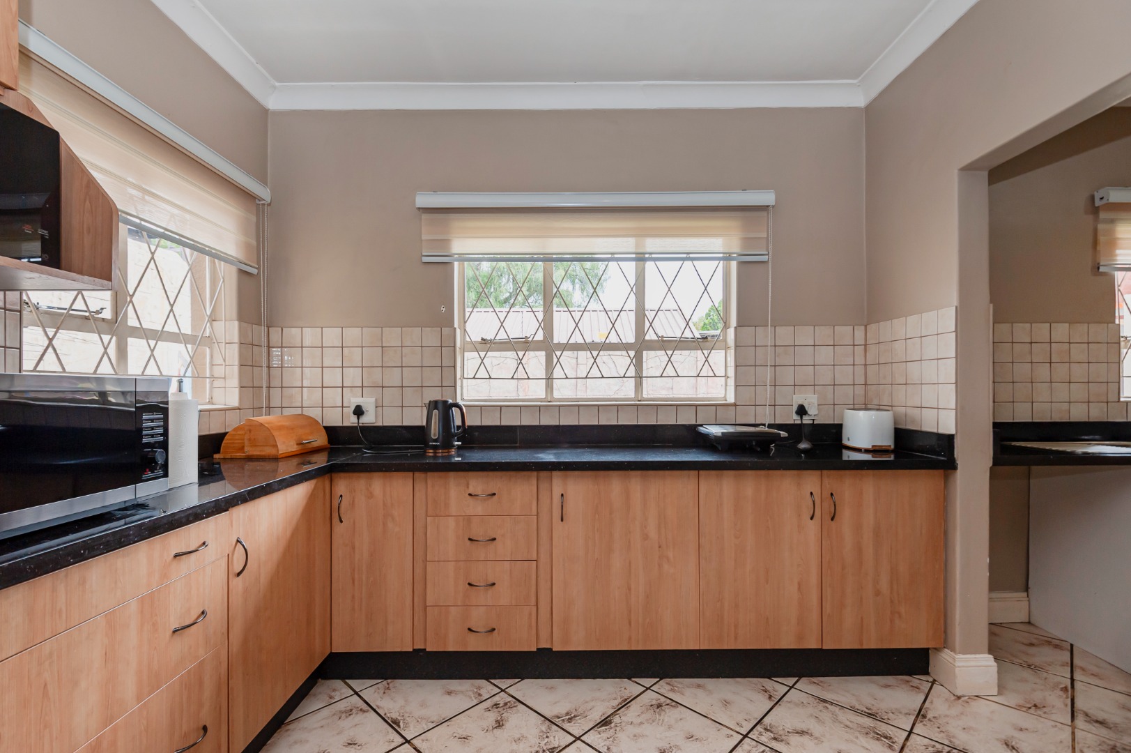 Practicality is key with four garages, offering secure parking and additional storage. Further parking is available on the paved driveway. For peace of mind, the property is equipped with burglar bars and a security gate. Located in a suburban setting, it offers a balanced lifestyle.