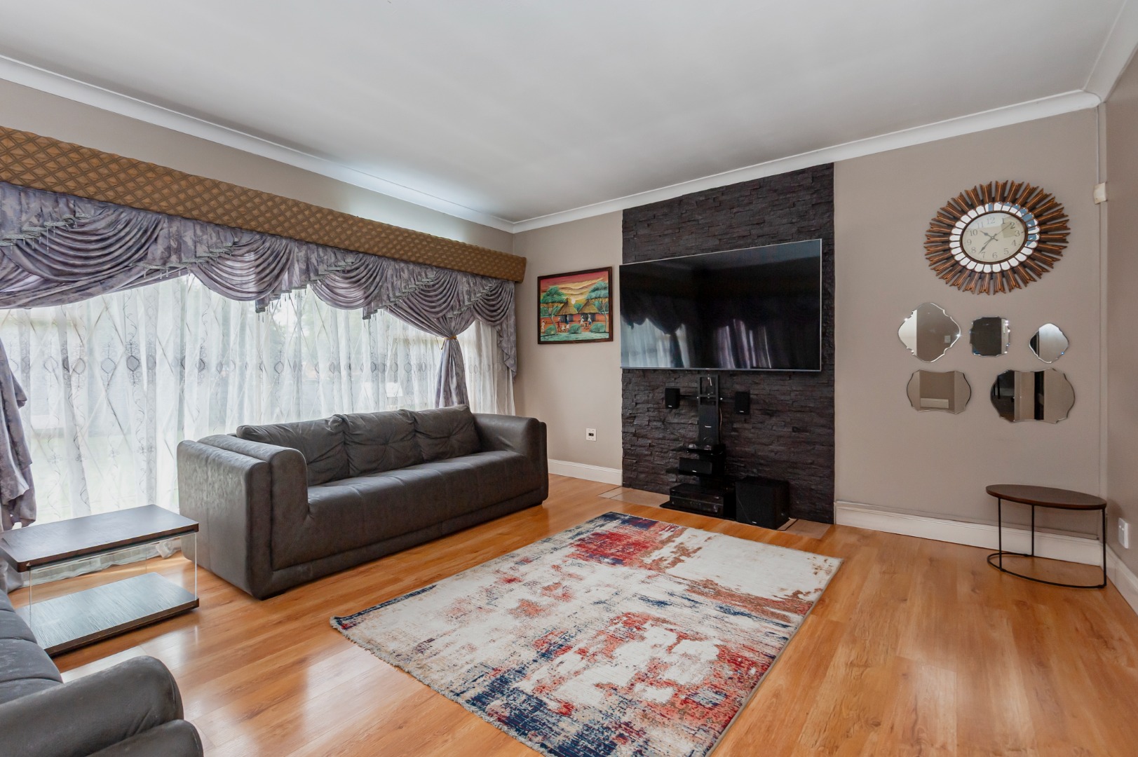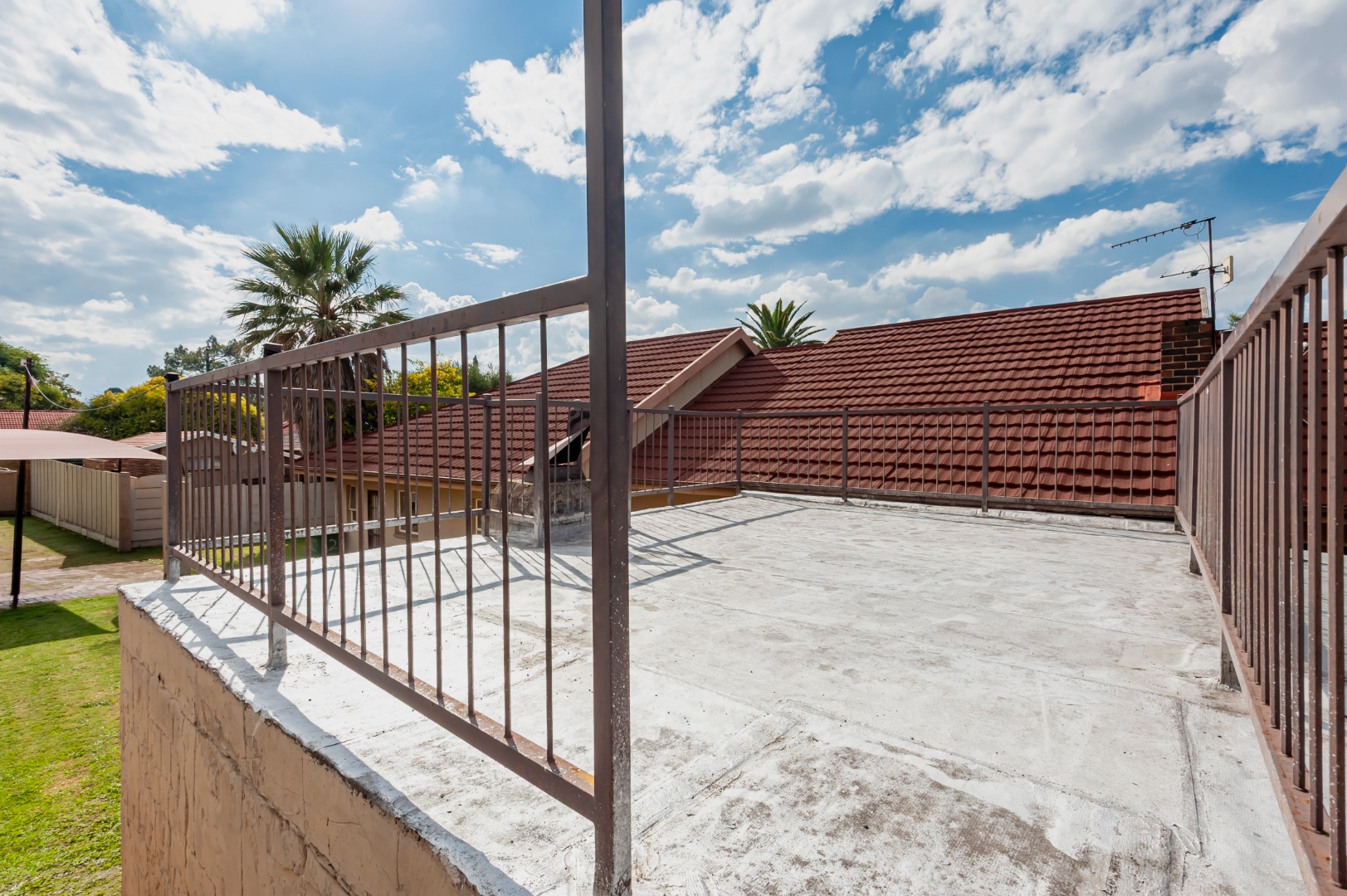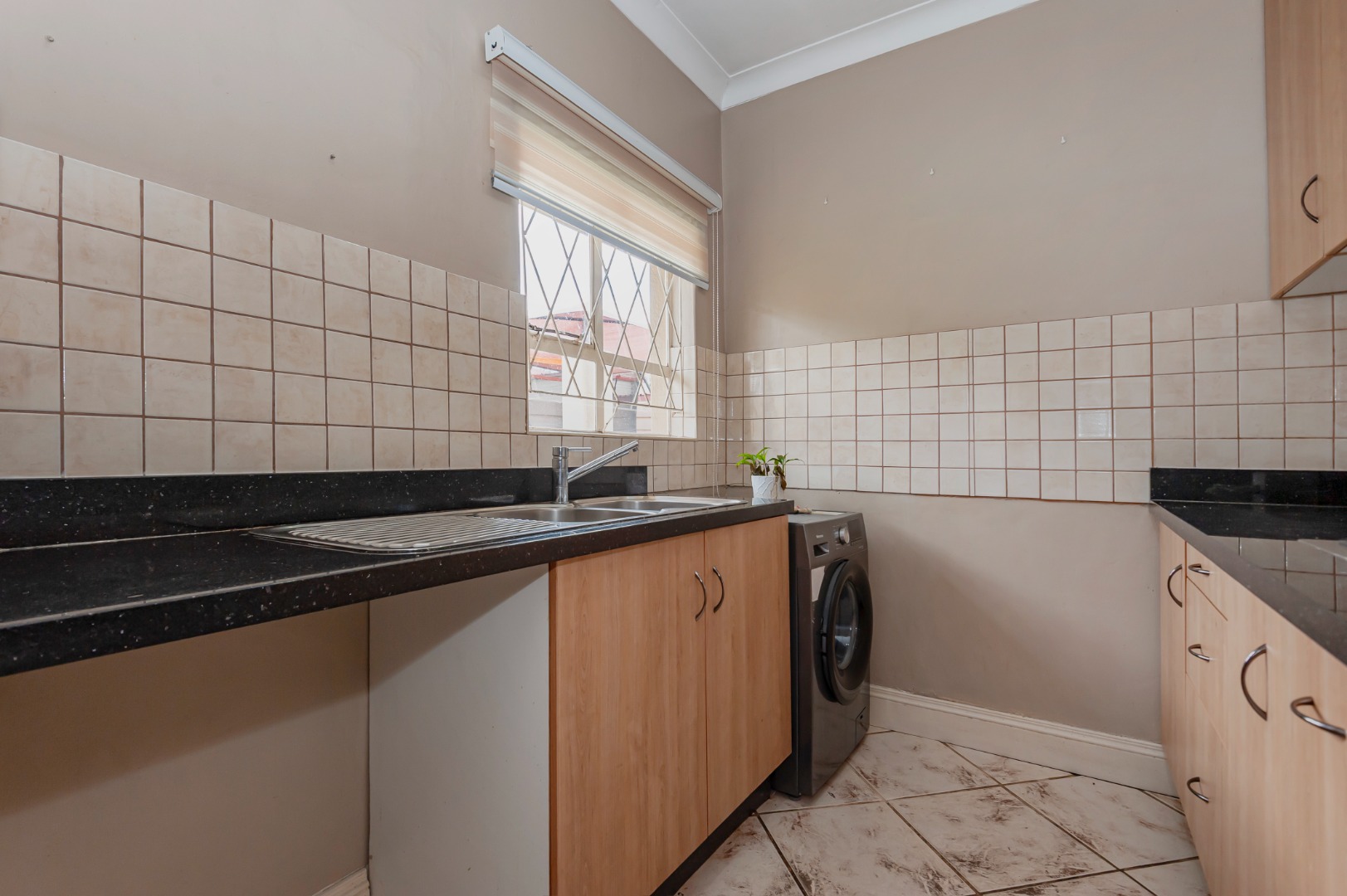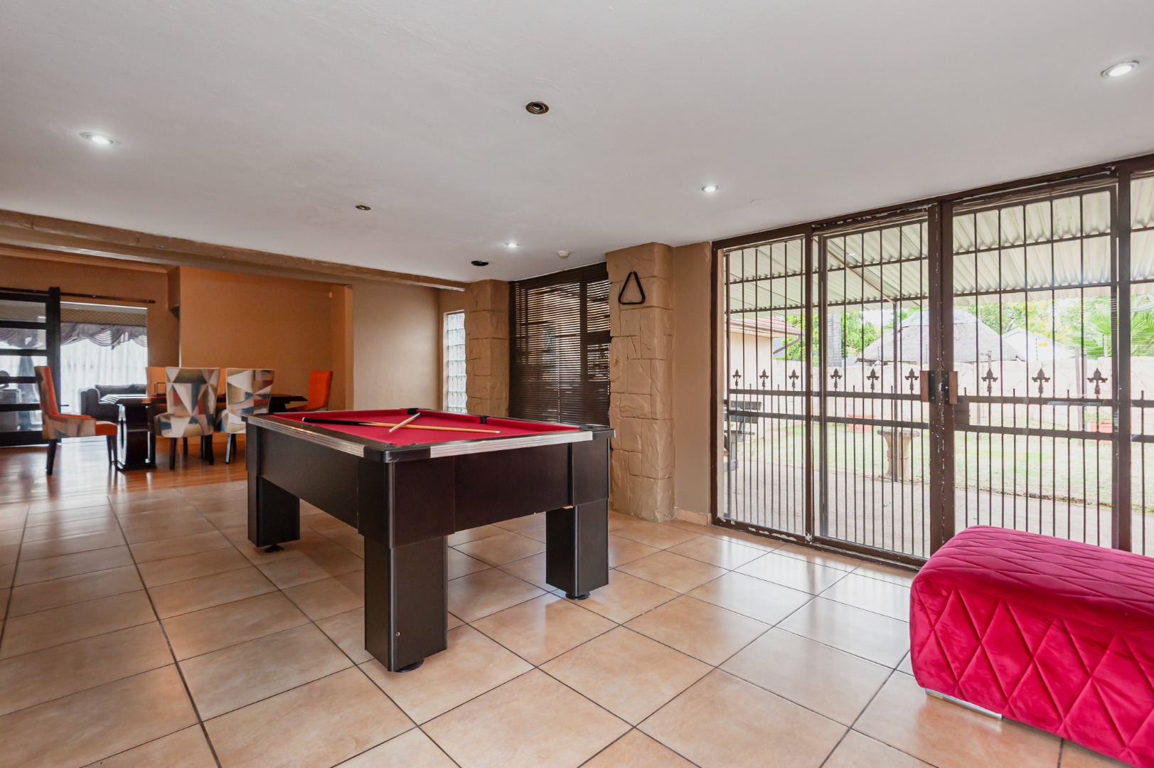 Practicality is key with four garages, offering secure parking and additional storage. Further parking is available on the paved driveway. For peace of mind, the property is equipped with burglar bars and a security gate. Located in a suburban setting, it offers a balanced lifestyle.