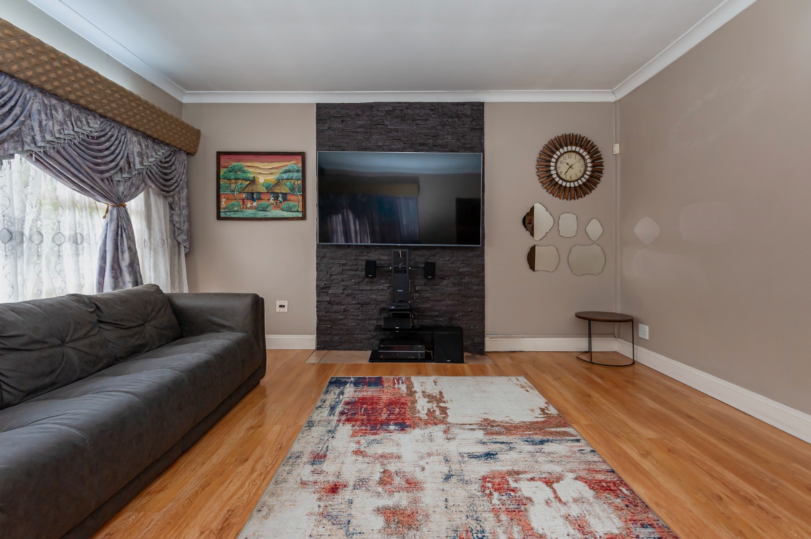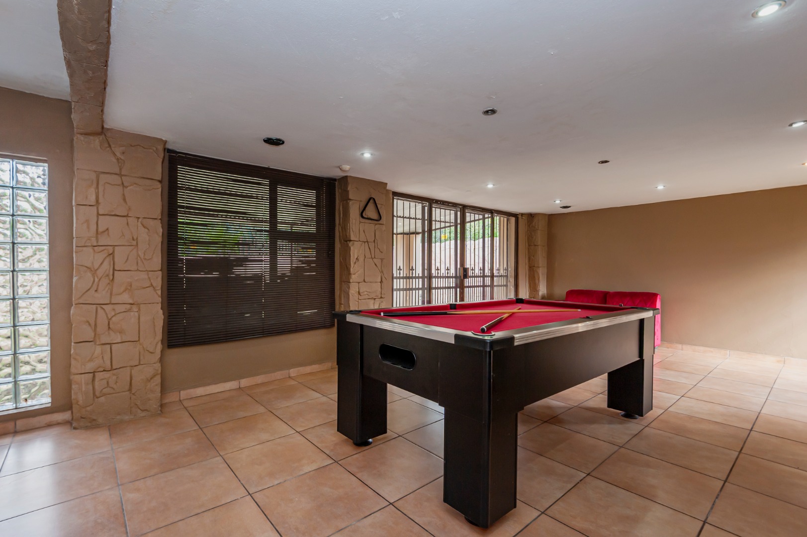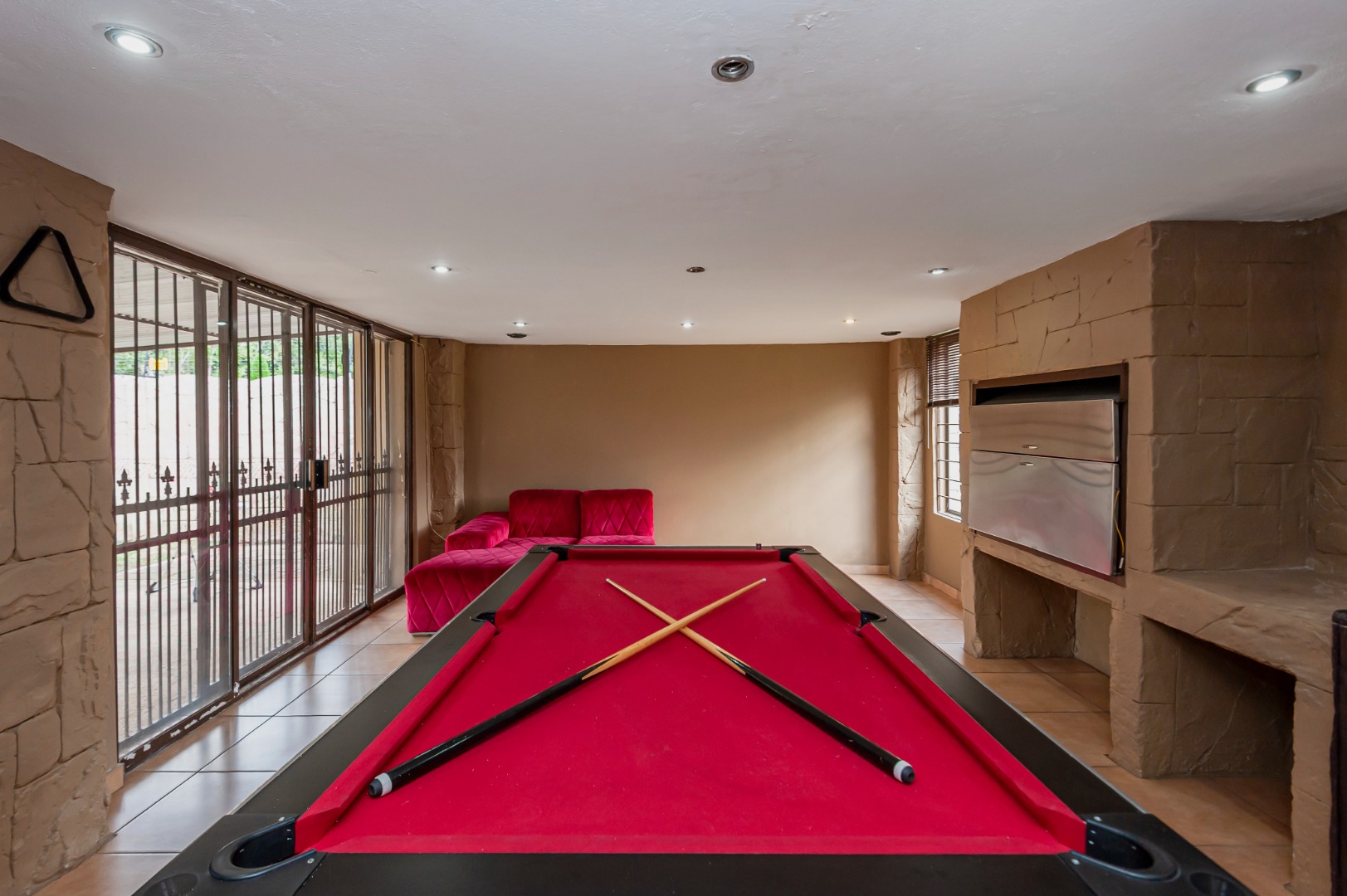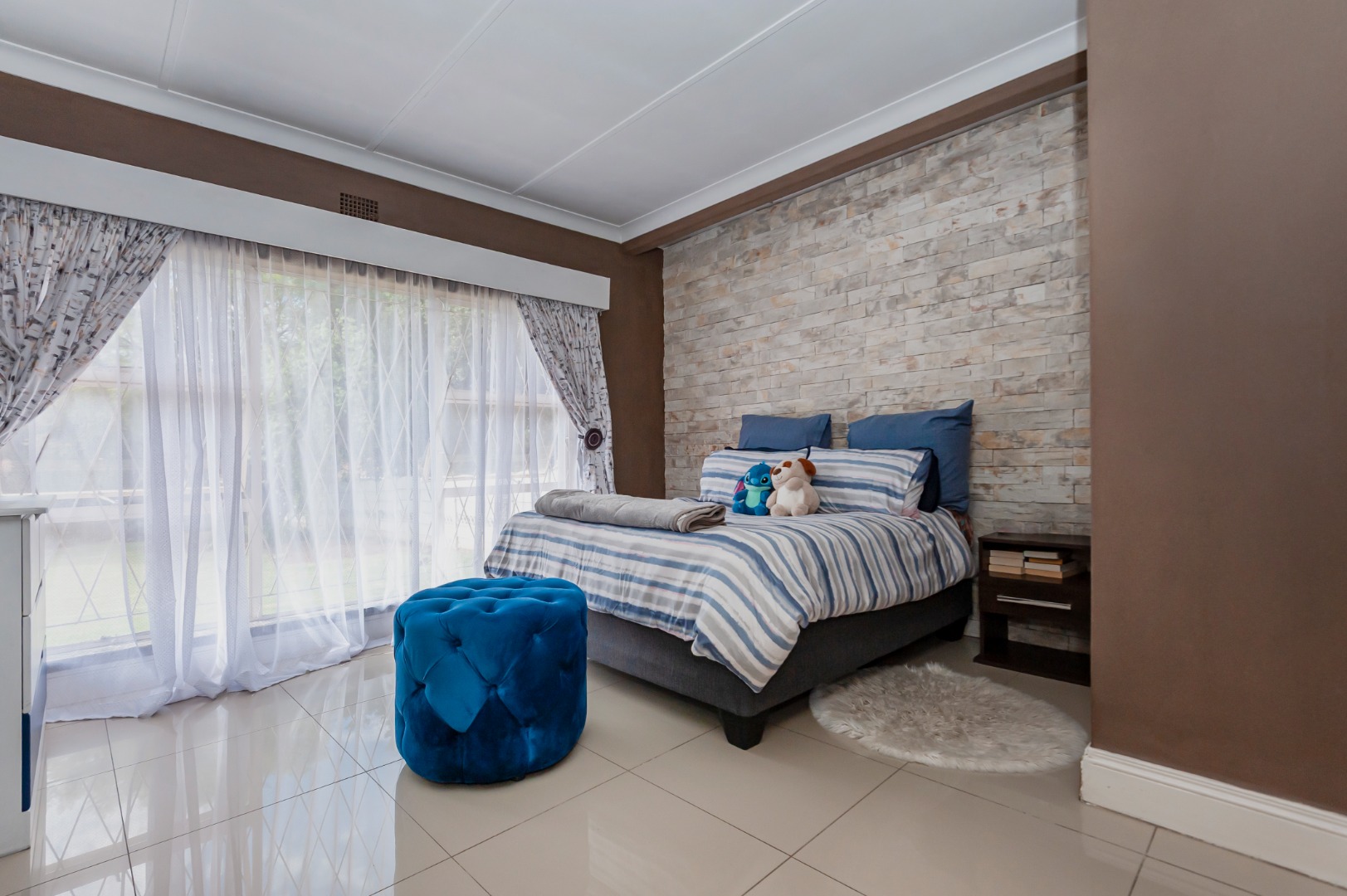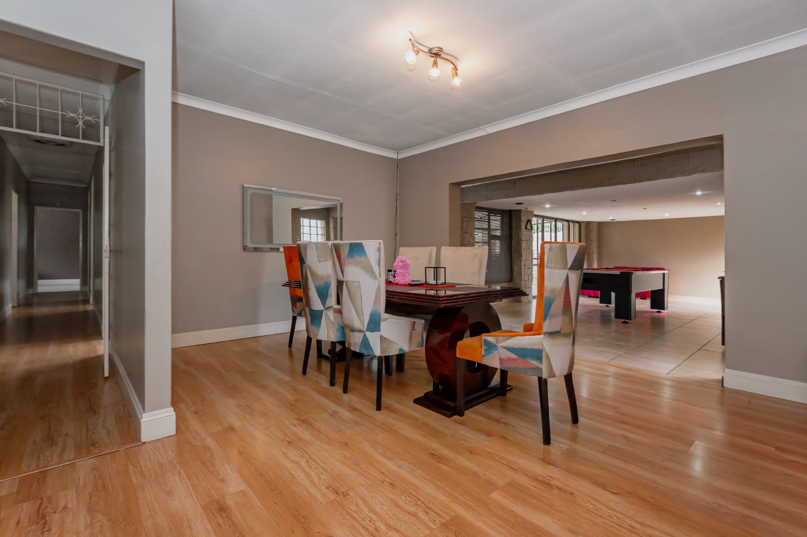 Practicality is key with four garages, offering secure parking and additional storage. Further parking is available on the paved driveway. For peace of mind, the property is equipped with burglar bars and a security gate. Located in a suburban setting, it offers a balanced lifestyle.