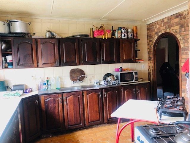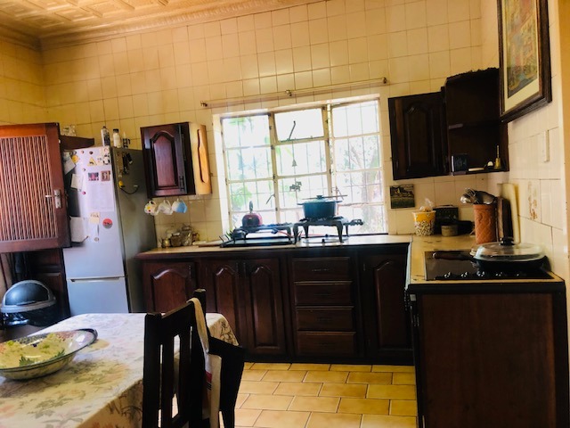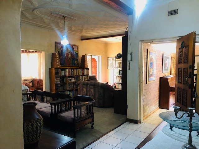 Discover a substantial brick residence nestled in the established suburban area of Parkhill Gardens, Germiston. This expansive property, set on a generous 1992 sqm erf, offers a unique opportunity for a discerning buyer to create their dream home. The exterior features a large paved driveway providing ample parking and leading to four integrated garages, all set amidst mature trees that offer natural privacy. While the property presents a canvas for modernization, its robust structure and spacious layout are immediately evident.
