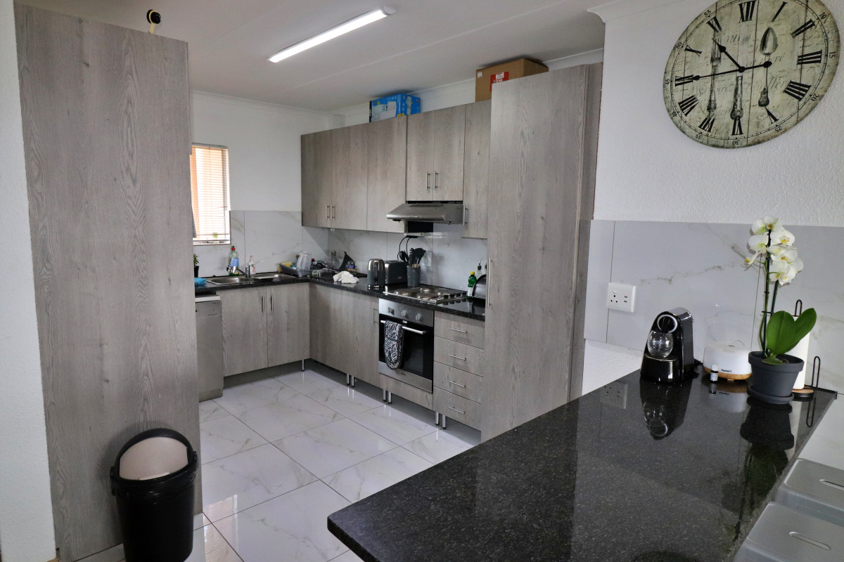 Discover contemporary living in this inviting 2-bedroom, 2-bathroom apartment located in the desirable suburban area of Primrose Hill, Germiston. Spanning 85 square meters, this residence offers a thoughtfully designed open-plan layout that seamlessly connects the living spaces. The modern kitchen is a highlight, featuring stylish light wood-grain cabinetry, dark granite countertops, and integrated appliances including an oven, hob, and extractor fan. Tiled flooring in the kitchen transitions smoothly into the laminate flooring of the spacious lounge, which benefits from abundant natural light and provides direct access to a private balcony. The apartment comprises two comfortable bedrooms, each designed for relaxation. Both bedrooms boast modern wood-look flooring and ample built-in wardrobes, ensuring practical storage solutions. The master bedroom features a custom wooden headboard with integrated bedside amenities, adding a touch of sophistication. The two well-appointed bathrooms complement the contemporary aesthetic of the home. Step outside to enjoy the property's lifestyle amenities. The private balcony offers expansive panoramic views of the surrounding landscape, perfect for unwinding. Residents also benefit from access to a communal garden and a refreshing swimming pool, ideal for leisure and recreation. A single garage provides secure parking. Security is a priority, with the building featuring electric fencing and 24-hour security, ensuring peace of mind for all residents. The exterior of the multi-story apartment building is well-maintained, with secure entry points. Primrose Hill is a well-established suburban neighbourhood in Germiston, offering a convenient and family-friendly environment. Its elevated position provides residents with picturesque views and a tranquil setting, while remaining accessible to urban amenities. Key Features: * 2 Bedrooms, 2 Bathrooms * 85 sqm Floor Size * Modern Open-Plan Kitchen * Integrated Appliances * Private Balcony with Panoramic Views * Communal Pool and Garden * Single Garage * 24-Hour Security & Electric Fencing
