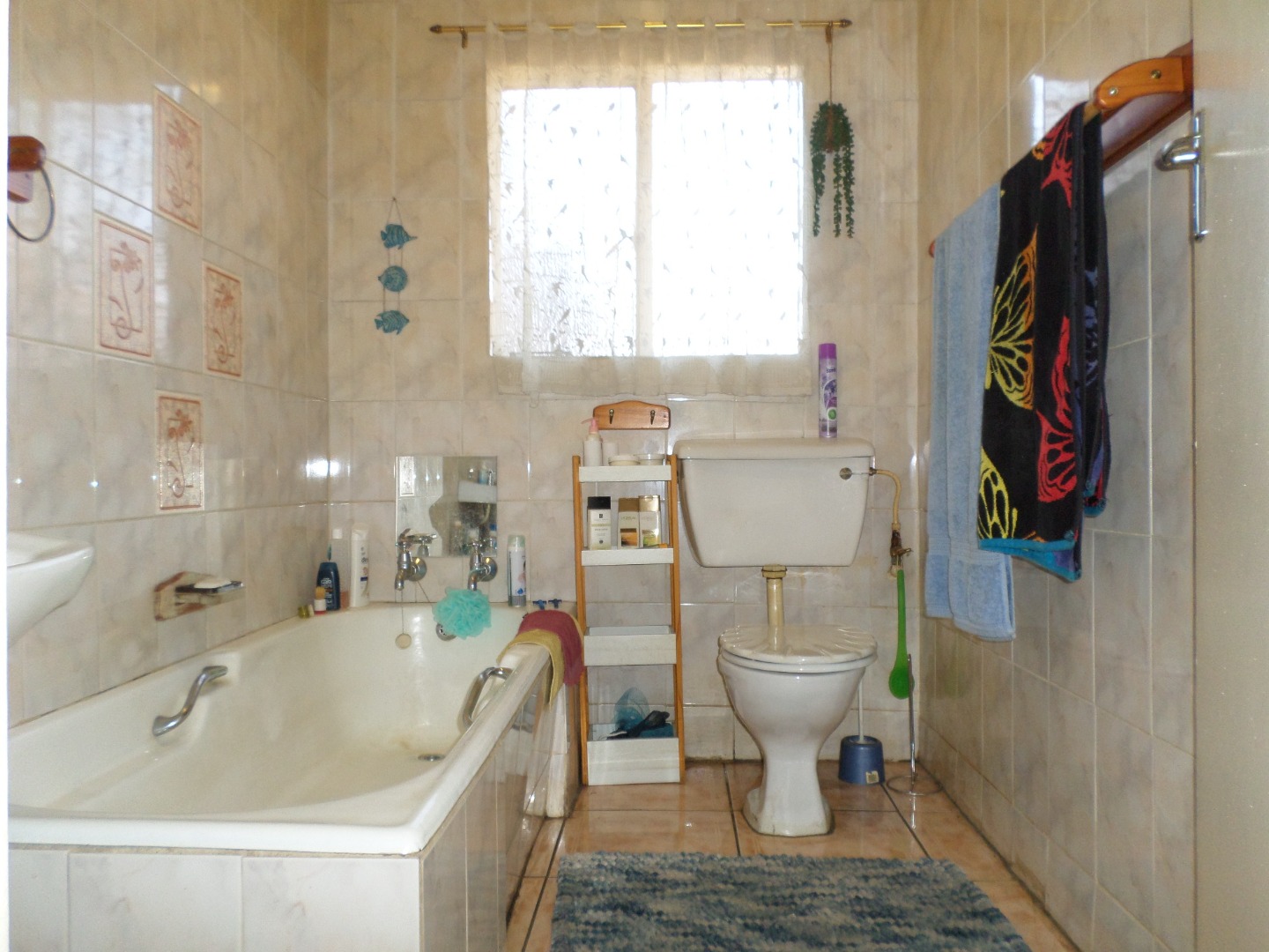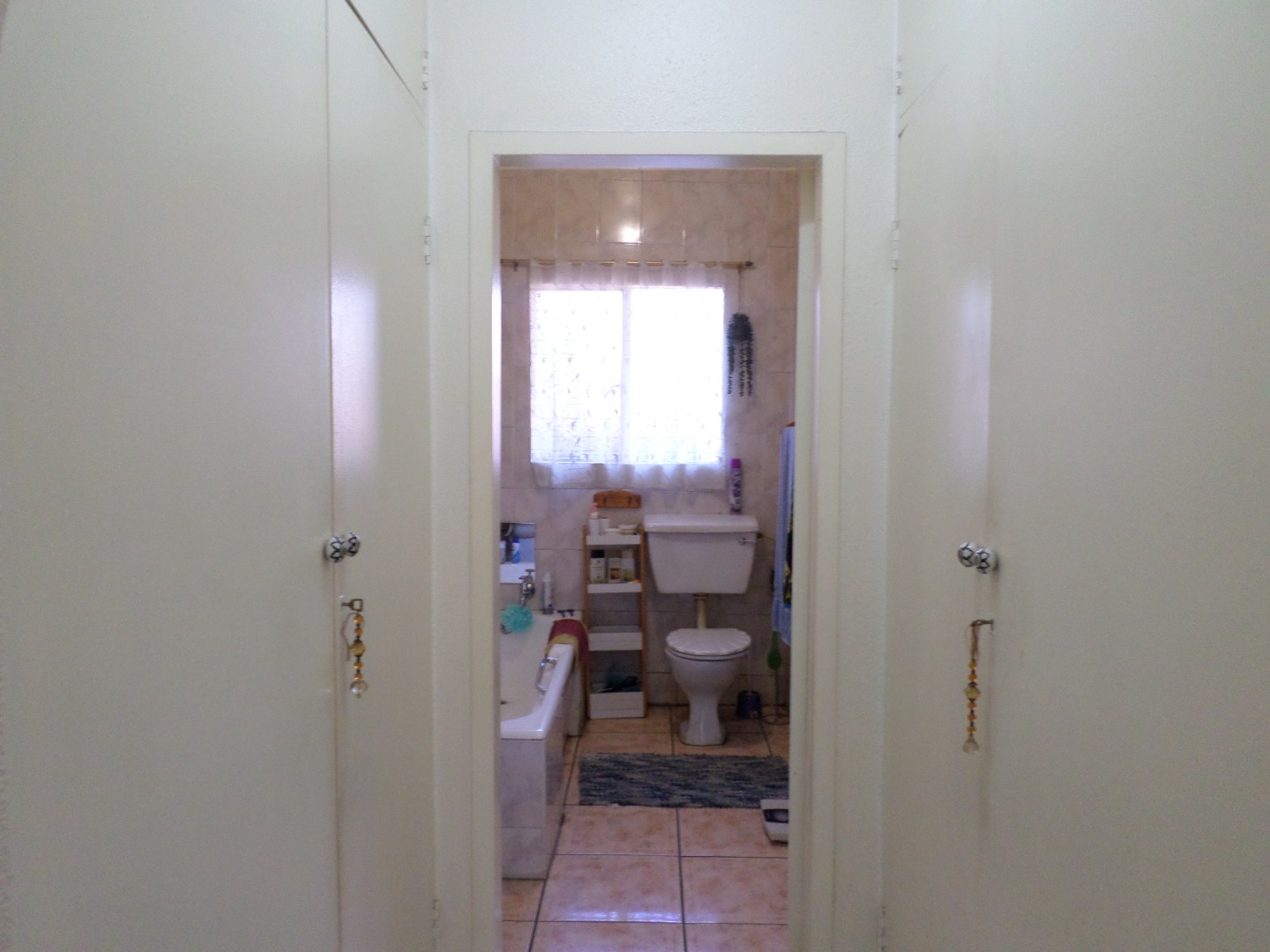 This home comprises three comfortable bedrooms, each benefiting from natural light, tiled flooring, and two of the three bedrooms have ceiling fan for optimal air circulation. There are two bathrooms, with one being an en-suite, both featuring tiled walls and floors, a bathtub, and natural light from a window. Storage is provided by built-in cupboards in the hallway.