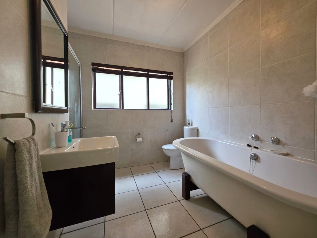 Discover modern living in this inviting 2-bedroom, 1-bathroom residence located within a secure suburban estate in Solheim, Germiston. This well-maintained complex offers a consistent architectural style, lush landscaping, and a gated entrance, providing a welcoming and secure environment for residents. With 24-hour security, peace of mind is assured in this desirable South African setting. Spanning 128 sqm, the interior boasts an open-plan layout, creating a seamless flow between the living, dining, and kitchen areas. The contemporary kitchen features dark cabinetry, light countertops, and stainless steel appliances including an oven, hob, and extractor fan, complemented by a double basin sink. A modern floating staircase adds a touch of elegance, leading to the upper level. The two spacious bedrooms are designed for comfort, offering ample natural light, laminate wood flooring, and built-in wardrobes for practical storage. The main bathroom presents a modern floating vanity and a freestanding bathtub, providing a serene space for relaxation. Neutral tones throughout allow for personalized decor. Enhance your lifestyle with excellent outdoor amenities. The property includes a spacious balcony, perfect for entertaining, featuring a built-in braai and artificial turf. Residents also benefit from access to a communal pool and a well-maintained garden area. Two dedicated parking bays are provided, and pets are allowed, adding to the convenience and appeal of this home. Solheim, a suburban area in Germiston, offers a convenient location within South Africa. It provides easy access to local amenities and transport routes, making it an ideal choice for those seeking a balanced lifestyle. Key Features: * 2 Bedrooms, 1 Bathroom * 128 sqm Floor Size * Open-plan living and dining * Modern kitchen with stainless steel appliances * Spacious balcony with built-in braai * Communal swimming pool * Two dedicated parking bays * 24-hour security estate * Pet-friendly environment