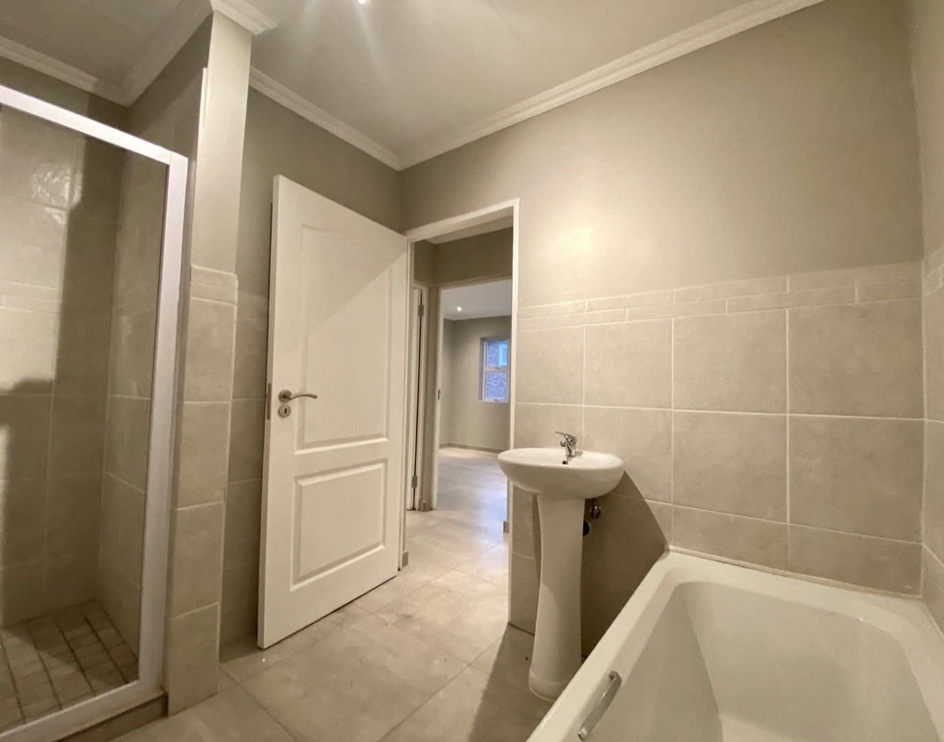 The apartment offers two well-sized bedrooms with built-in cupboards, complemented by a full, modern bathroom designed for comfort and practicality. Tiled flooring throughout ensures a clean, low-maintenance finish.