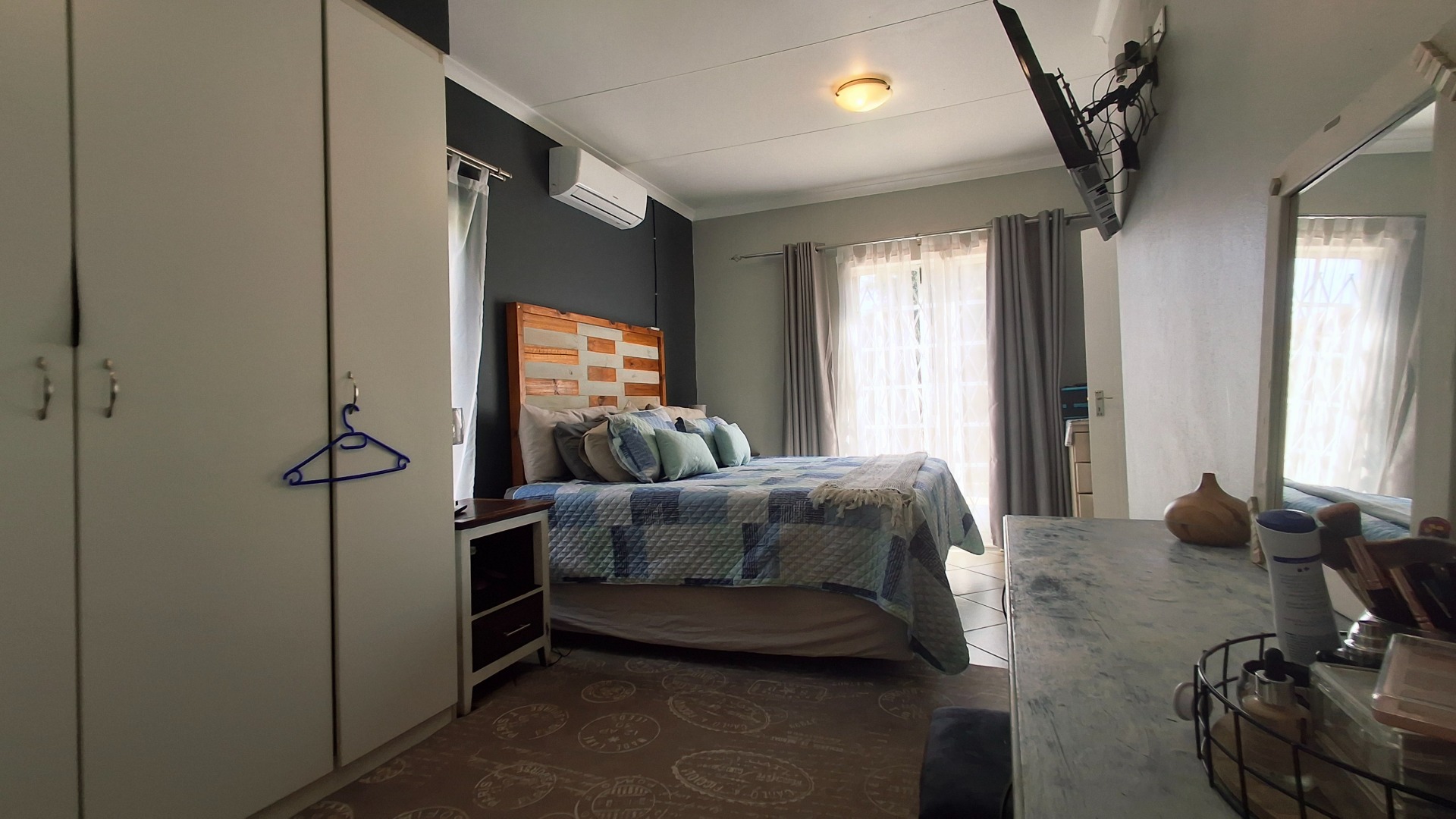 Upon entering, residents are greeted by an open-plan lounge, creating a welcoming and versatile space for relaxation and entertaining. The well-appointed kitchen is ready to cater to culinary needs. The property includes one main bathroom, complemented by an ensuite bathroom and an additional guest toilet, ensuring practicality for all occupants. Air conditioning is installed in the main bedroom only, providing comfort during warmer months.